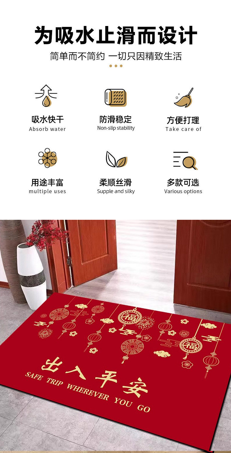 새해의 Diatom 진흙 붉은 축제 문 매트 입구 문 지울 수있는 빠른 건조 세척없는 매트 먼지 방지 쉬운 치료 매트