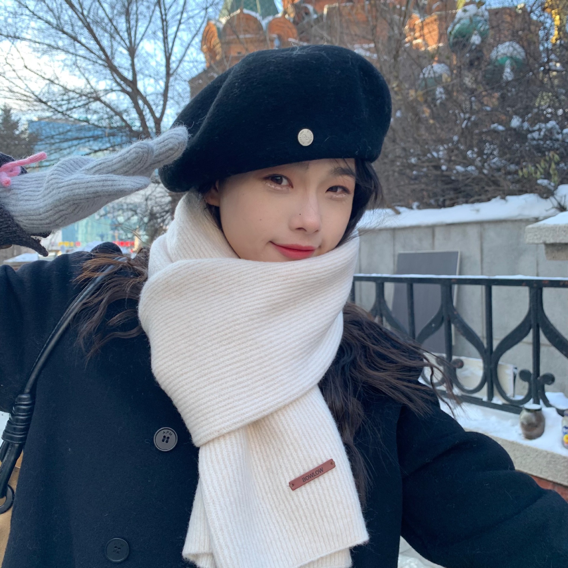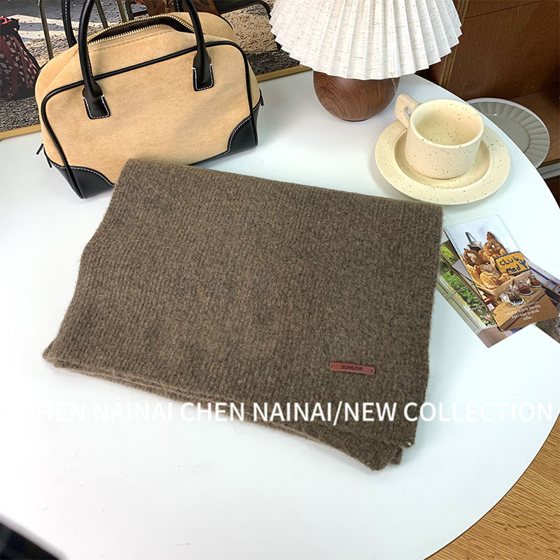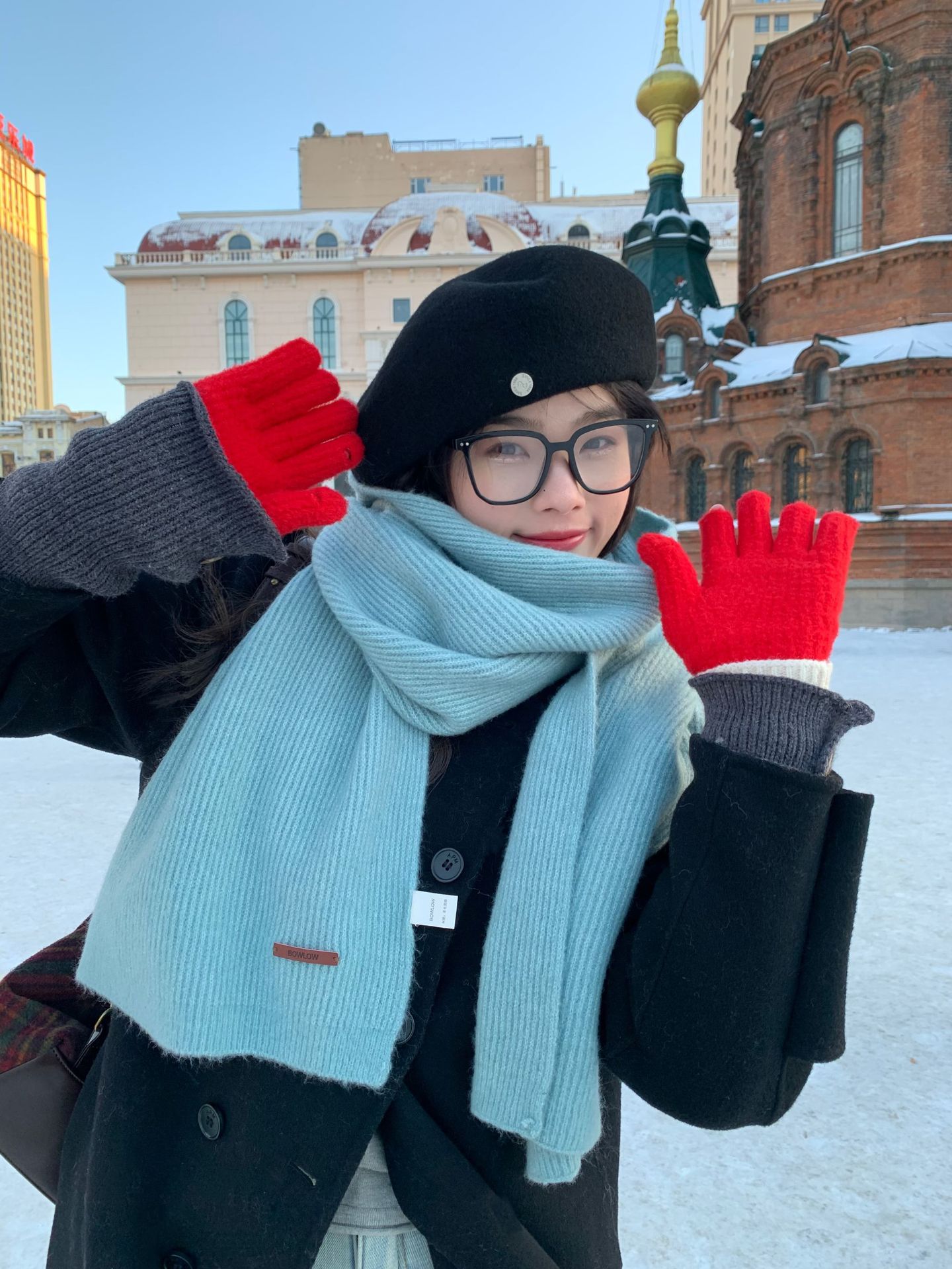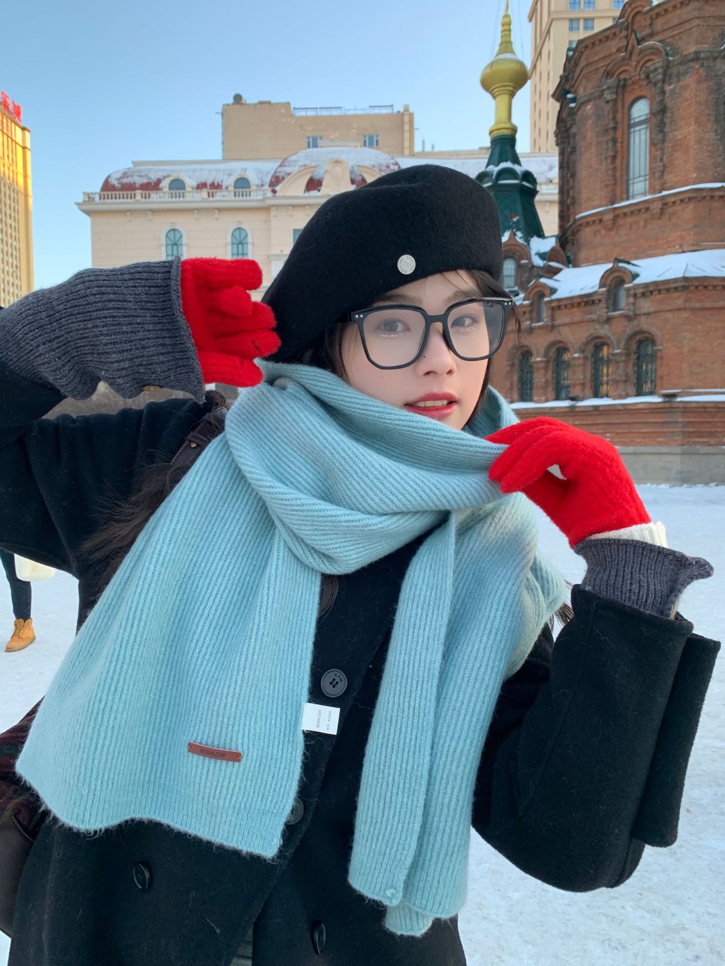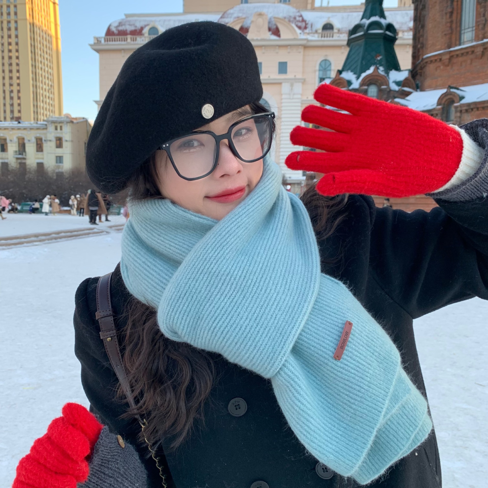 아이스 블루 니트 소프트 왁스 스카프 여성의 겨울 따뜻한 두꺼운 양모 혼합 솔리드 컬러 남성용 올 매치 롱 스카프
