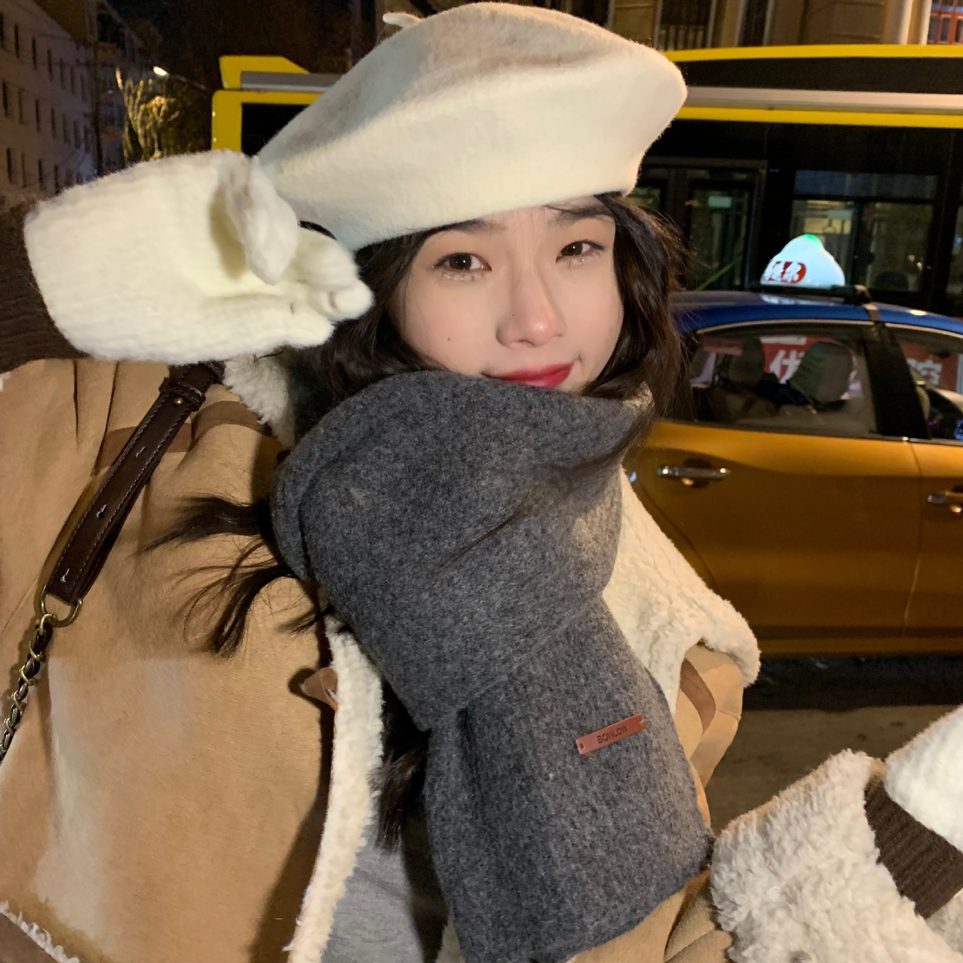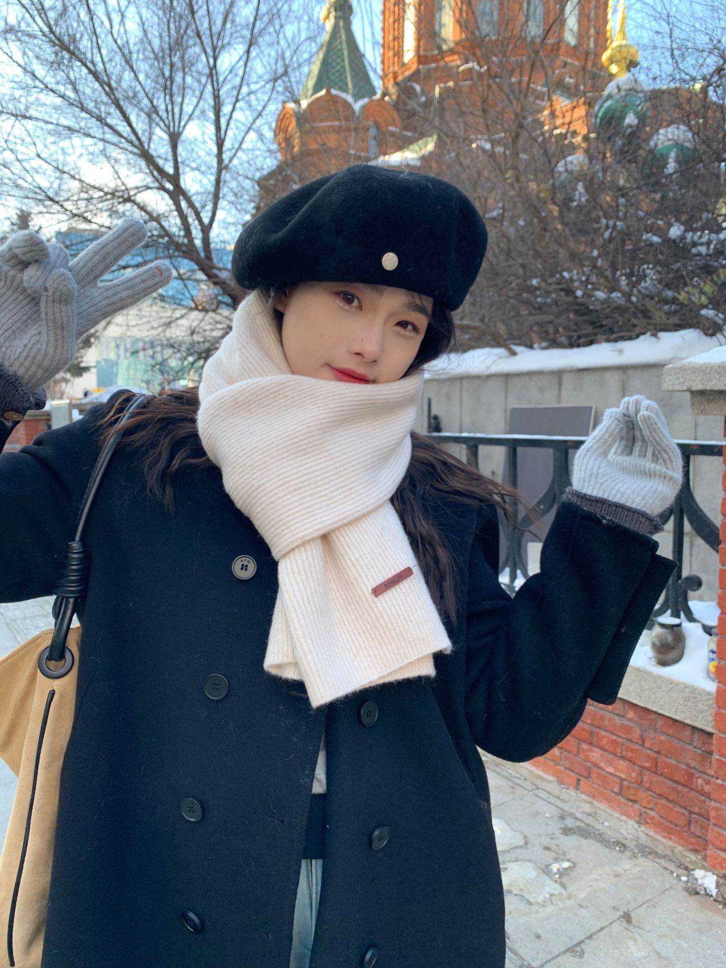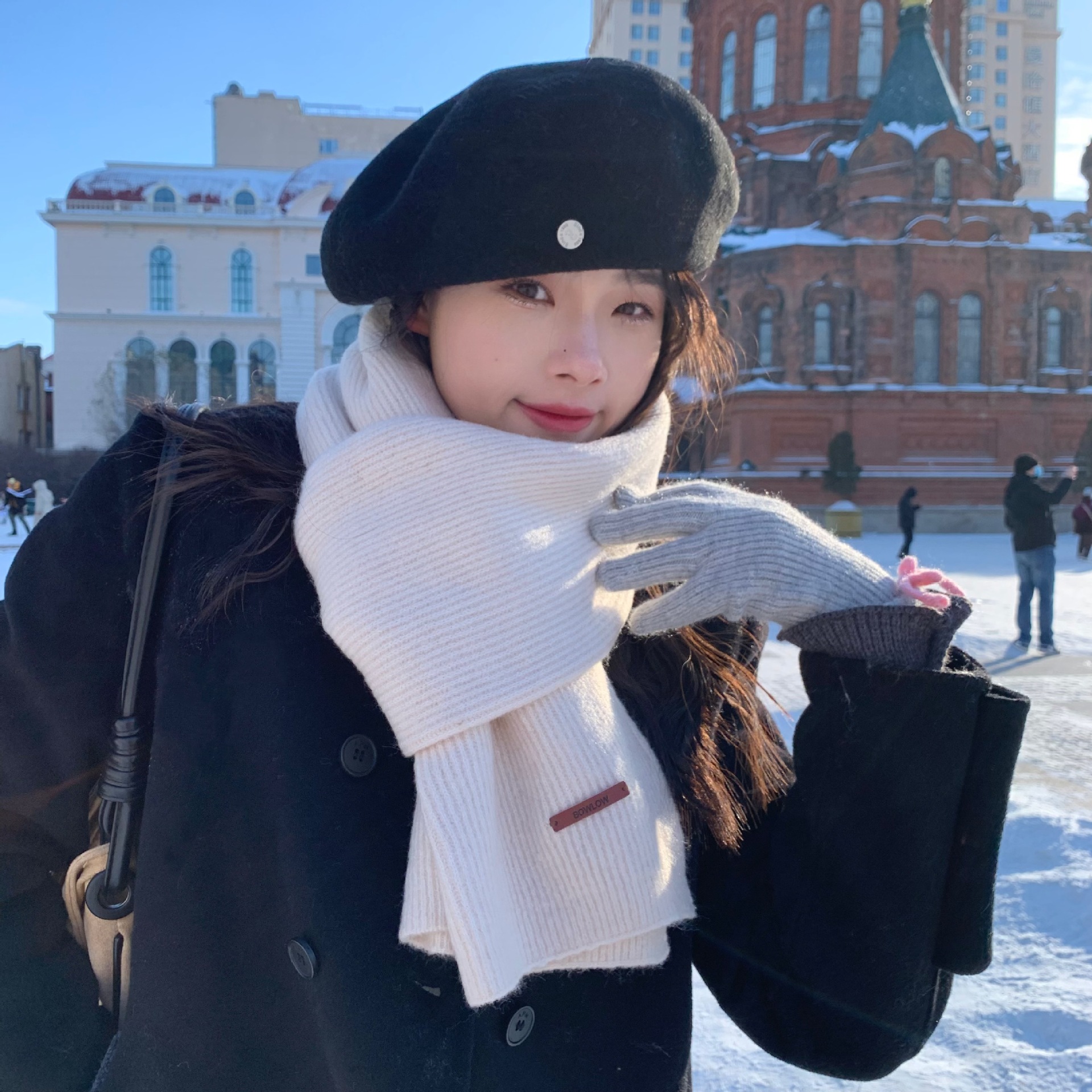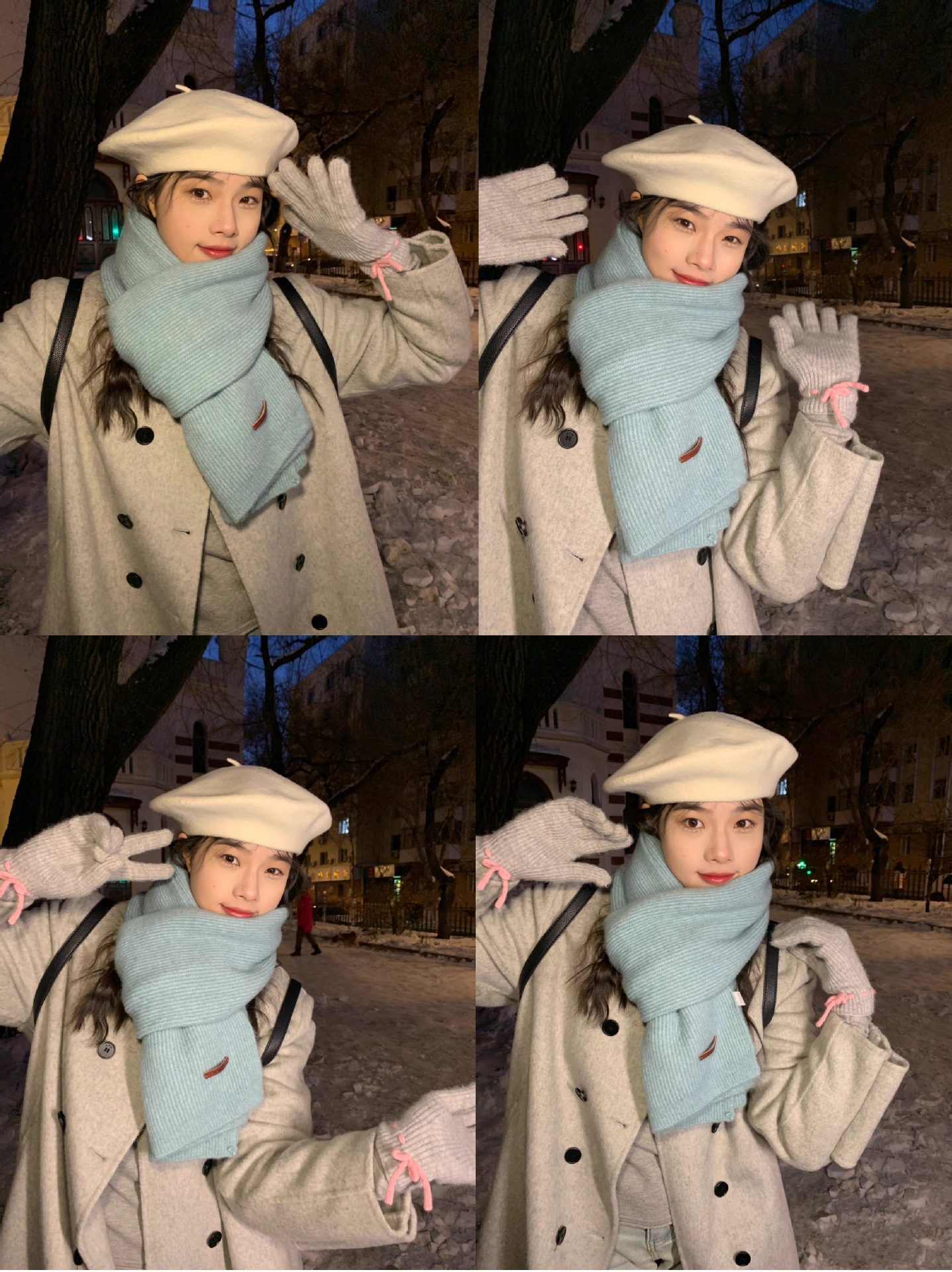 아이스 블루 니트 소프트 왁스 스카프 여성의 겨울 따뜻한 두꺼운 양모 혼합 솔리드 컬러 남성용 올 매치 롱 스카프