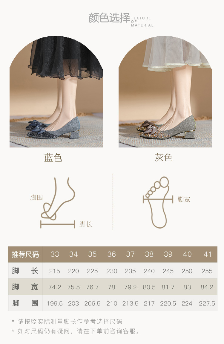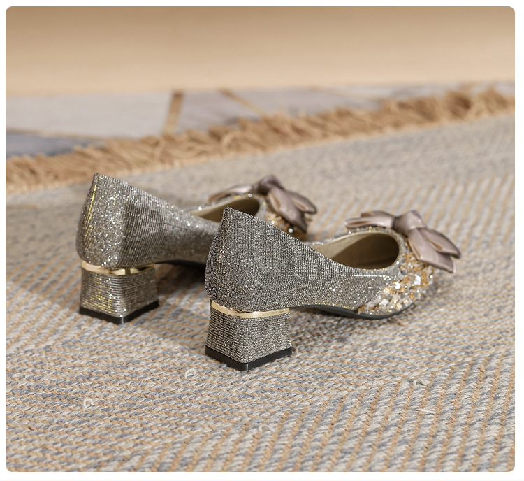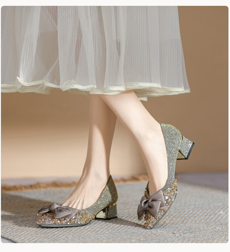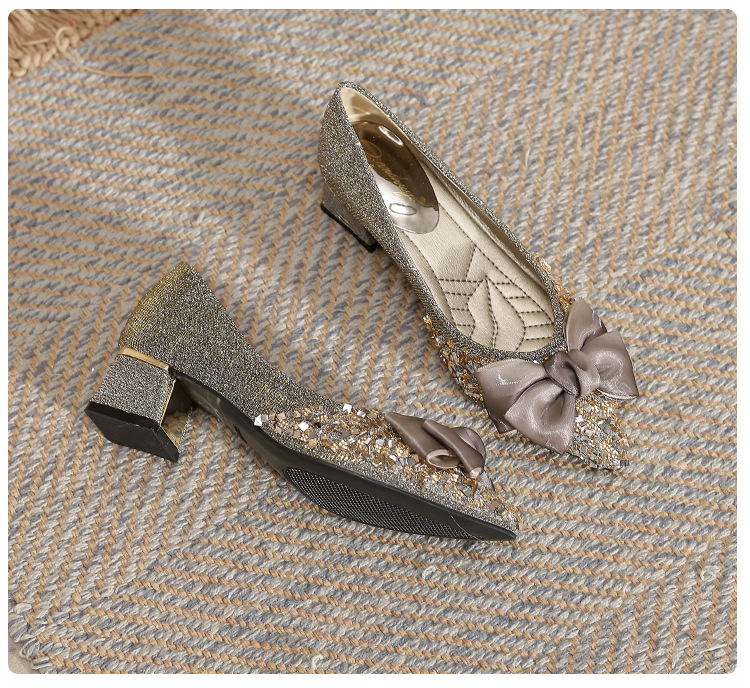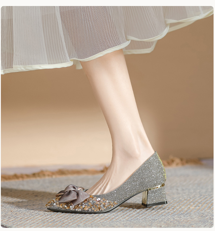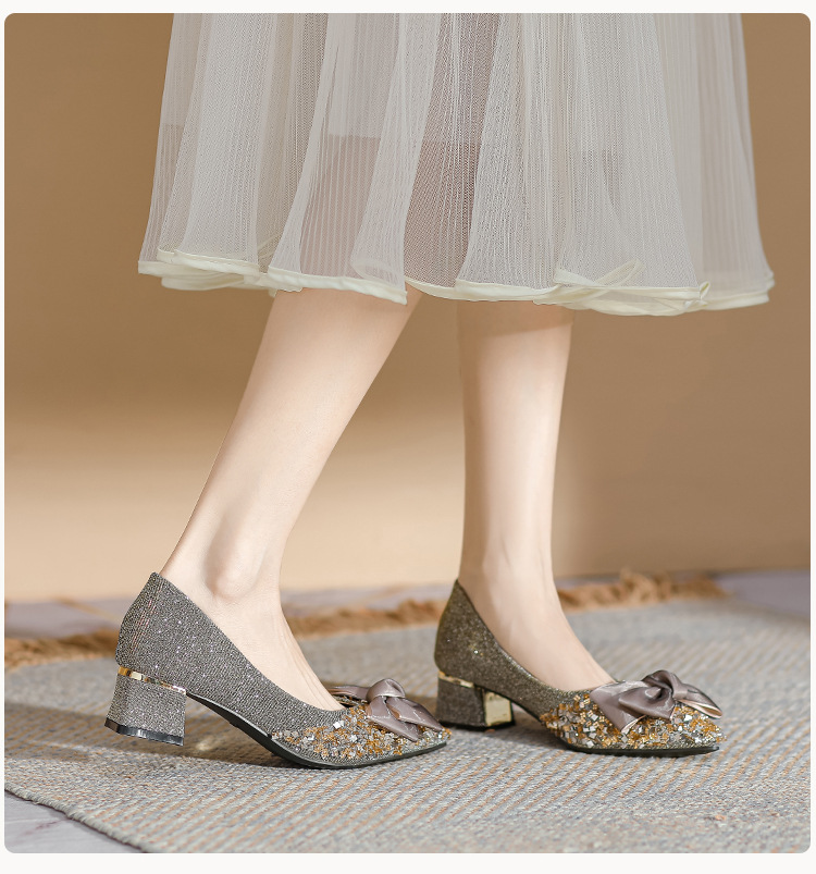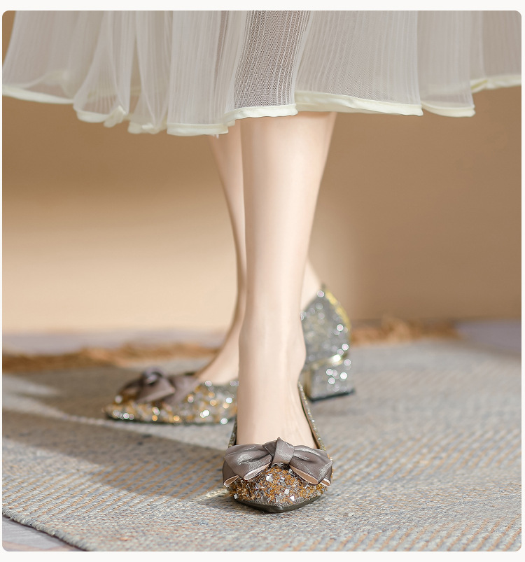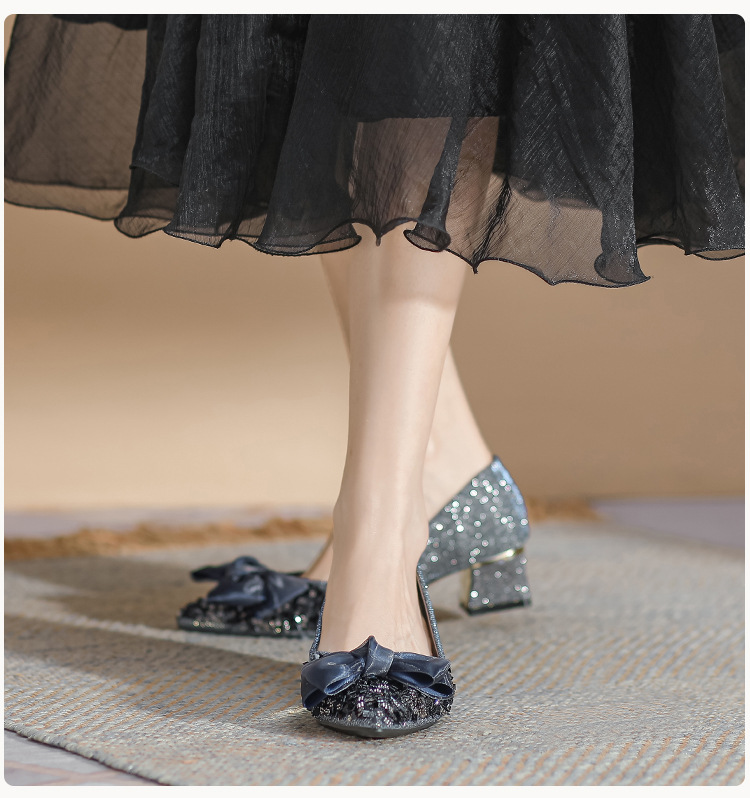 2024 포인팅 싱글 레이어 신발 로우 입 보우 펌프 새로운 스타일 우아한 로우 힐 소프트 하단 샤넬 스타일 마일 라드 여성 신발스토어 가기