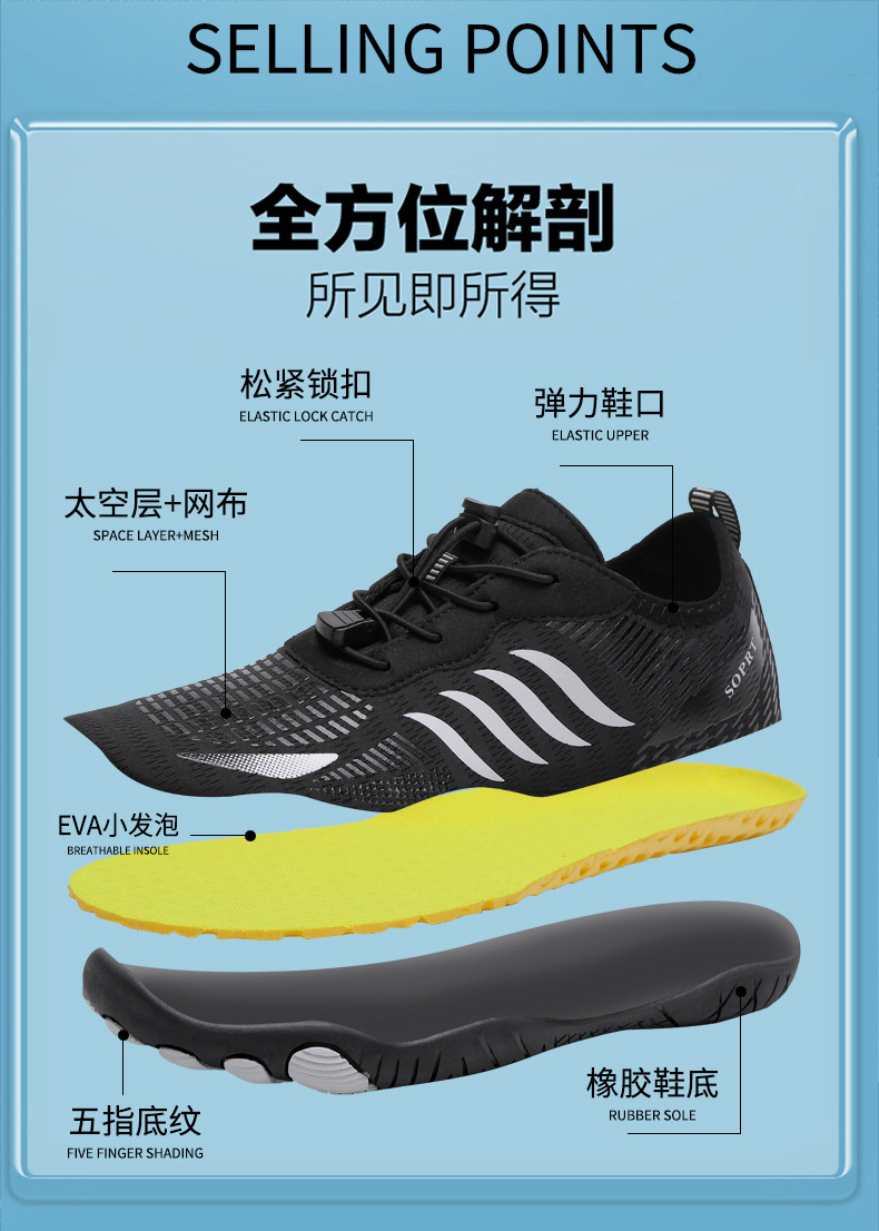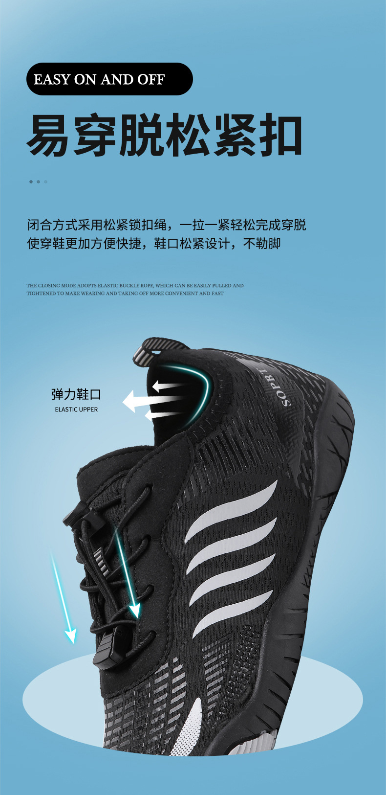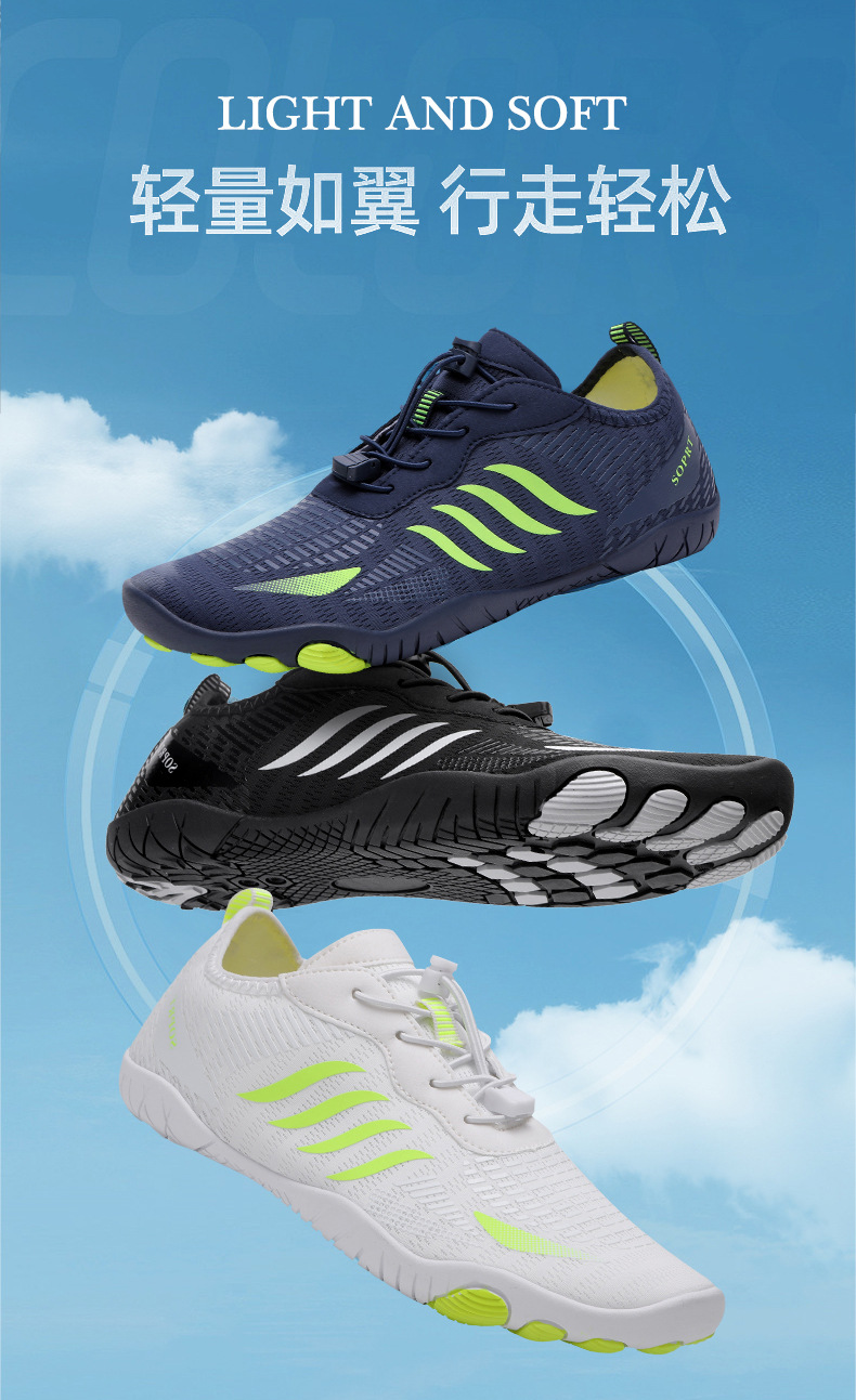 야외 미끄럼 방지 메쉬 비치 신발 다섯 손가락 추적 신발 빠른 건조 워킹 비치 신발 편안한 통기성 고무 솔