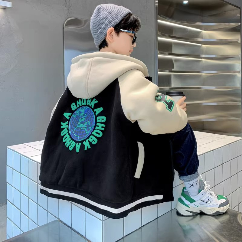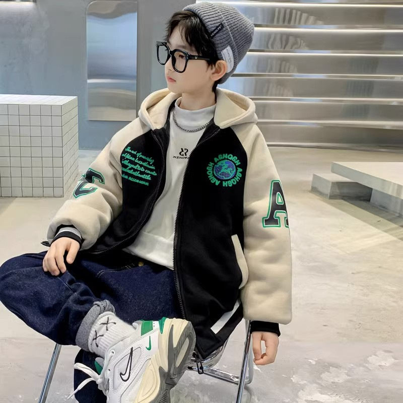 아동복 소년 가을과 겨울 유행 한국 스타일 2024 새로운 중대형 어린이 캐주얼 기모 두꺼운 따뜻한 소년 코트 트렌디스토어 가기