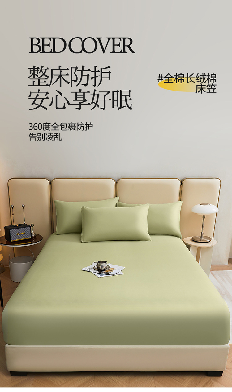 클래스 A 100 신장 면화 긴 스테이플 코튼 침대 모자 단일 매트리스 프로텍터 모든 것을 포함하는 미끄럼 방지 침대 세트 도매스토어 가기