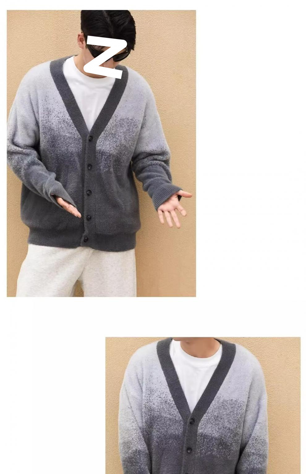 한국 스타일의 트렌디 한 브랜드 카디건 스웨터 남자 2024 가을과 겨울 새로운 V 넥 스웨터 홍콩 스타일 Ins 느슨한 재킷스토어 가기