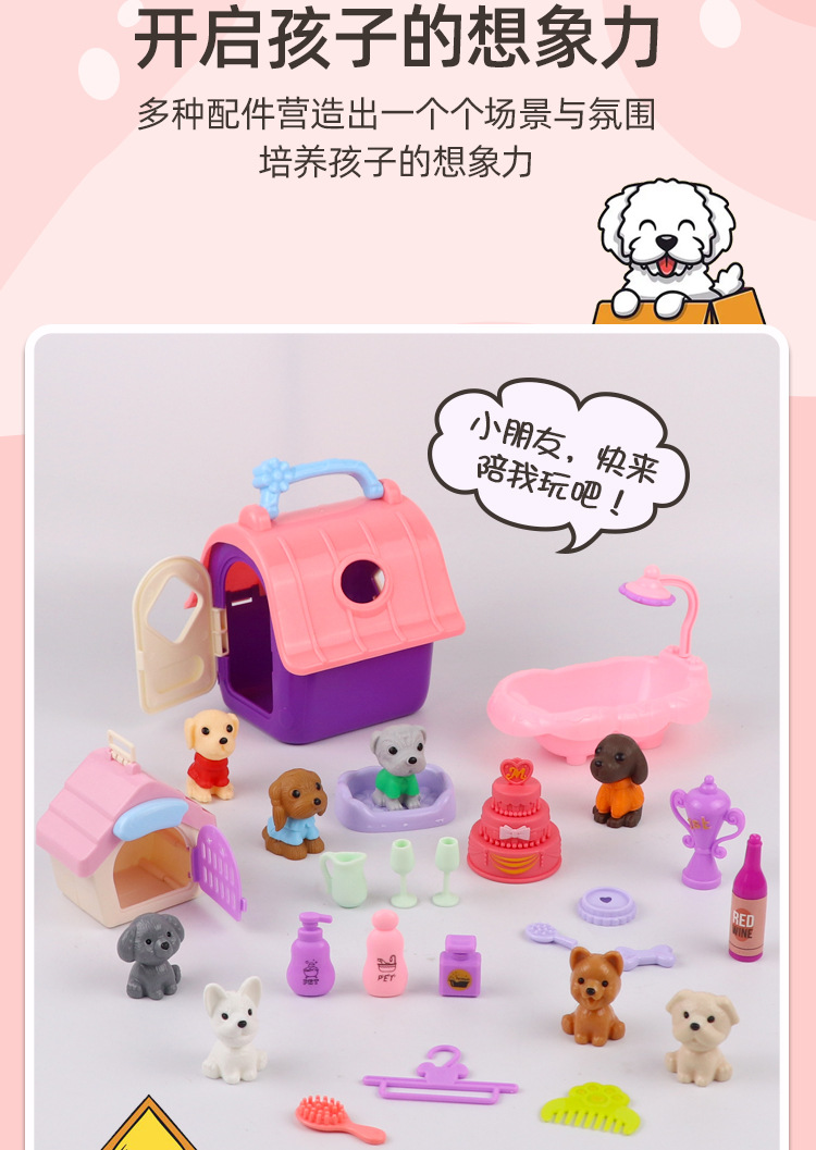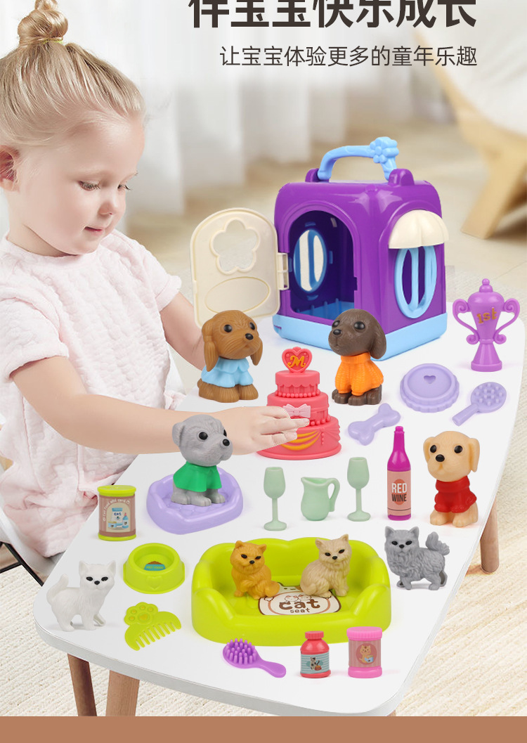 국경 간 어린이 놀이 홈 고양이 개 애완 동물 미니 동물 케이지 개 케이지 장면 시뮬레이션 DIY 장난감스토어 가기
