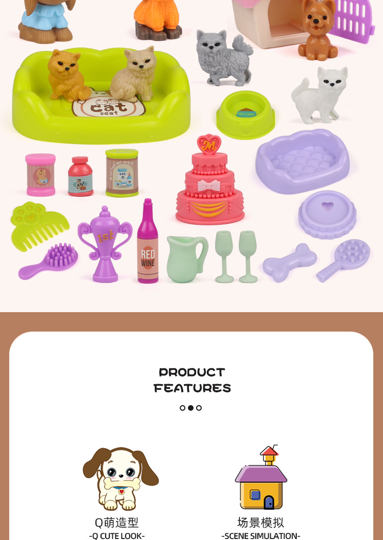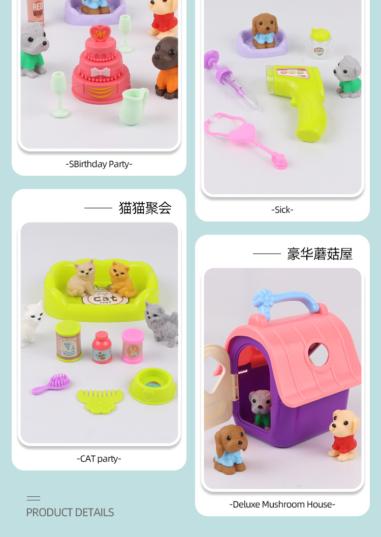 국경 간 어린이 놀이 홈 고양이 개 애완 동물 미니 동물 케이지 개 케이지 장면 시뮬레이션 DIY 장난감