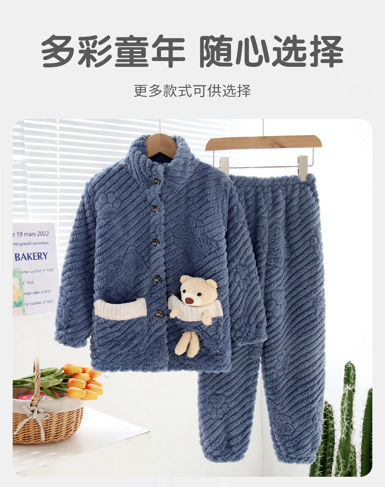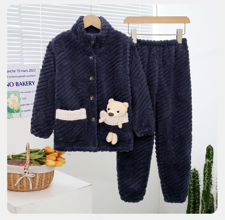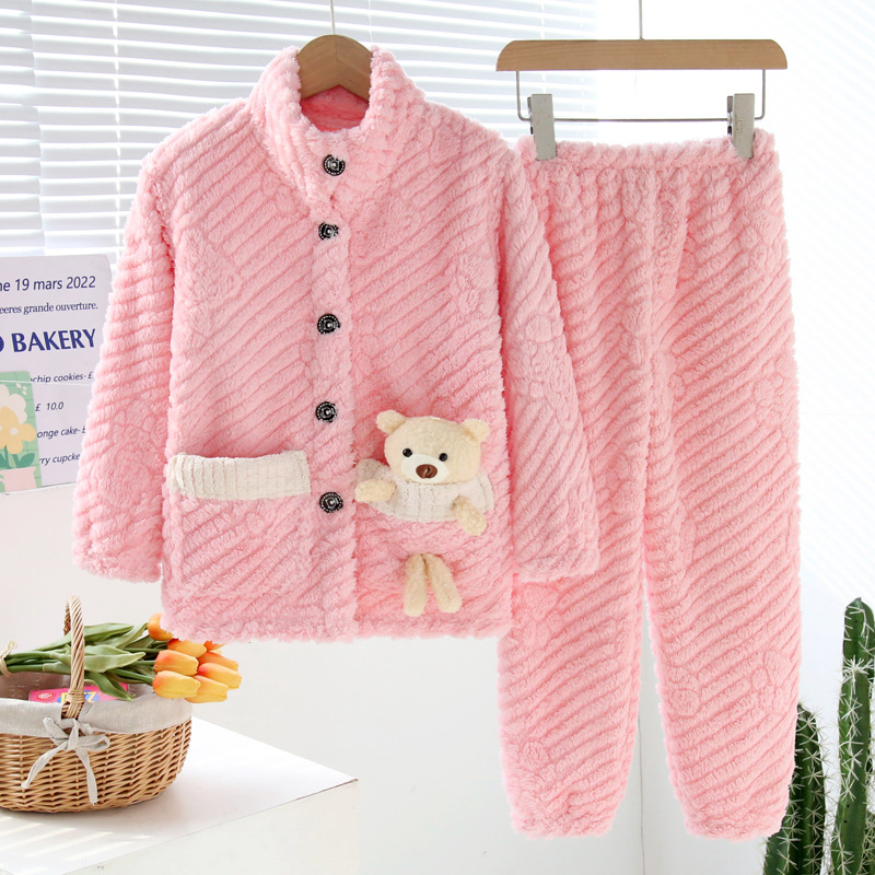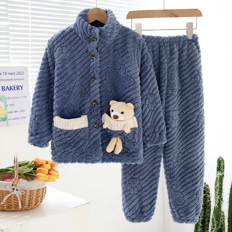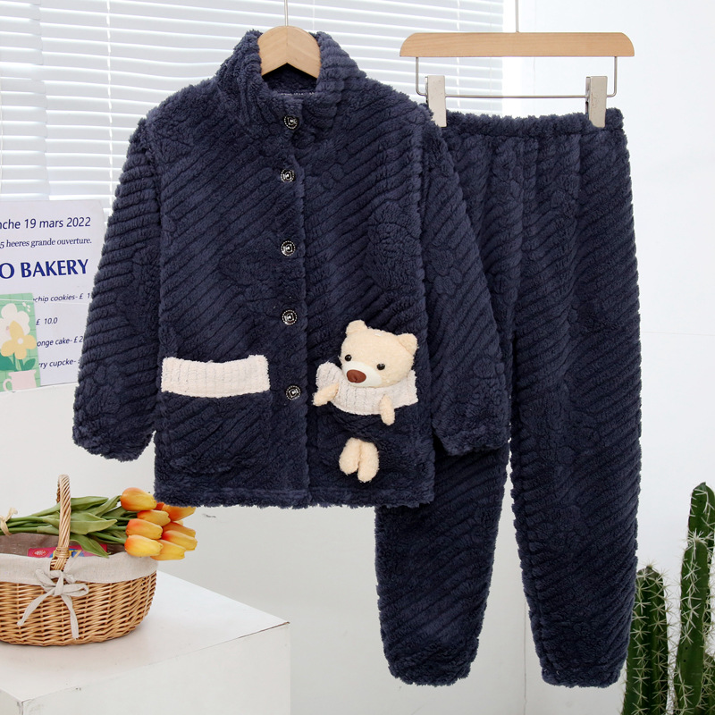 가을과 겨울 어린이 잠옷 산호 양털 소년 기모 두꺼운 플란넬 아기 집 옷 세트