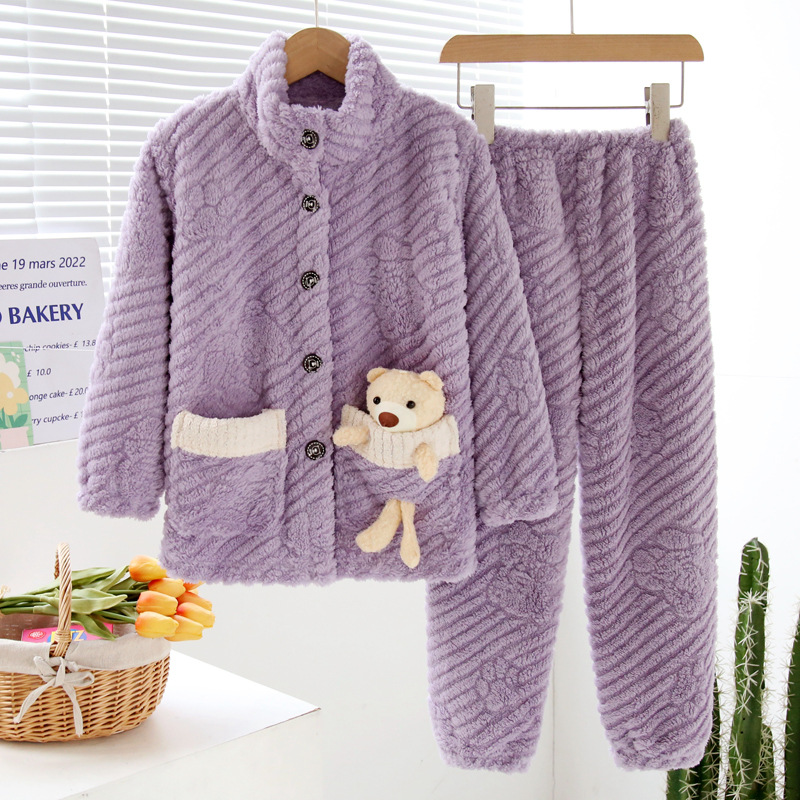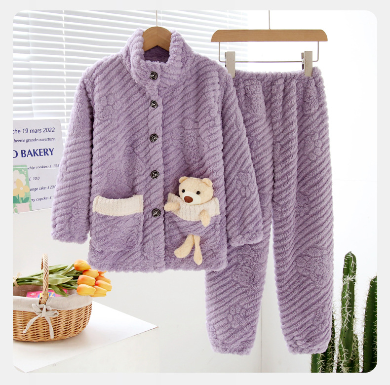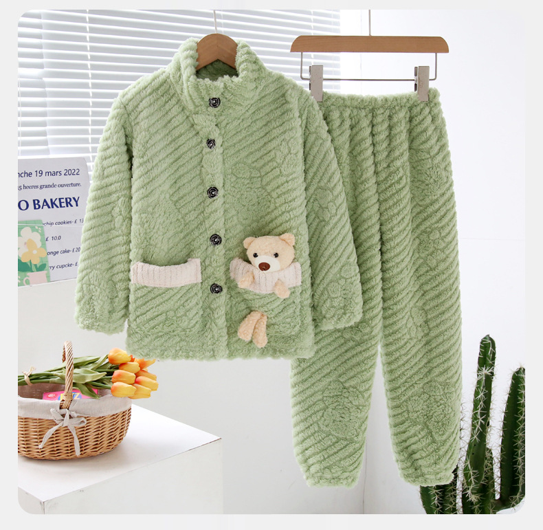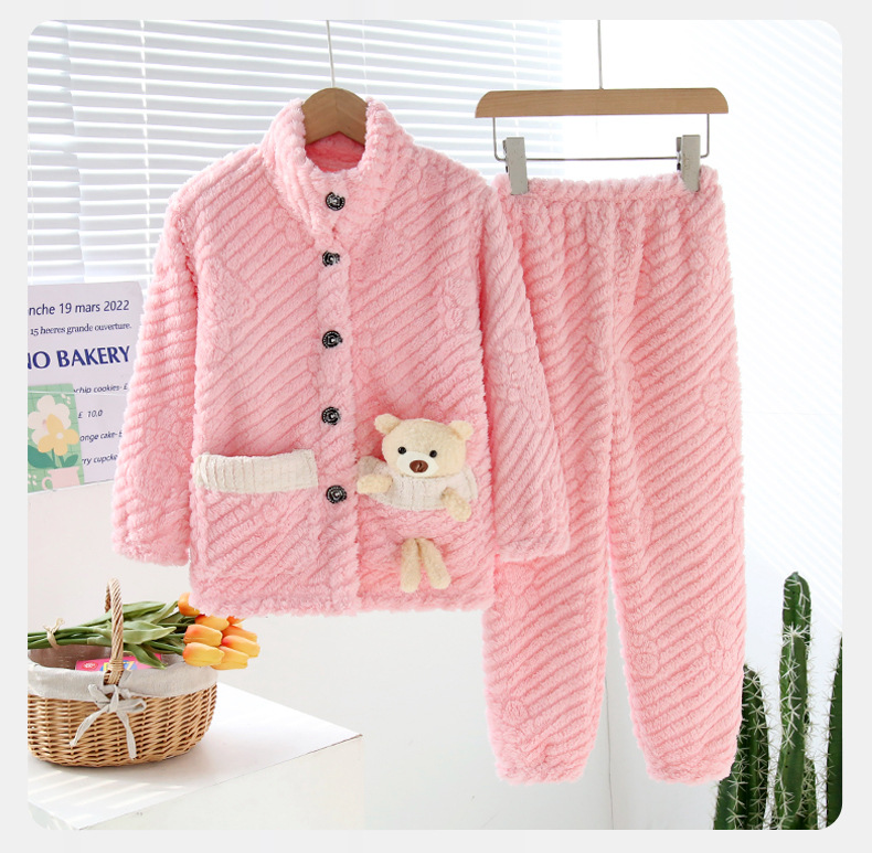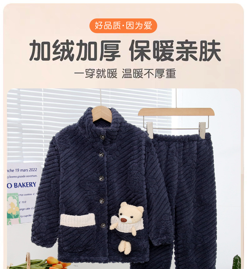 가을과 겨울 어린이 잠옷 산호 양털 소년 기모 두꺼운 플란넬 아기 집 옷 세트