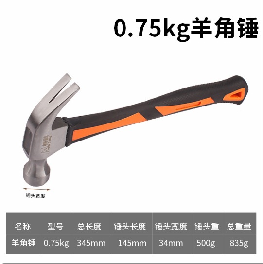 • 0.75kg 미끄럼 방지 충격 흡수 손잡이 클로 해머
