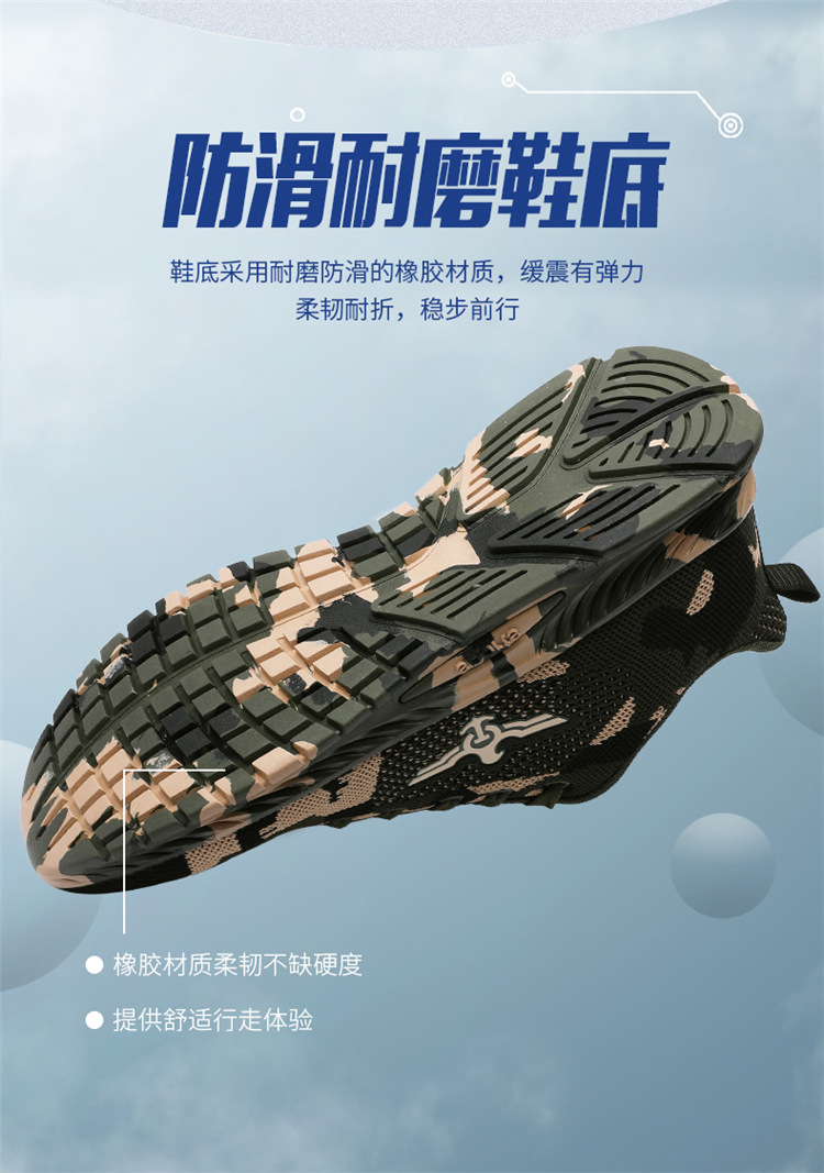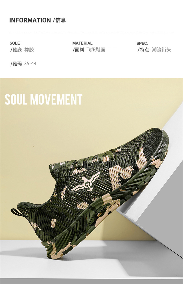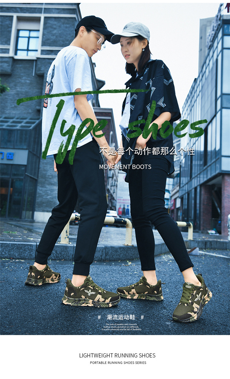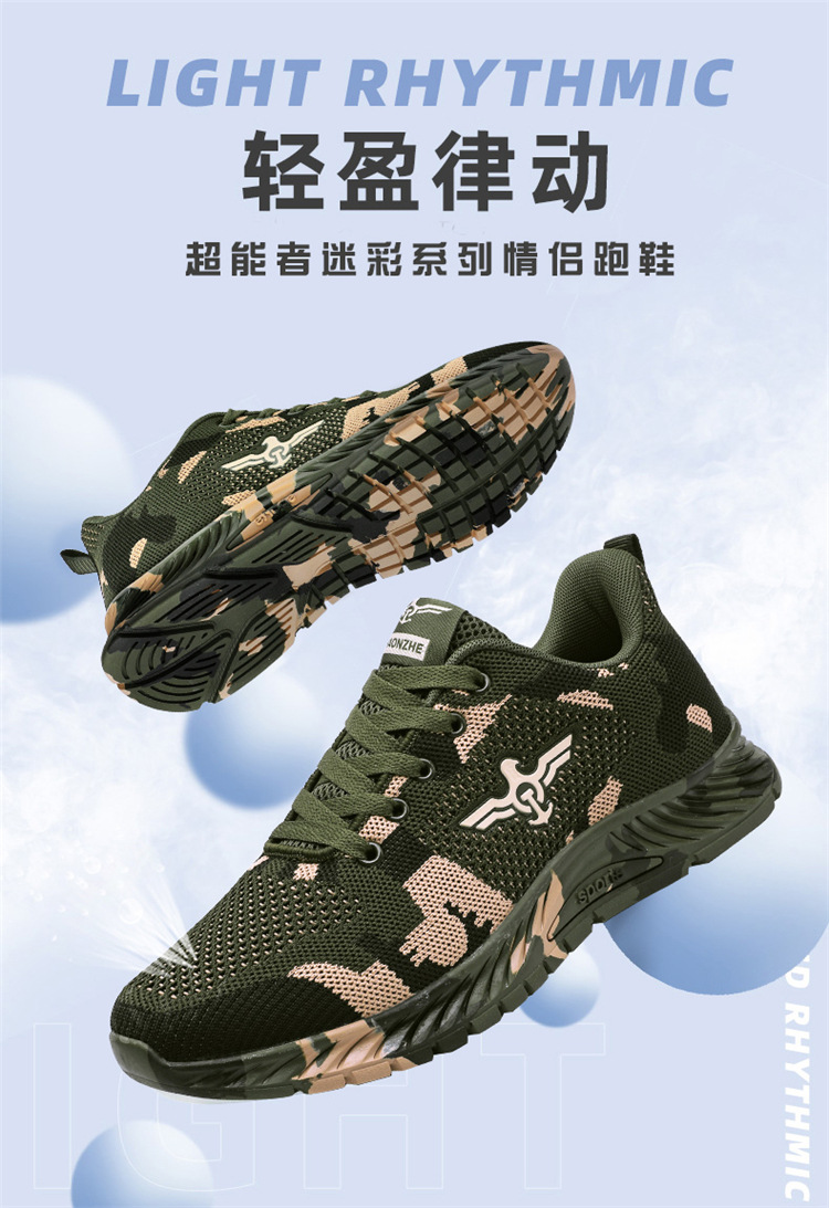 커플 위장 신발 플라이 짠 메쉬 통기성 훈련 신발 고무 내마모성 여름 캠프 러닝 운동화