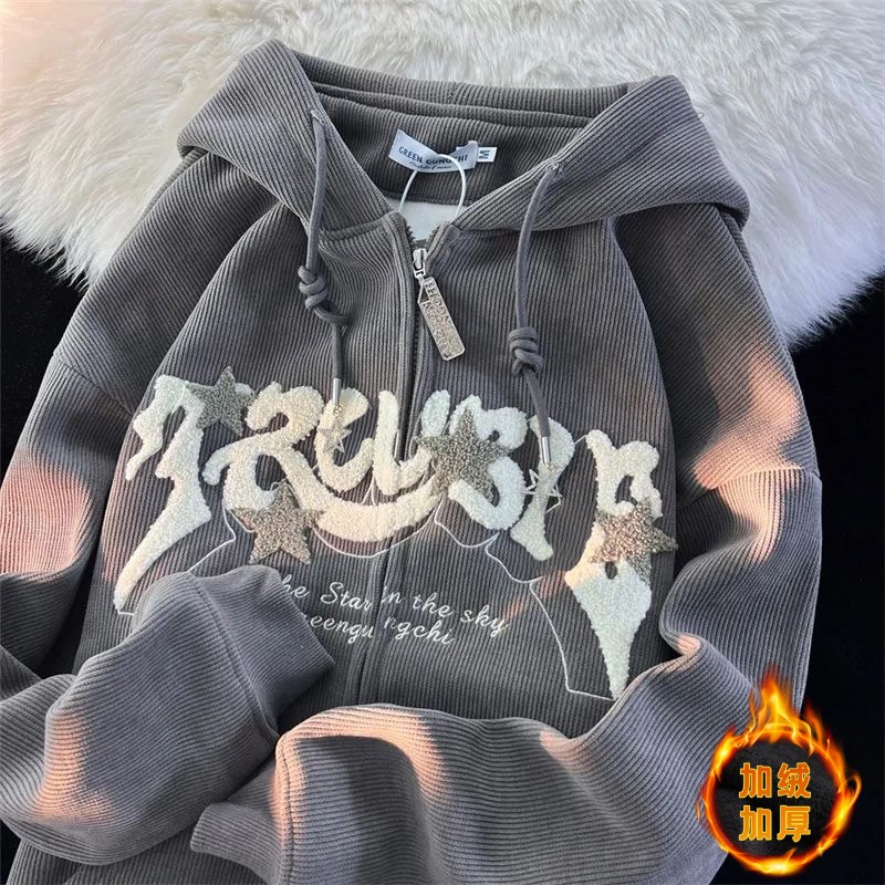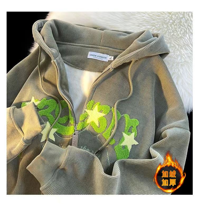 아메리칸 스타일 코듀로이 빈티지 기모 두꺼운 코듀로이 카디건 재킷 루즈 인스 타 그램 인기 브랜드 후드 남성 스웨터