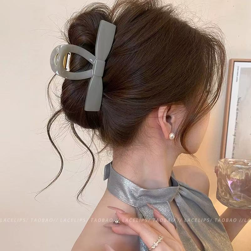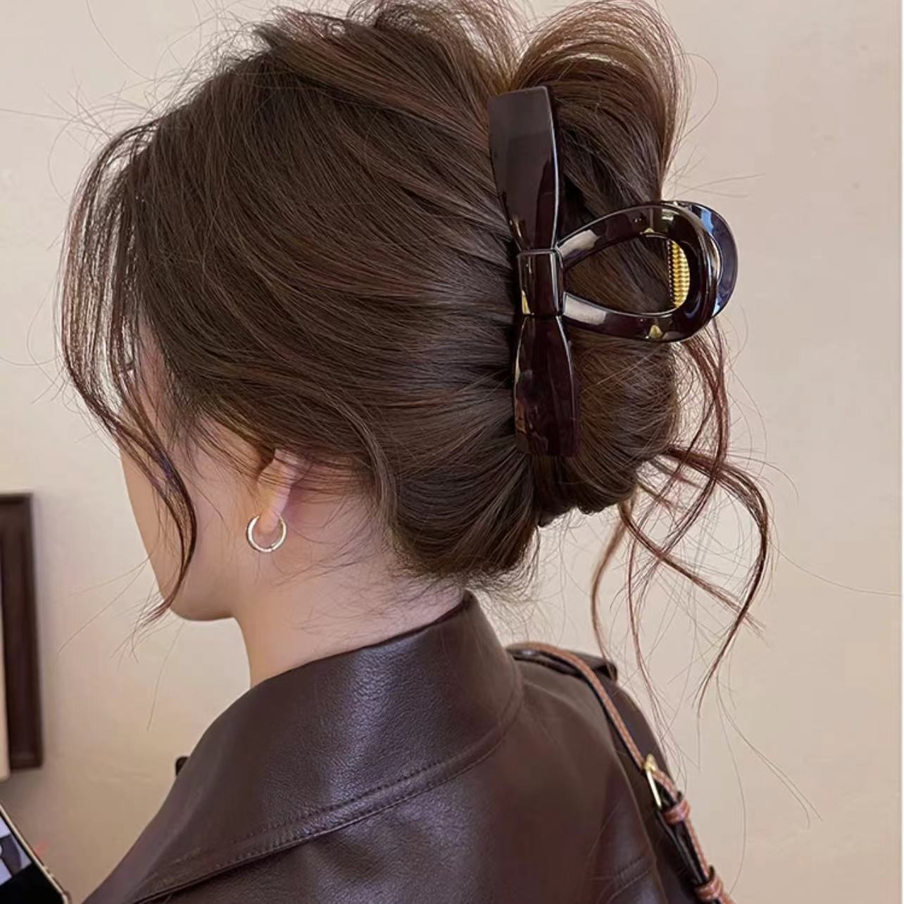 고급 초콜릿 다크 브라운 간단한 활 잡아 클립 대형 상어 클립 헤어핀 여성용 머리 2024 새로운 스타일 헤어스토어 가기