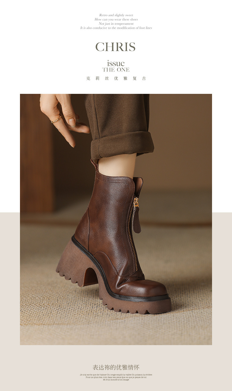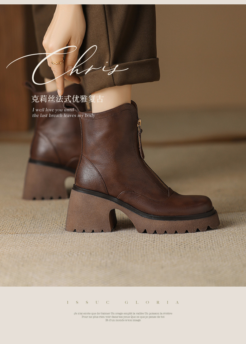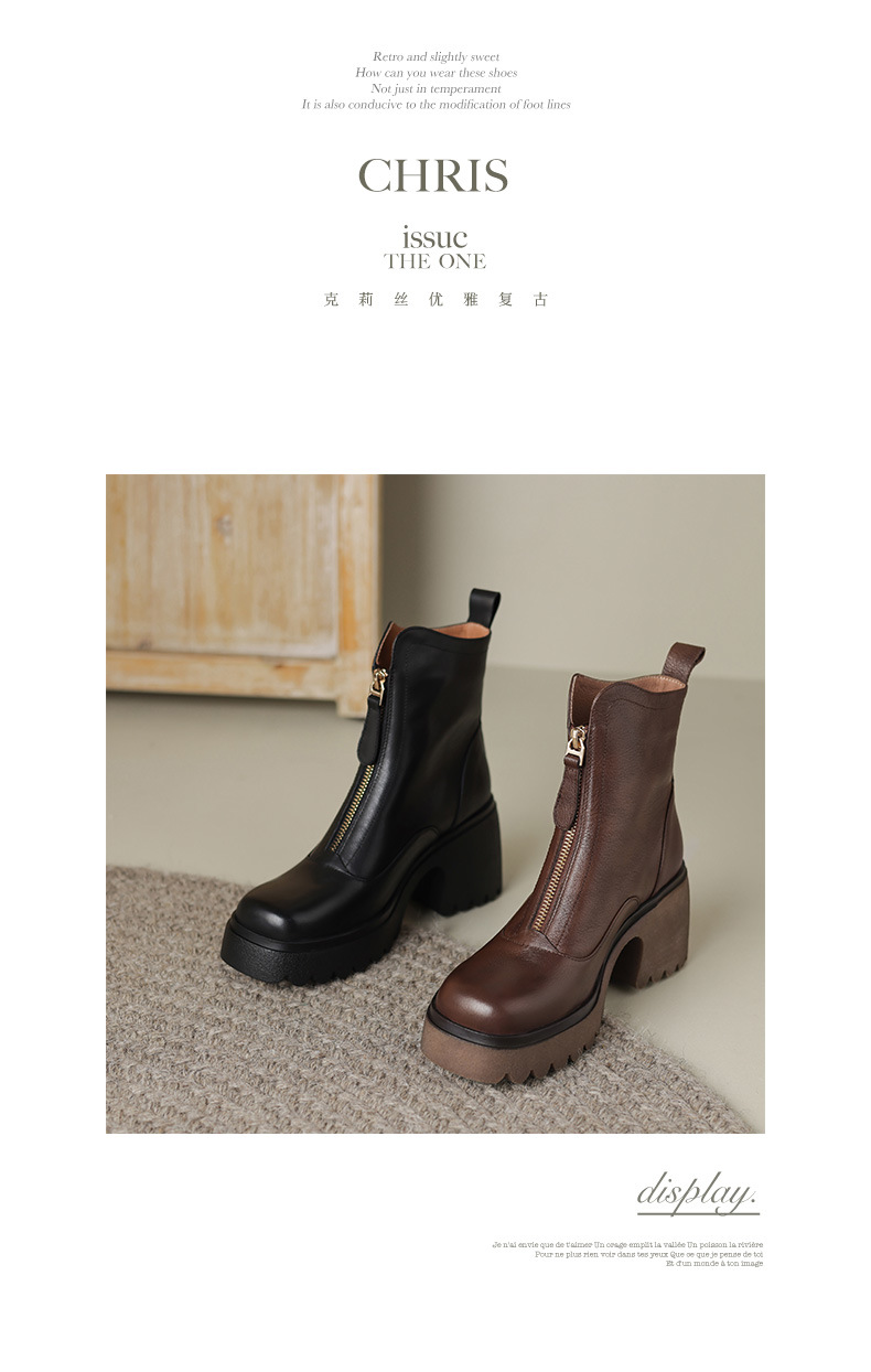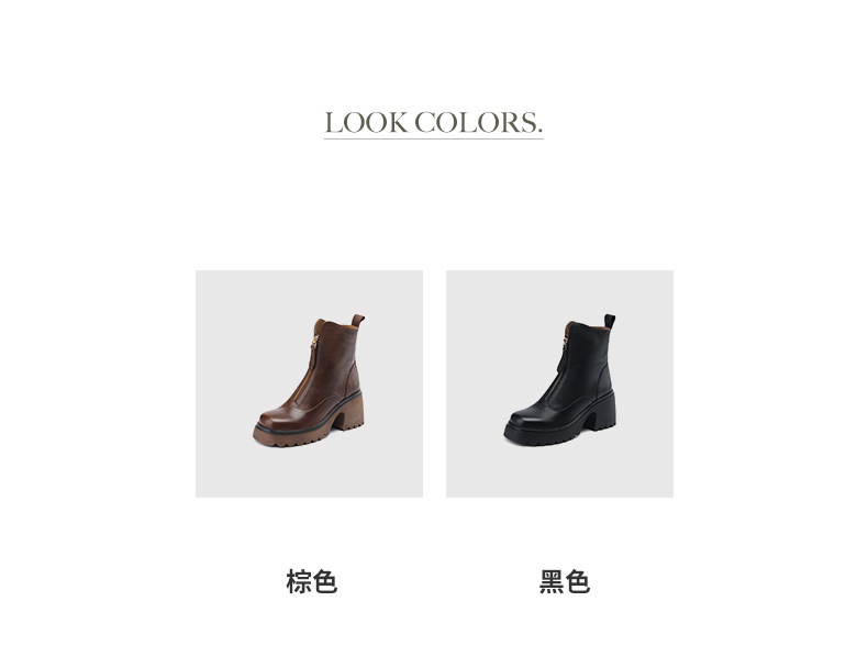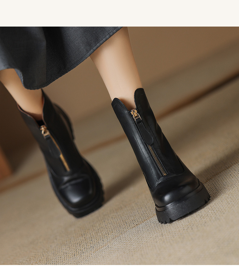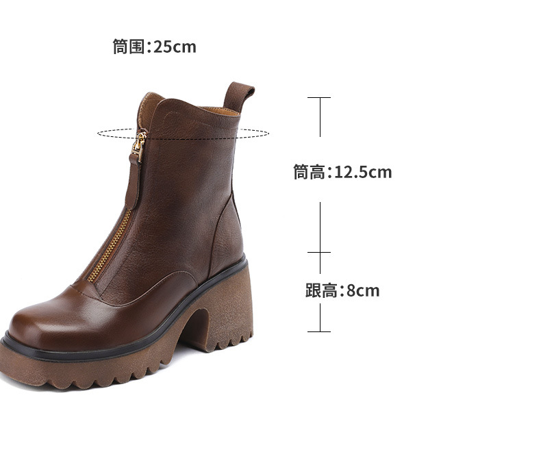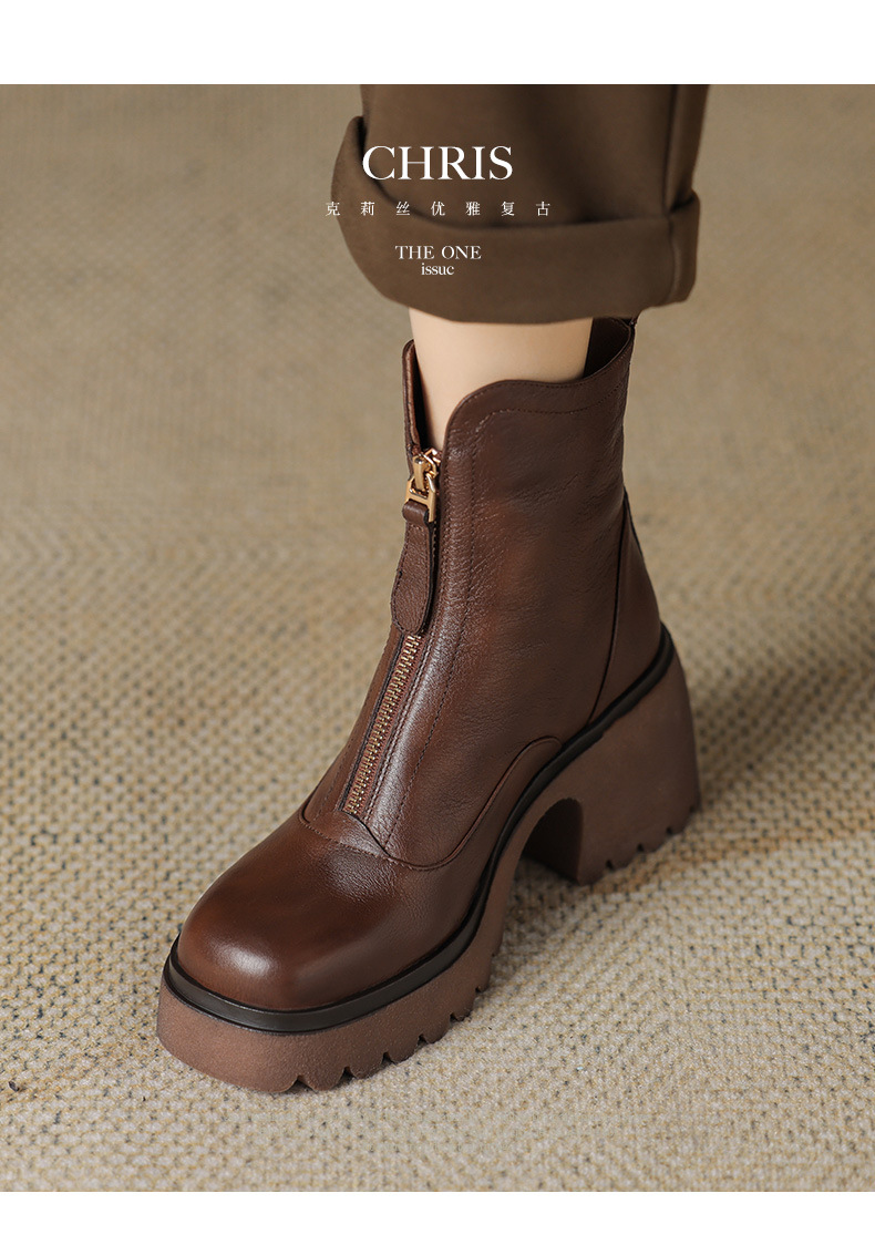 영국 스타일 정품 가죽 마틴 부츠 여성 전면 지퍼 가을과 겨울 새로운 빈티지 라운드 발가락 두꺼운 하이힐 두꺼운 하단 짧은 부츠스토어 가기