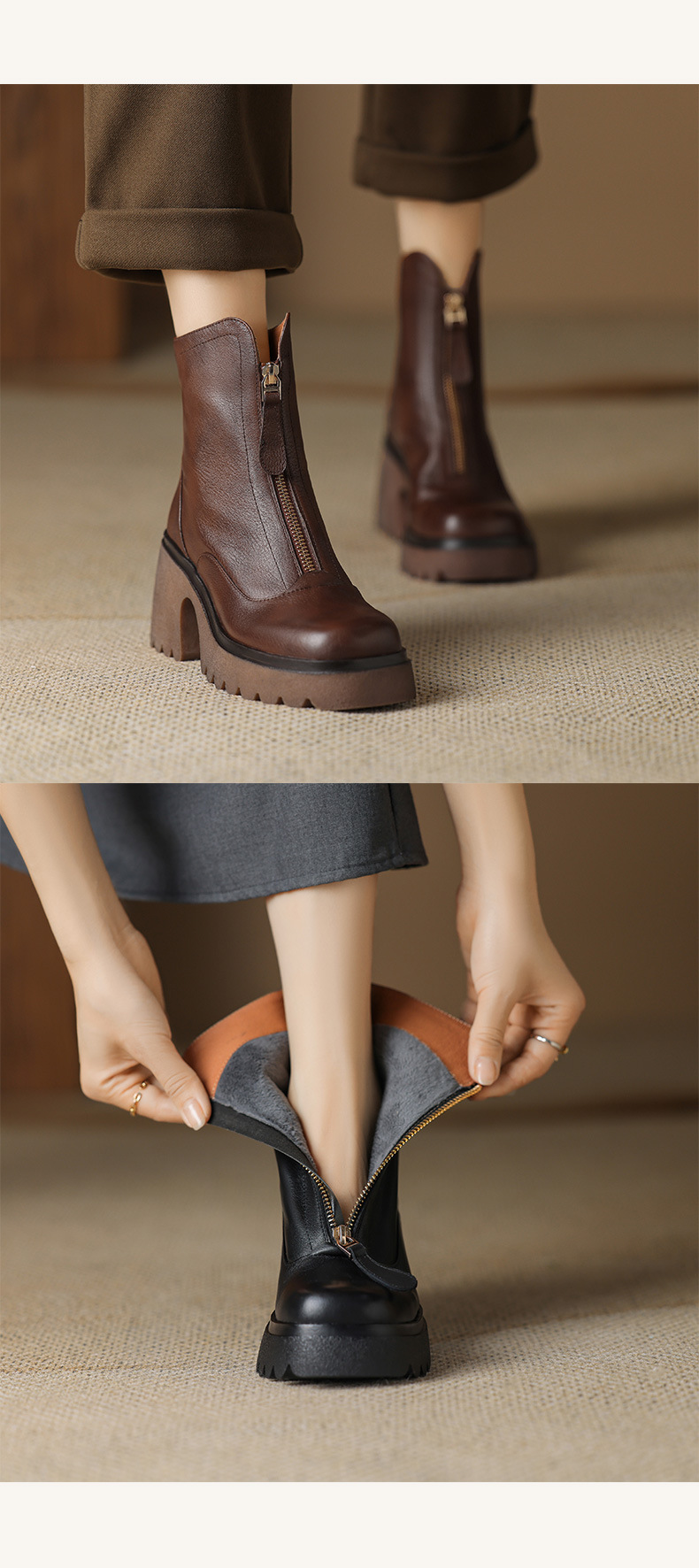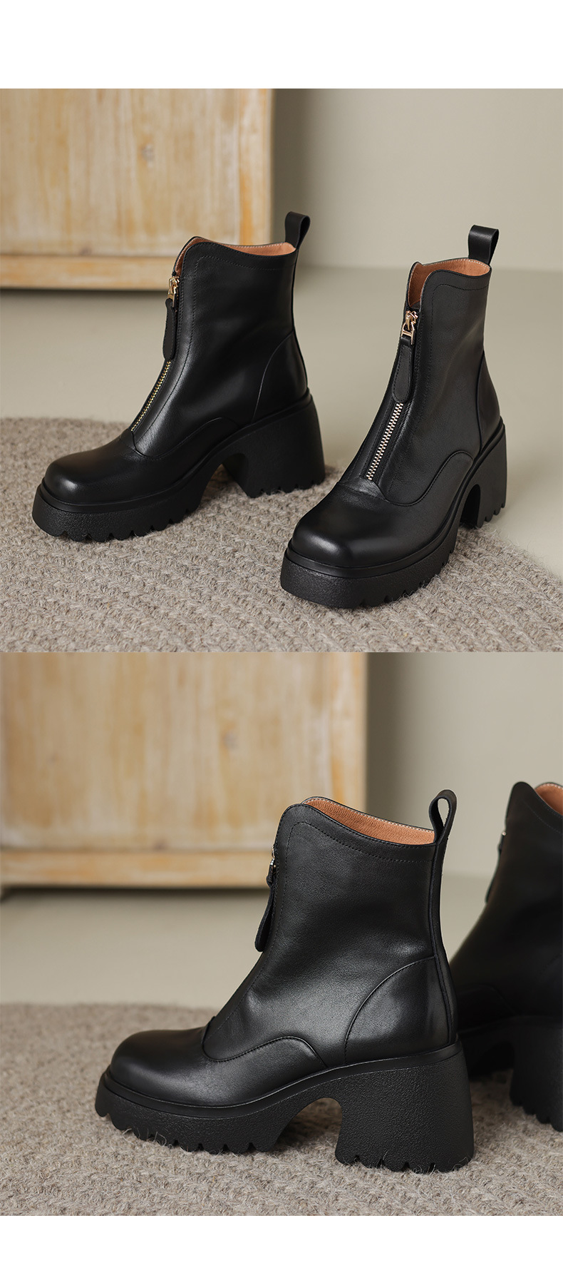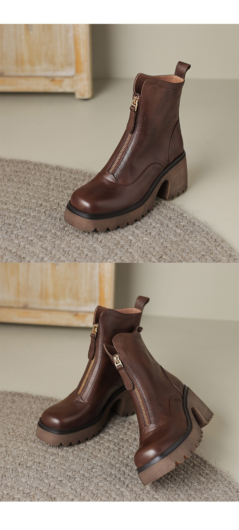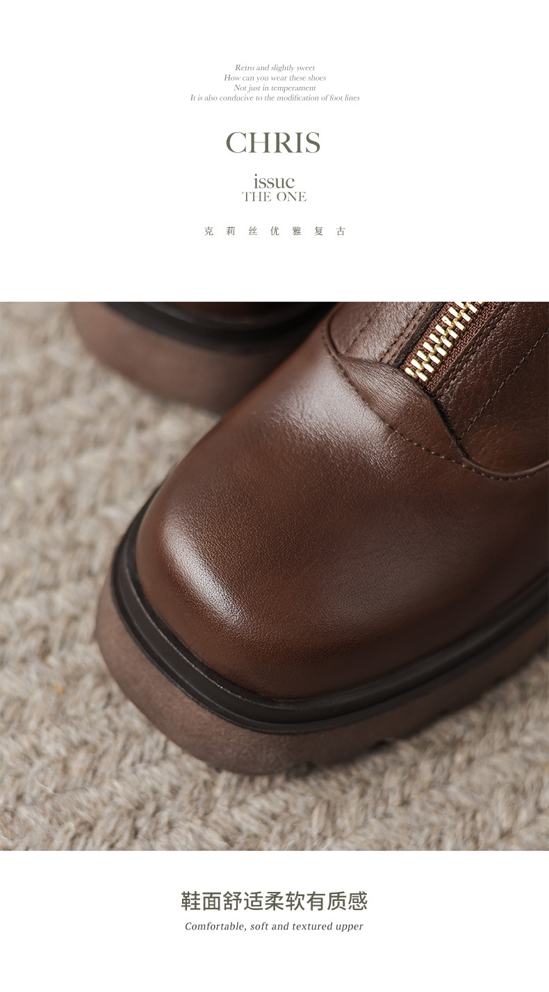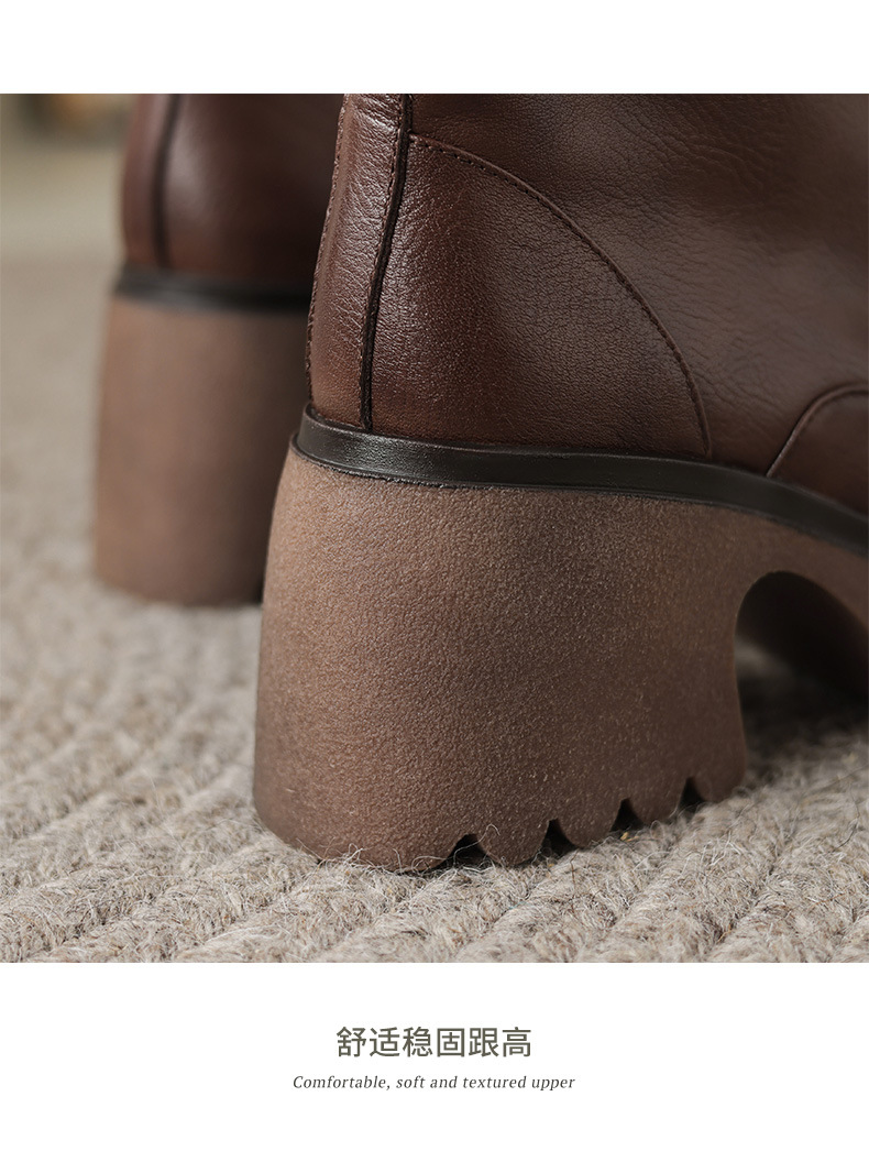 영국 스타일 정품 가죽 마틴 부츠 여성 전면 지퍼 가을과 겨울 새로운 빈티지 라운드 발가락 두꺼운 하이힐 두꺼운 하단 짧은 부츠스토어 가기