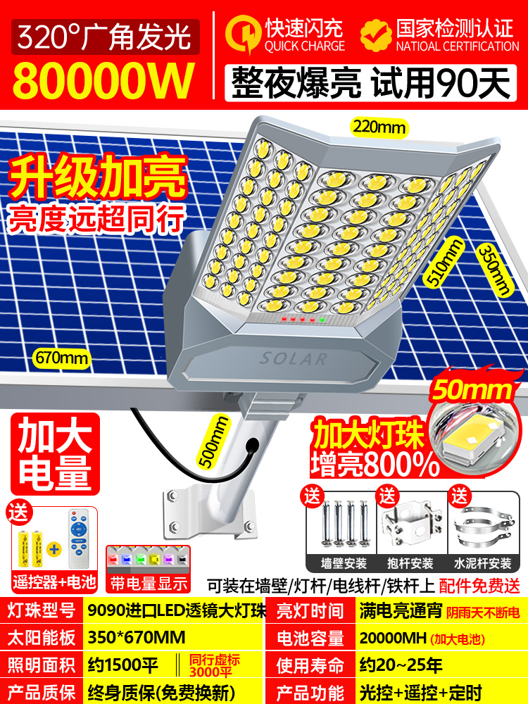• 80000W 폭발성 엔지니어링 모델 [사진 3000제곱미터] 어두워지면 자동으로 켜짐 + 리모콘★평생 보증
