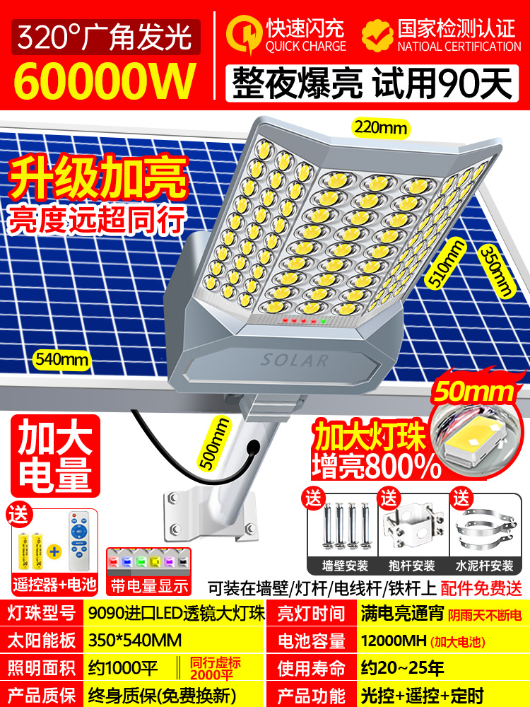 • 60000W 폭발성 엔지니어링 모델 [사진 2000제곱미터] 어두워지면 자동으로 켜짐 + 리모콘★평생 보증