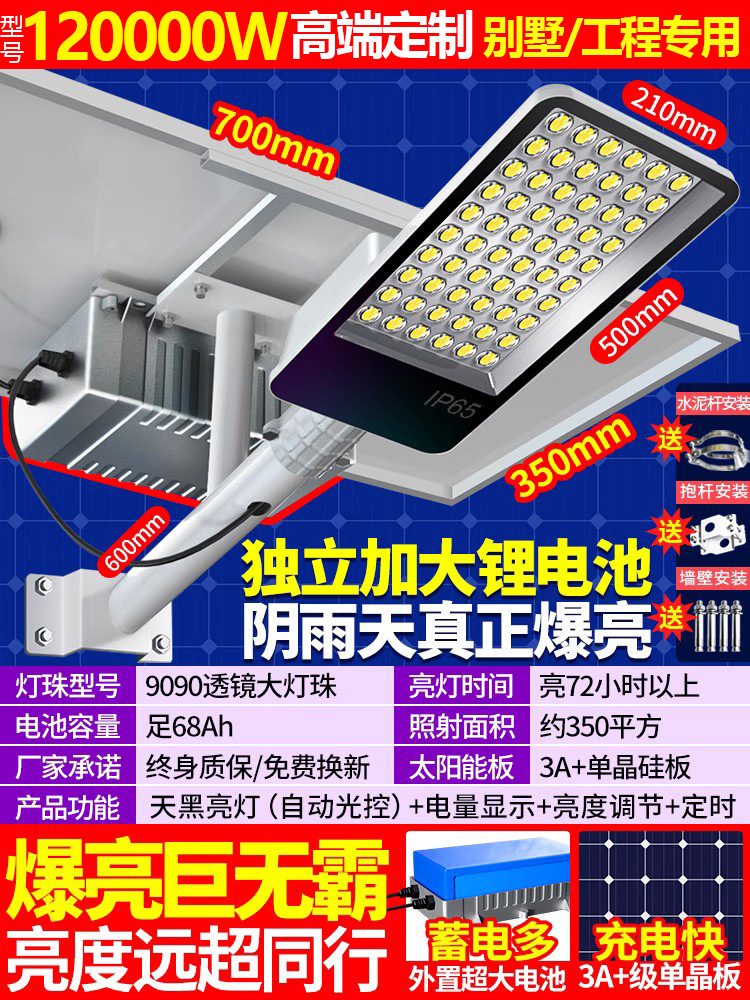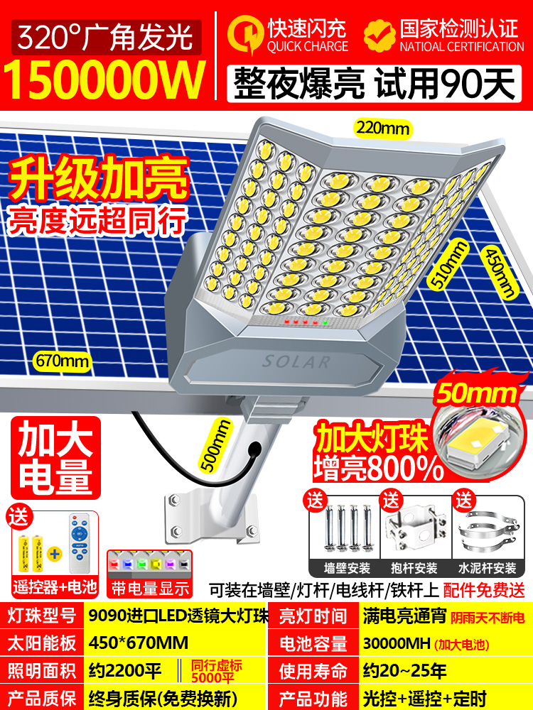 • 250000W 폭발적인 엔지니어링 모델 [사진 6000 평방 미터] 어두워지면 자동으로 켜짐 + 리모콘★평생 보증