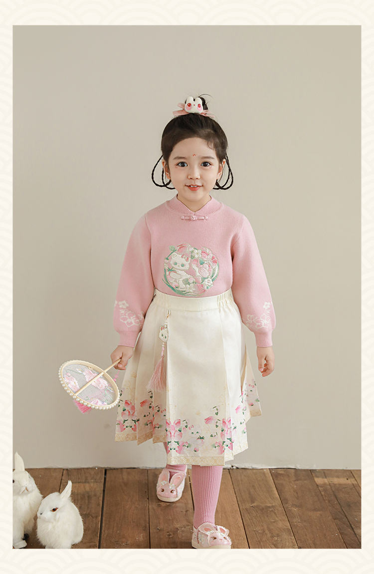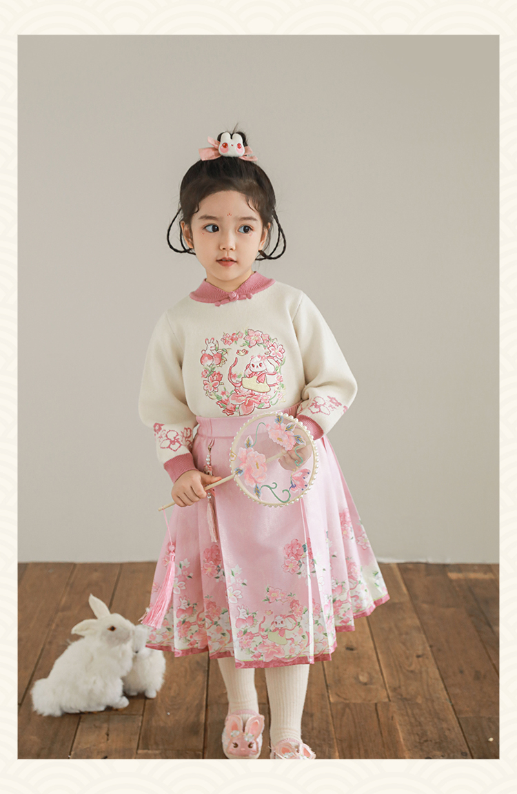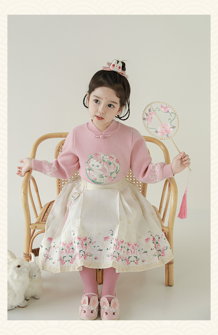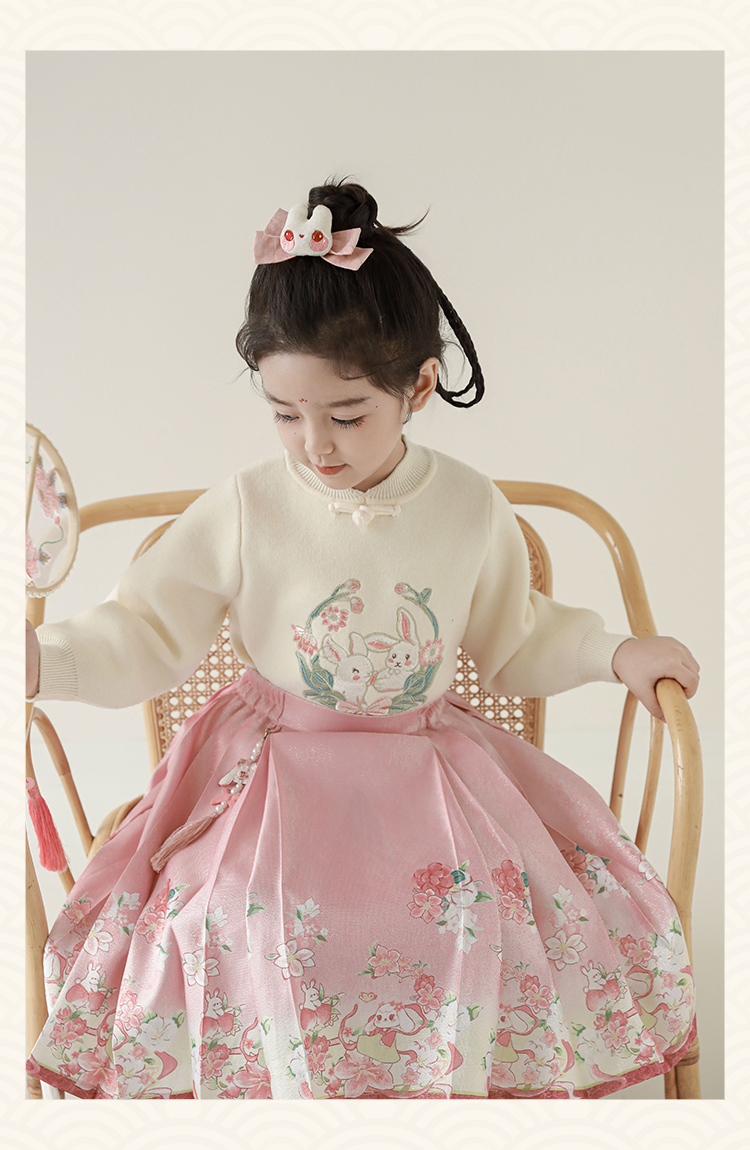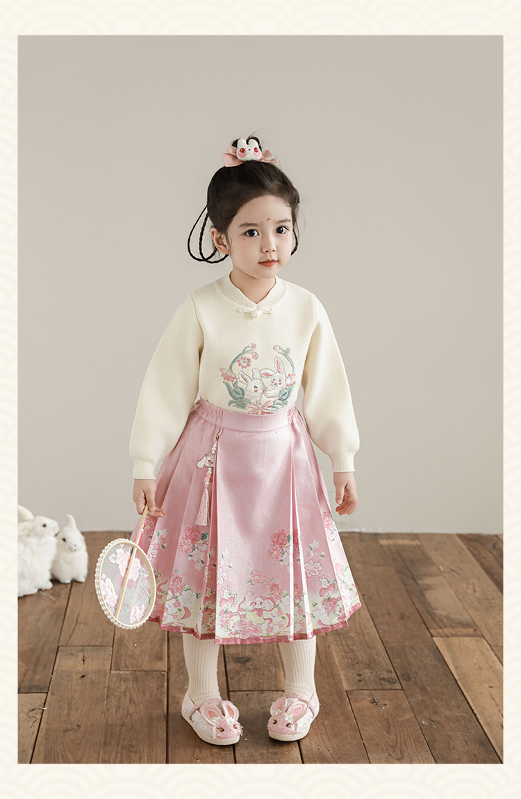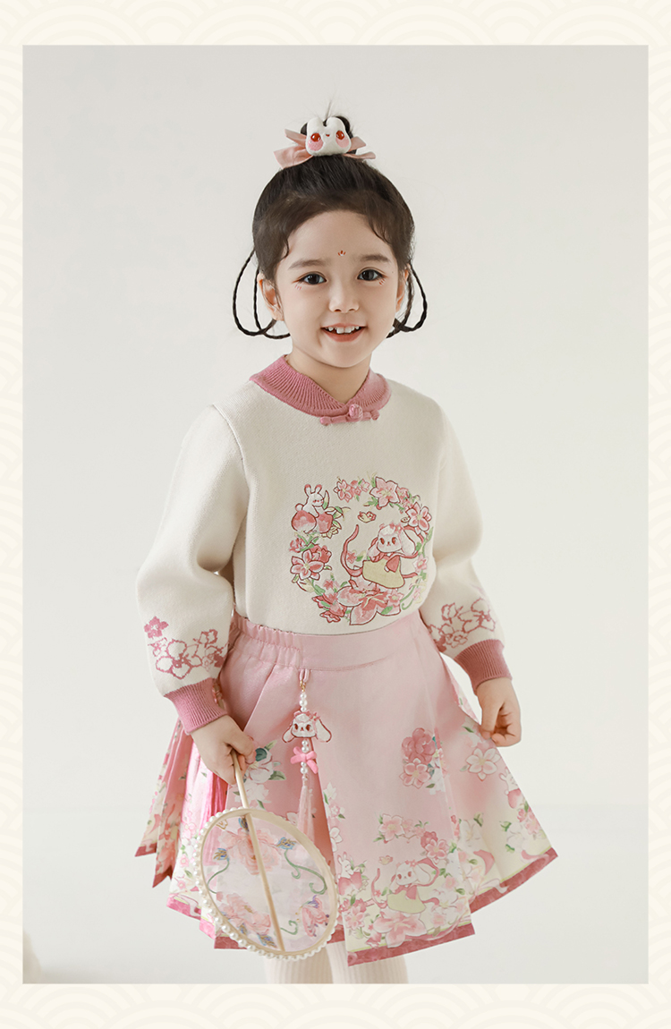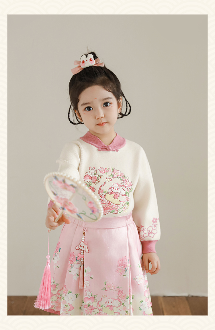 Wuri Bub 더블 11 여자 중국 세트 겨울 어린이 청삼 수직 칼라 스웨터 길고 짧은 국가 스타일 말 얼굴 오버스커트