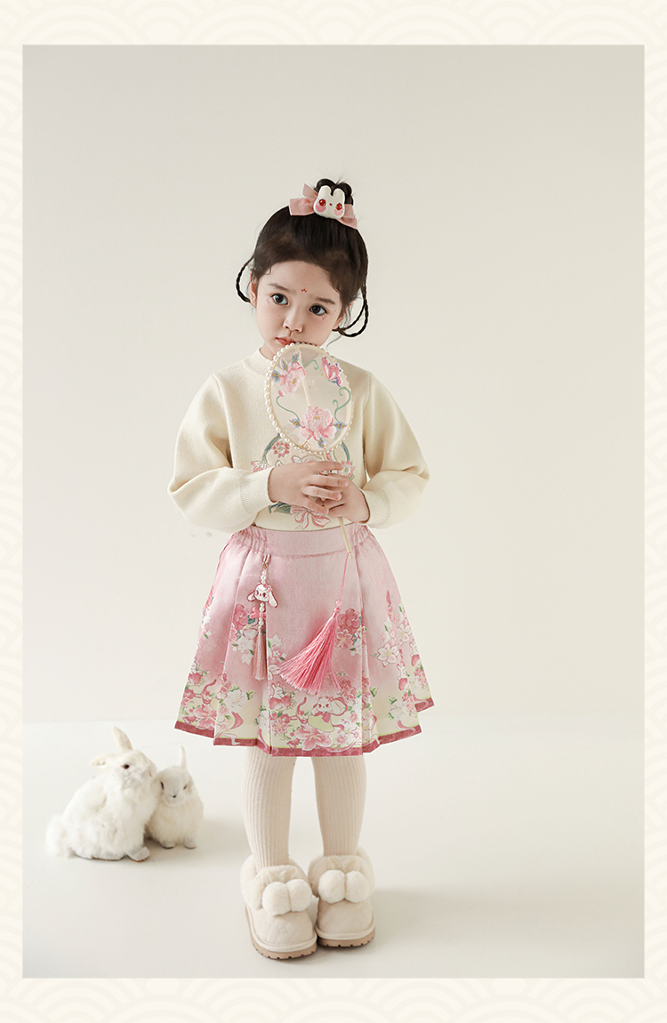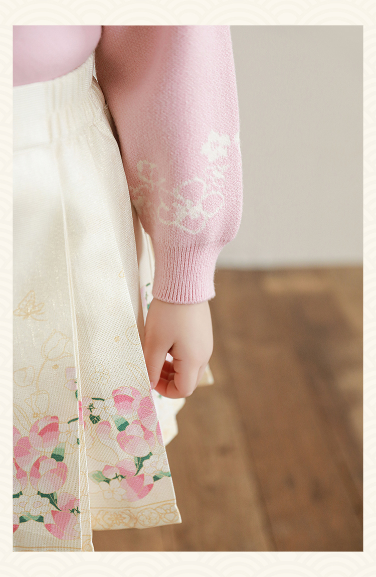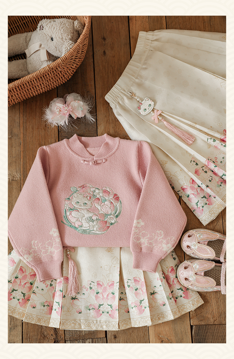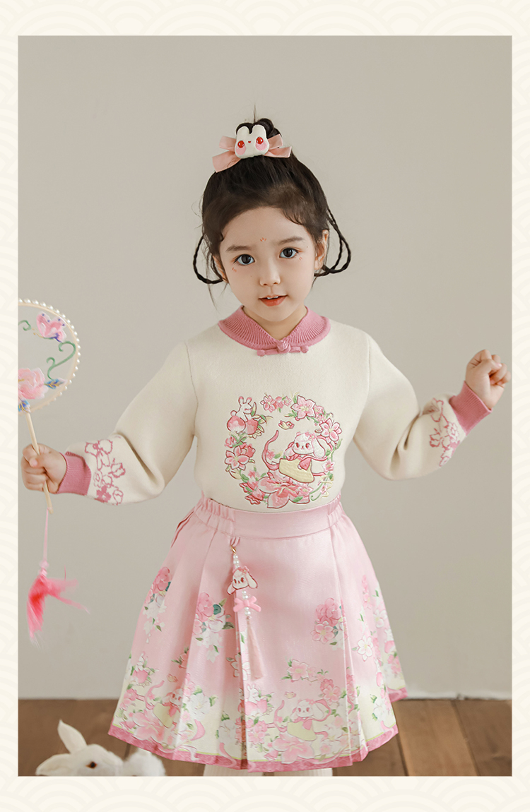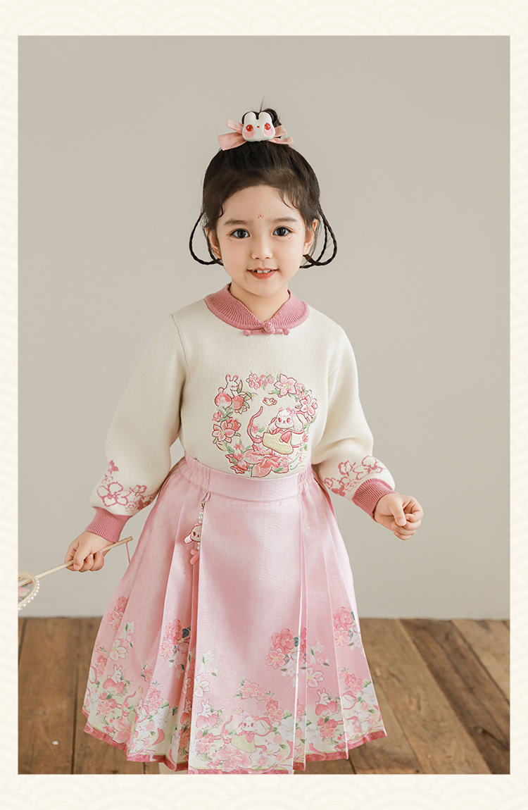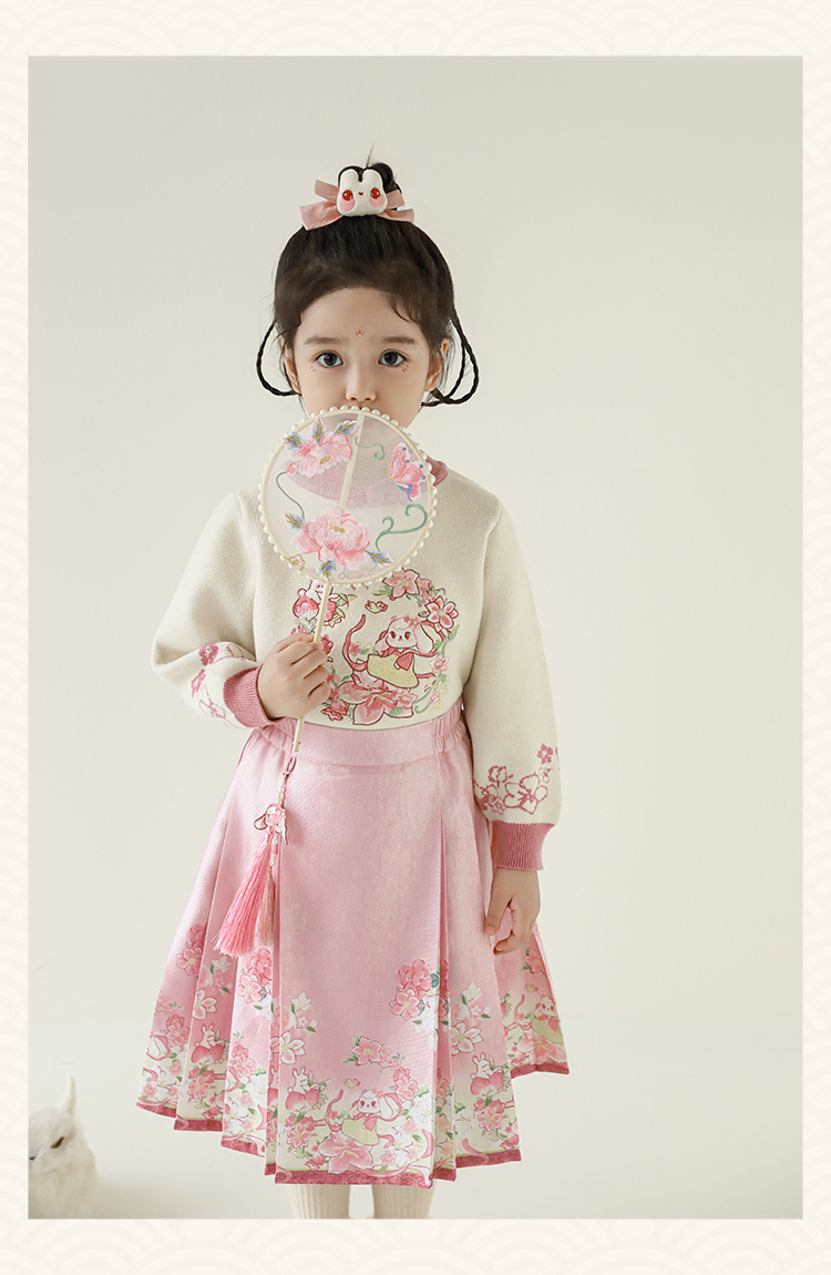Wuri Bub 더블 11 여자 중국 세트 겨울 어린이 청삼 수직 칼라 스웨터 길고 짧은 국가 스타일 말 얼굴 오버스커트