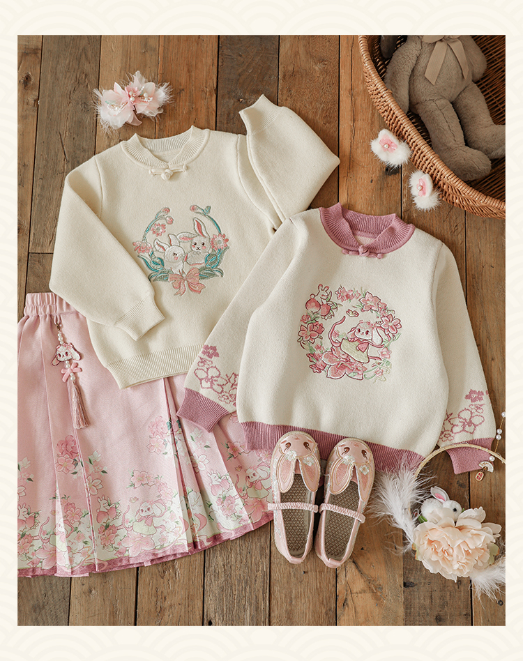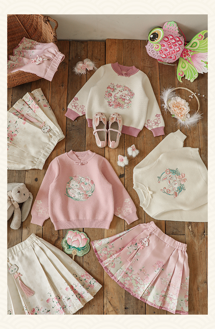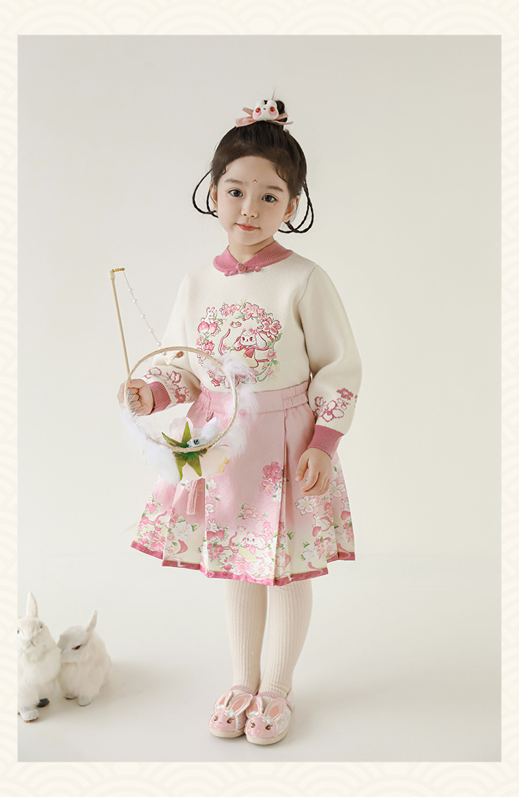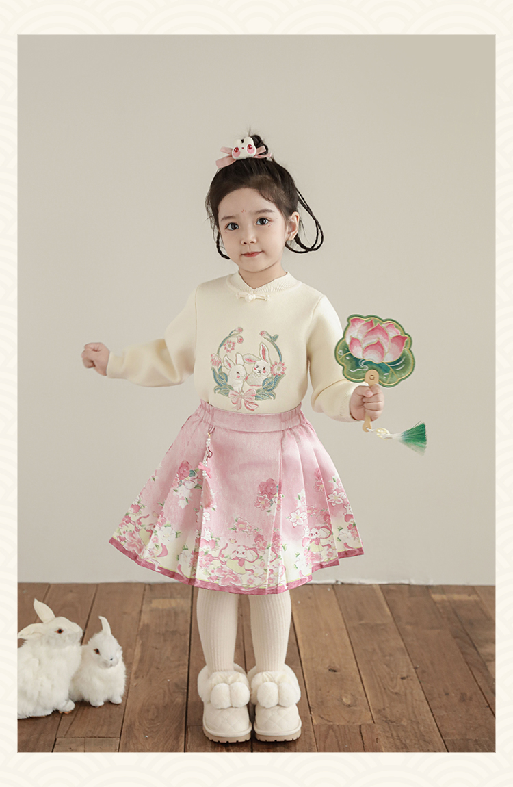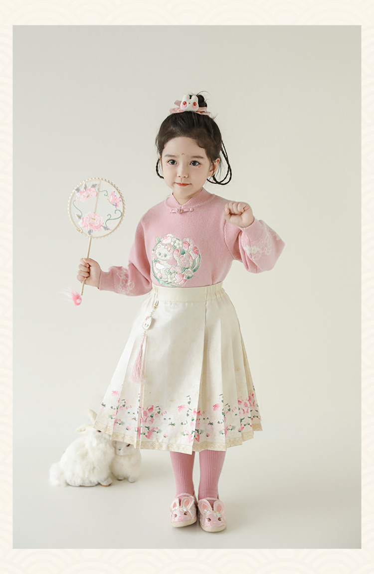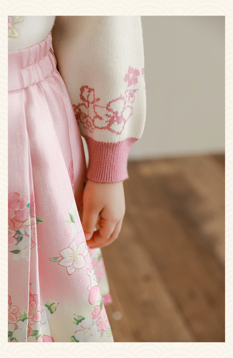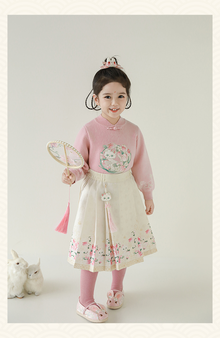 Wuri Bub 더블 11 여자 중국 세트 겨울 어린이 청삼 수직 칼라 스웨터 길고 짧은 국가 스타일 말 얼굴 오버스커트
