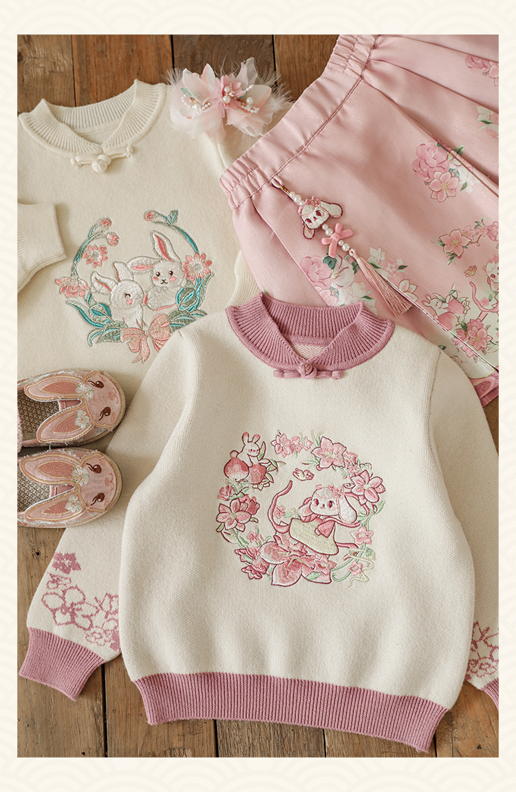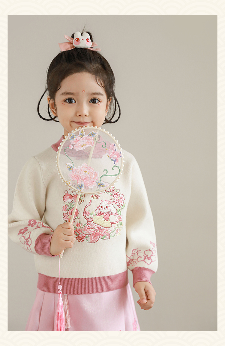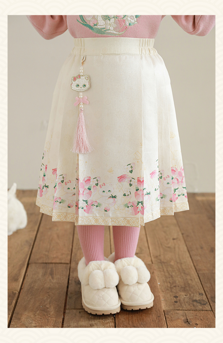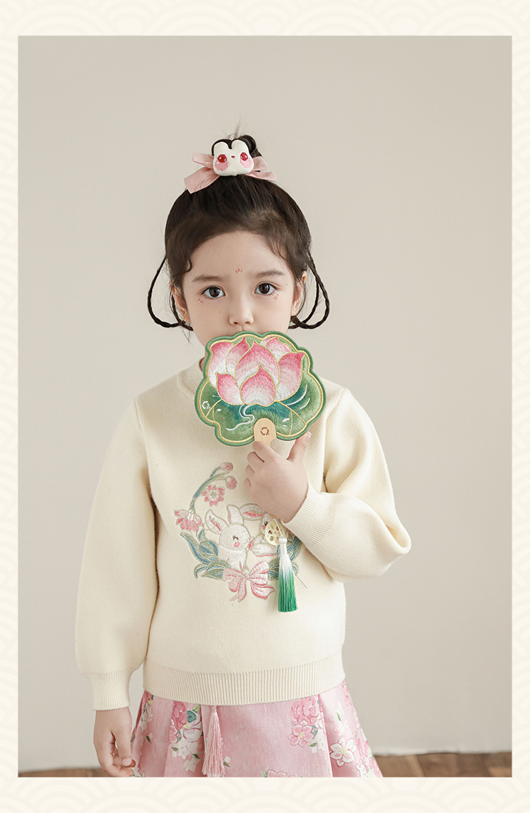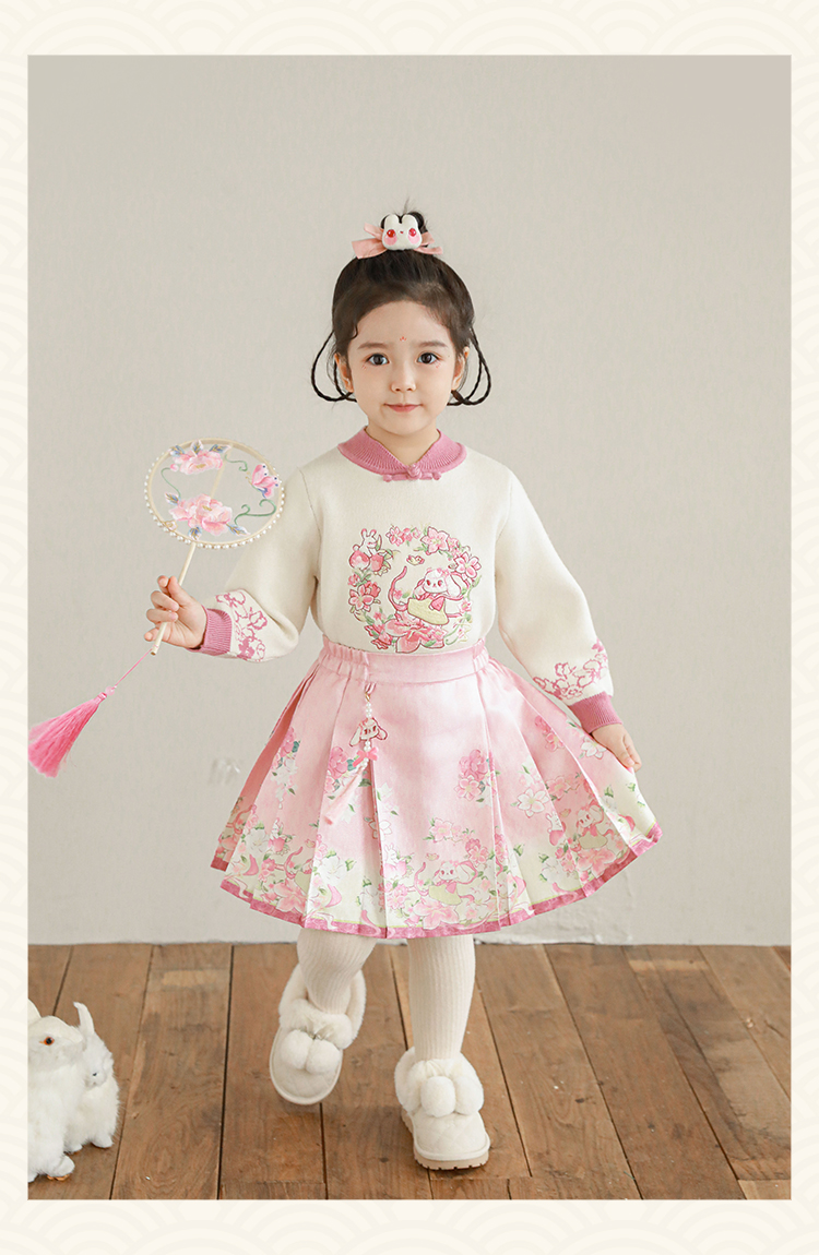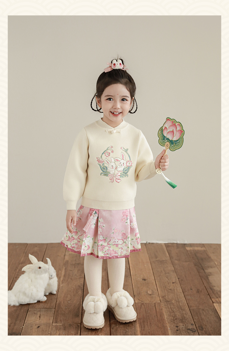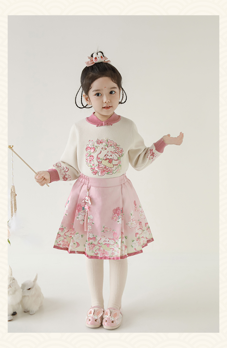 Wuri Bub 더블 11 여자 중국 세트 겨울 어린이 청삼 수직 칼라 스웨터 길고 짧은 국가 스타일 말 얼굴 오버스커트