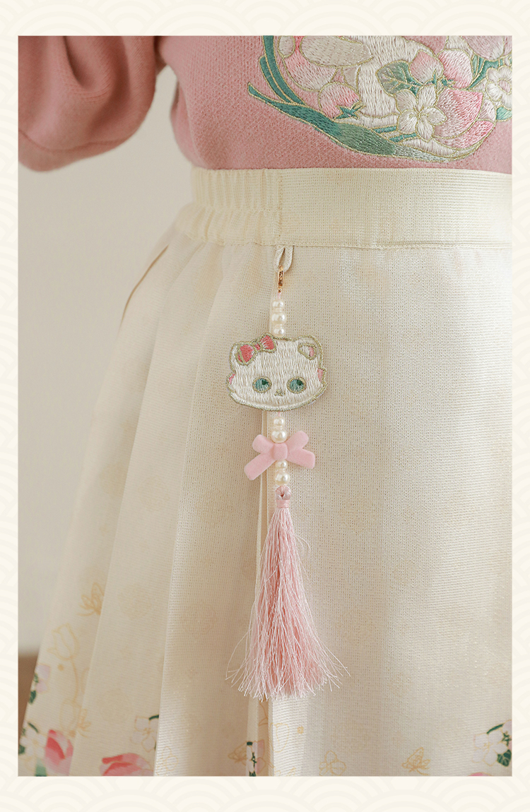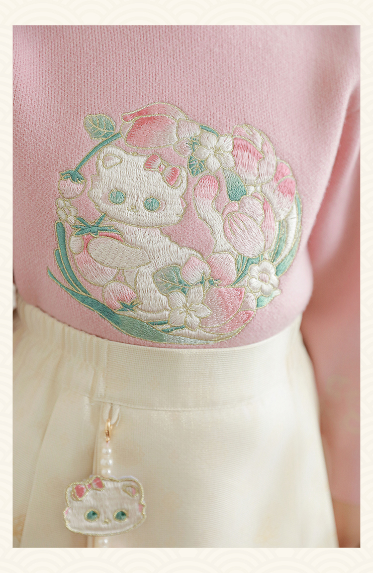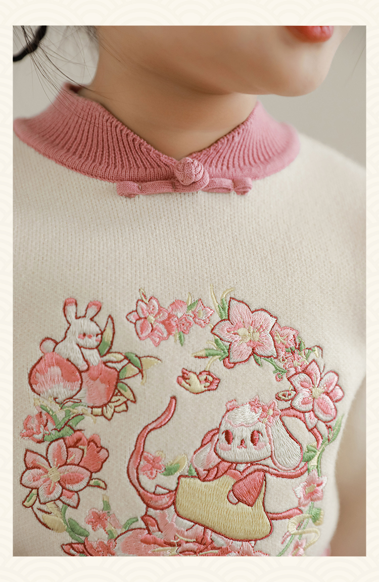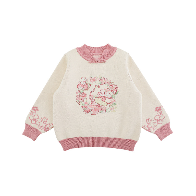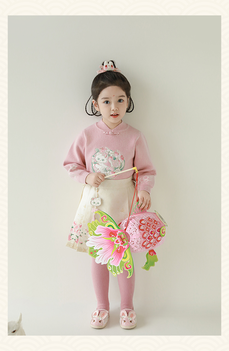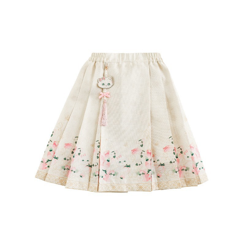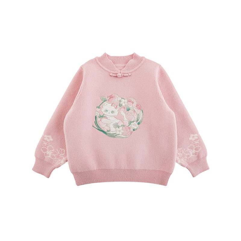Wuri Bub 더블 11 여자 중국 세트 겨울 어린이 청삼 수직 칼라 스웨터 길고 짧은 국가 스타일 말 얼굴 오버스커트