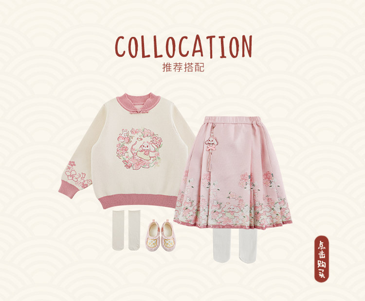 Wuri Bub 더블 11 여자 중국 세트 겨울 어린이 청삼 수직 칼라 스웨터 길고 짧은 국가 스타일 말 얼굴 오버스커트스토어 가기