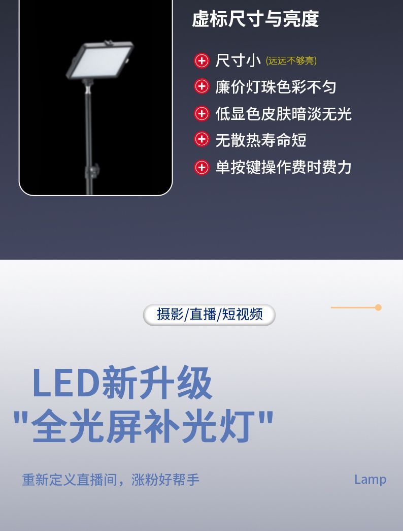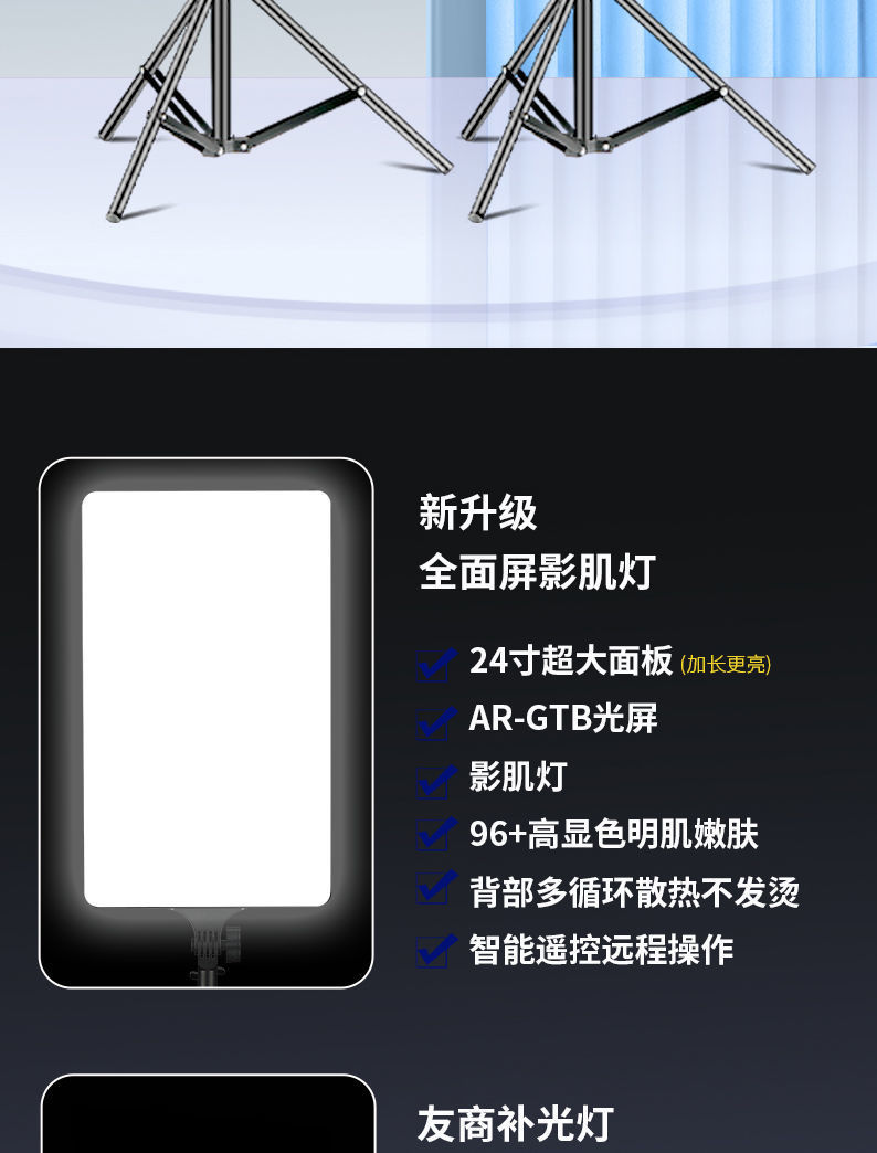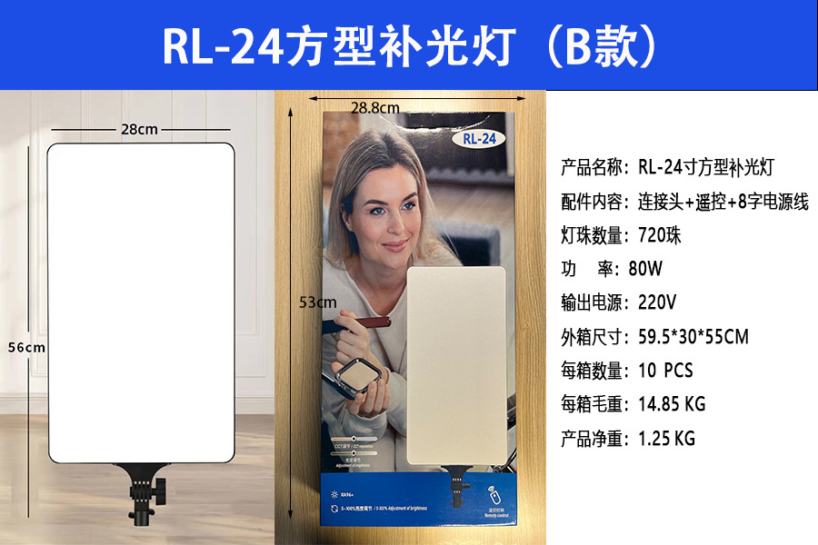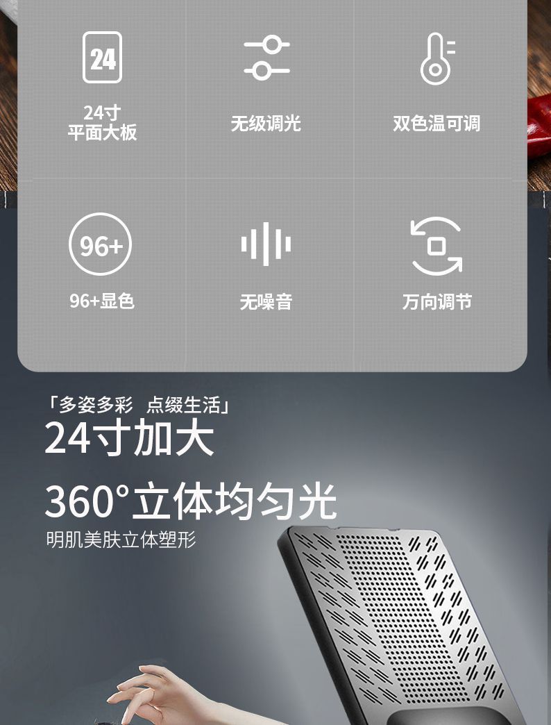 24 인치 사각형 빛 라이브 평면 패널 빛 전체 화면 보충 조명 휴대 전화 셀카 상품 전문 사진 비디오 사진 라이브