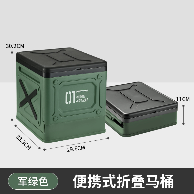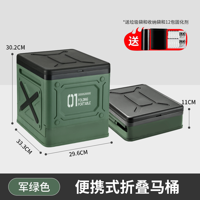 • 접이식 변기, 밀리터리 그린 + 경화제 + 쓰레기 봉투 + 보관 가방