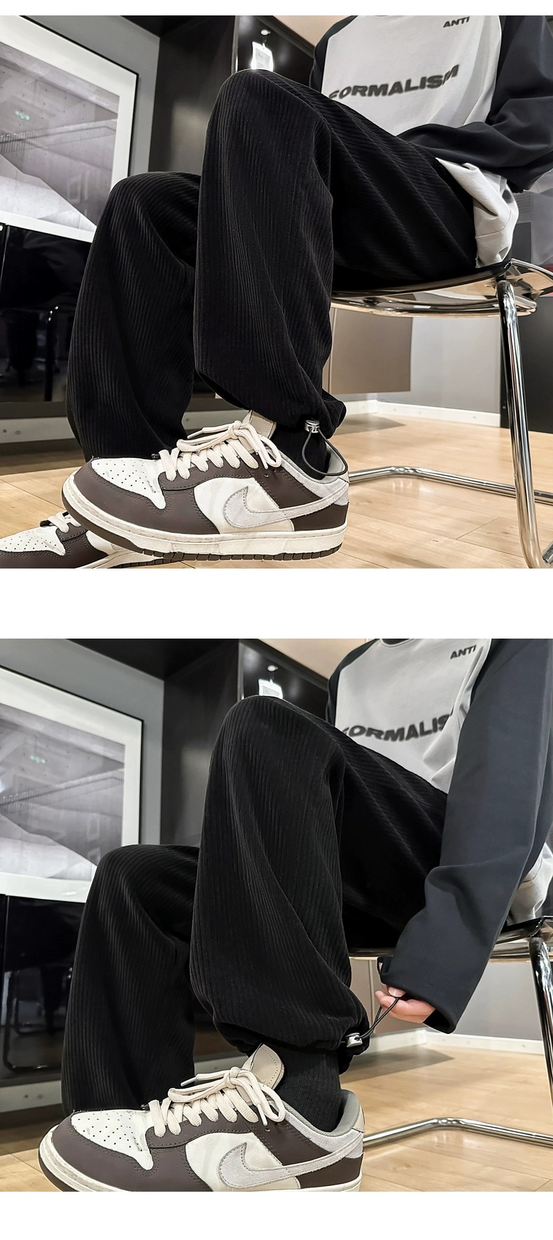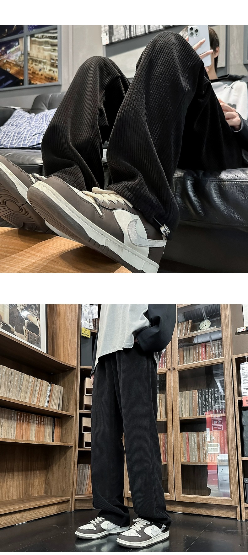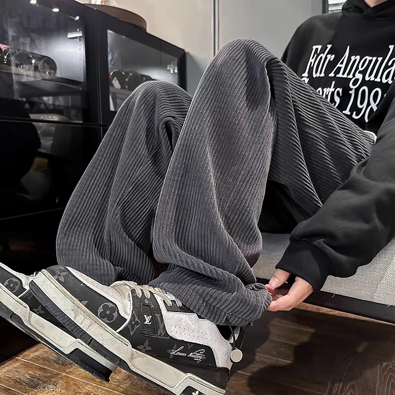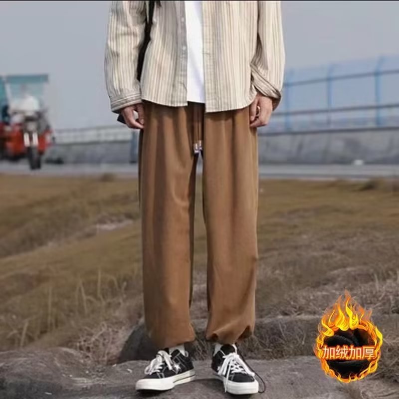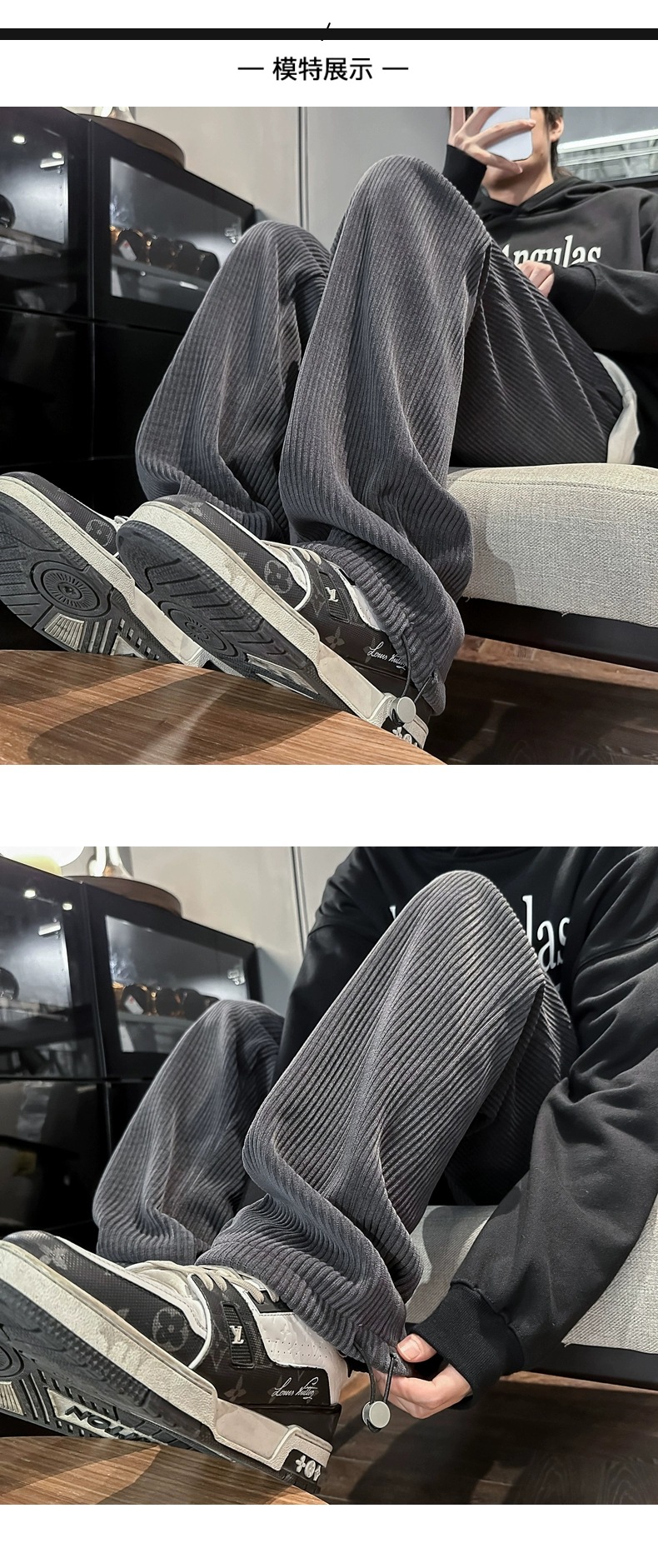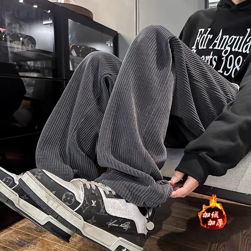 기모 두꺼운 코듀로이 바지 남성 가을 및 겨울 패션 브랜드 스트레이트 루즈 와이드 레그 팬츠 레트로 캐주얼 스포츠 바지스토어 가기