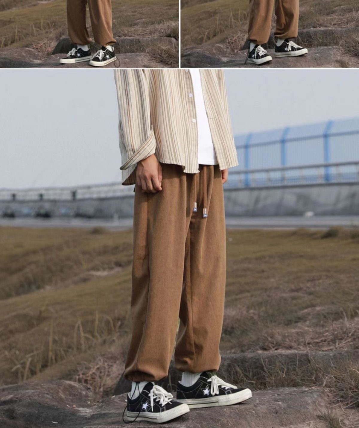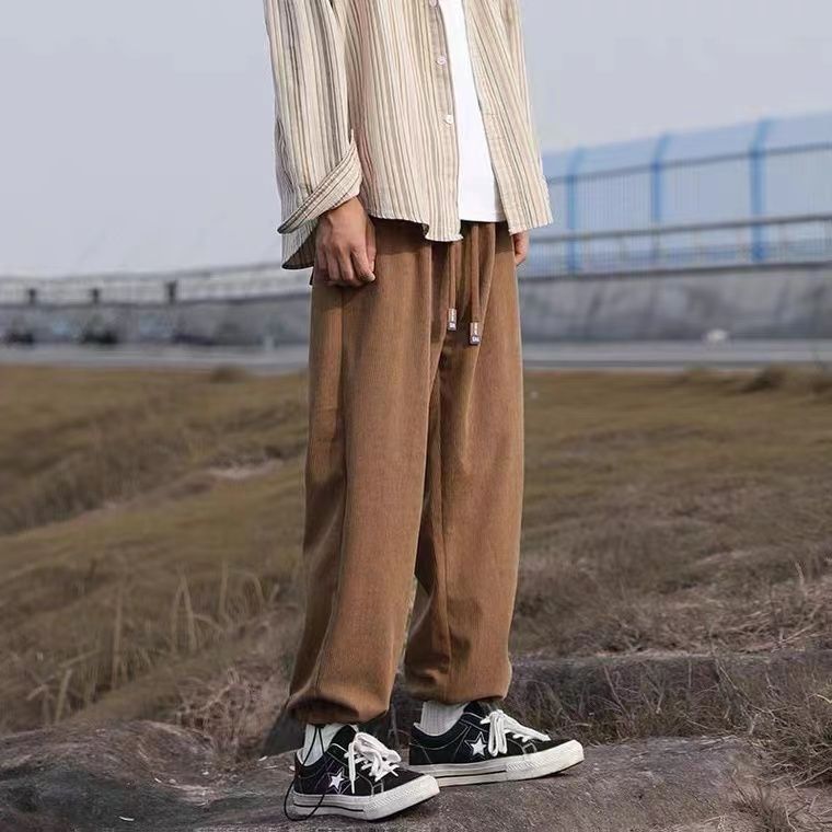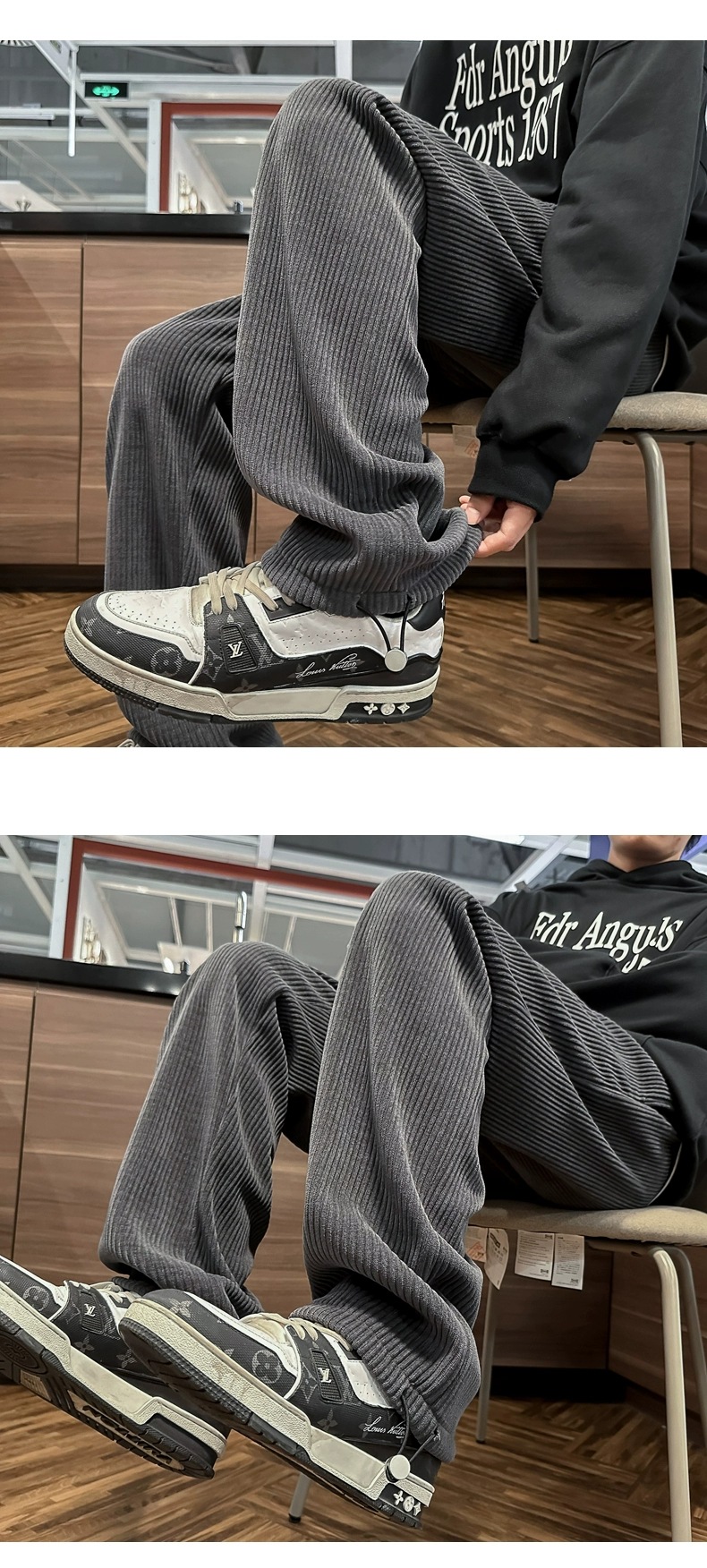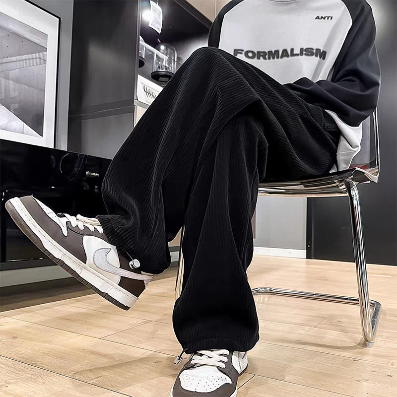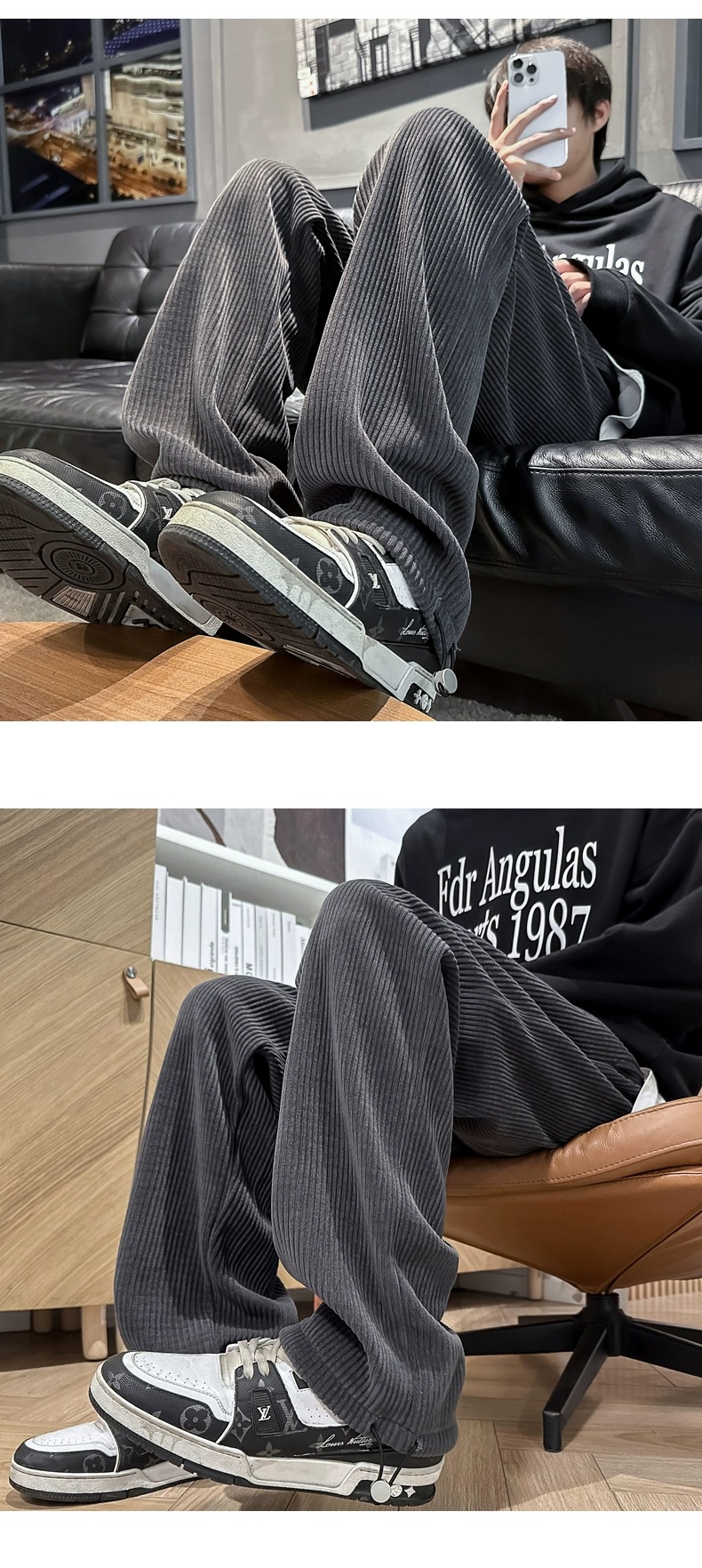 기모 두꺼운 코듀로이 바지 남성 가을 및 겨울 패션 브랜드 스트레이트 루즈 와이드 레그 팬츠 레트로 캐주얼 스포츠 바지스토어 가기
