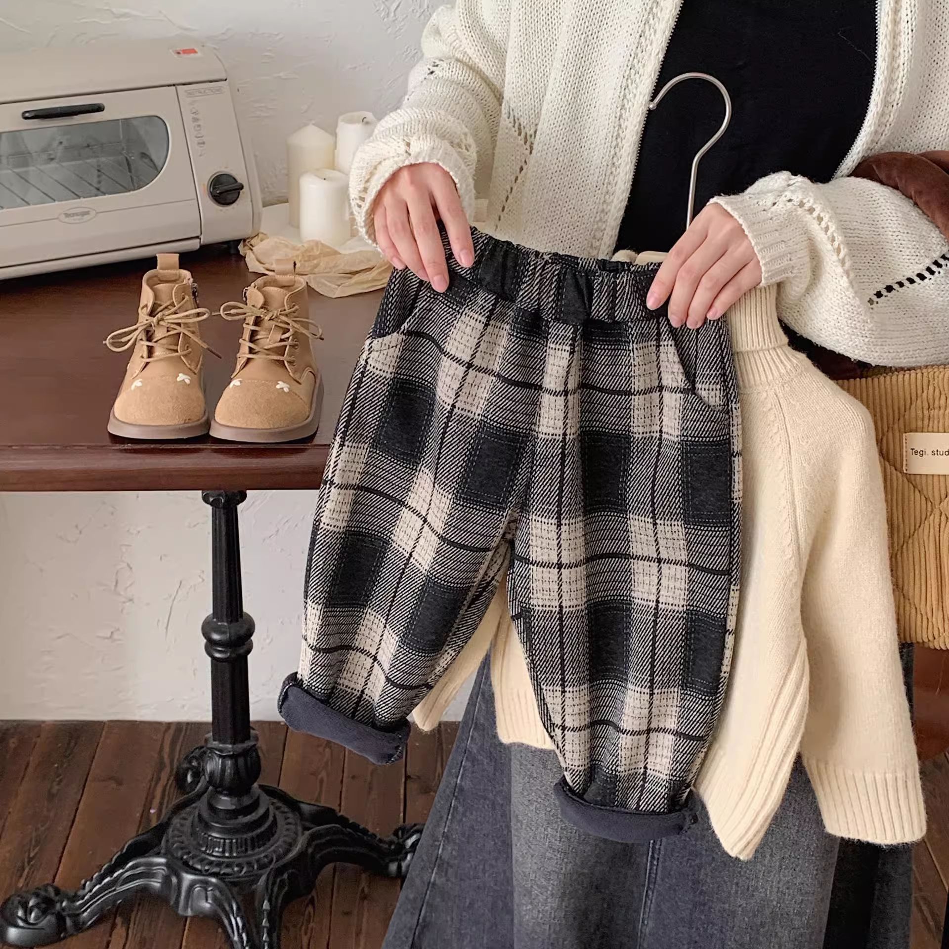 어린이 바지 2024 겨울 새 소년과 소녀 레오파드 무늬 기모 캐주얼 바지 아기 원피스 양털 스트레이트 트렌디 바지스토어 가기