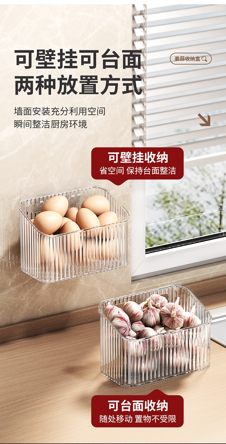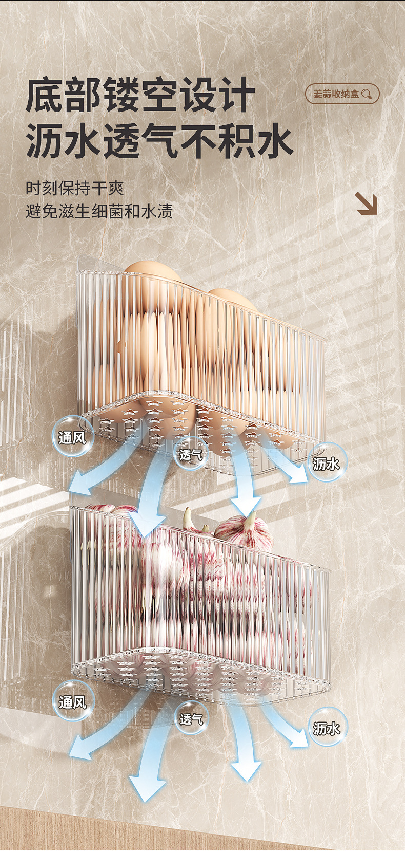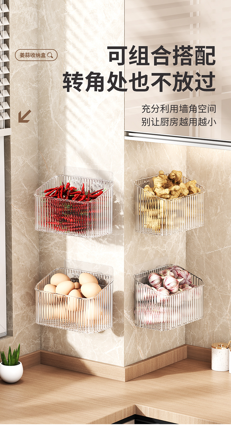 국경 간] 부엌 종아리, 생강 및 마늘 저장 바구니 저장 선반 욕실 화장품 상자 화장실 벽 플라스틱 보관 상자스토어 가기