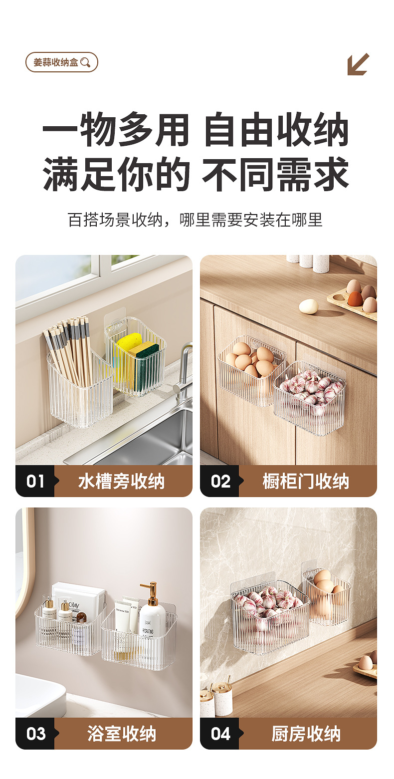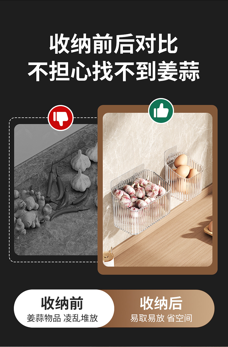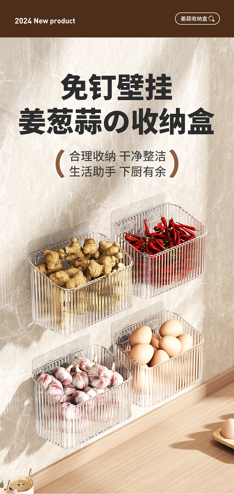 국경 간] 부엌 종아리, 생강 및 마늘 저장 바구니 저장 선반 욕실 화장품 상자 화장실 벽 플라스틱 보관 상자스토어 가기