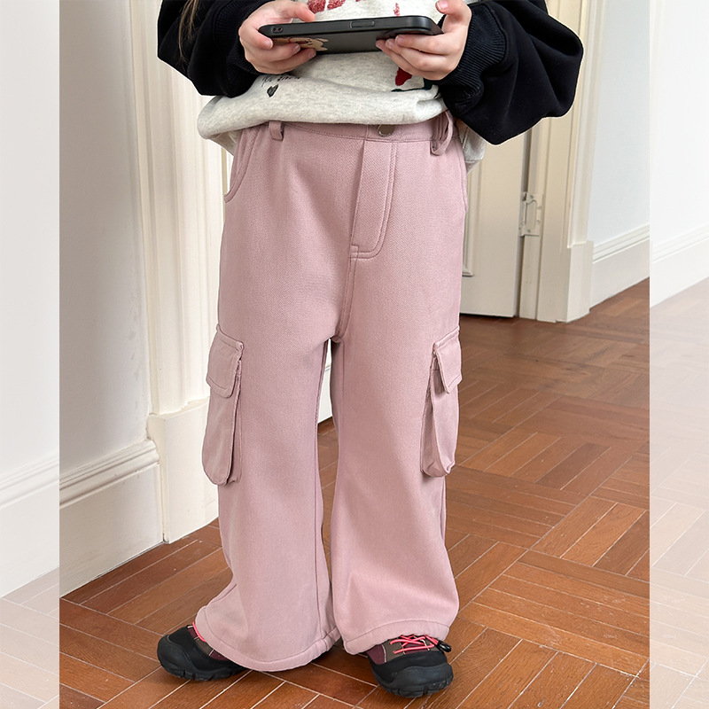 [클리어아웃] 여아용 벨벳 소재의 두꺼운 복합 소재 일체형 대형 포켓 스타일리쉬 캐주얼 패셔너블 플레어 오버롤