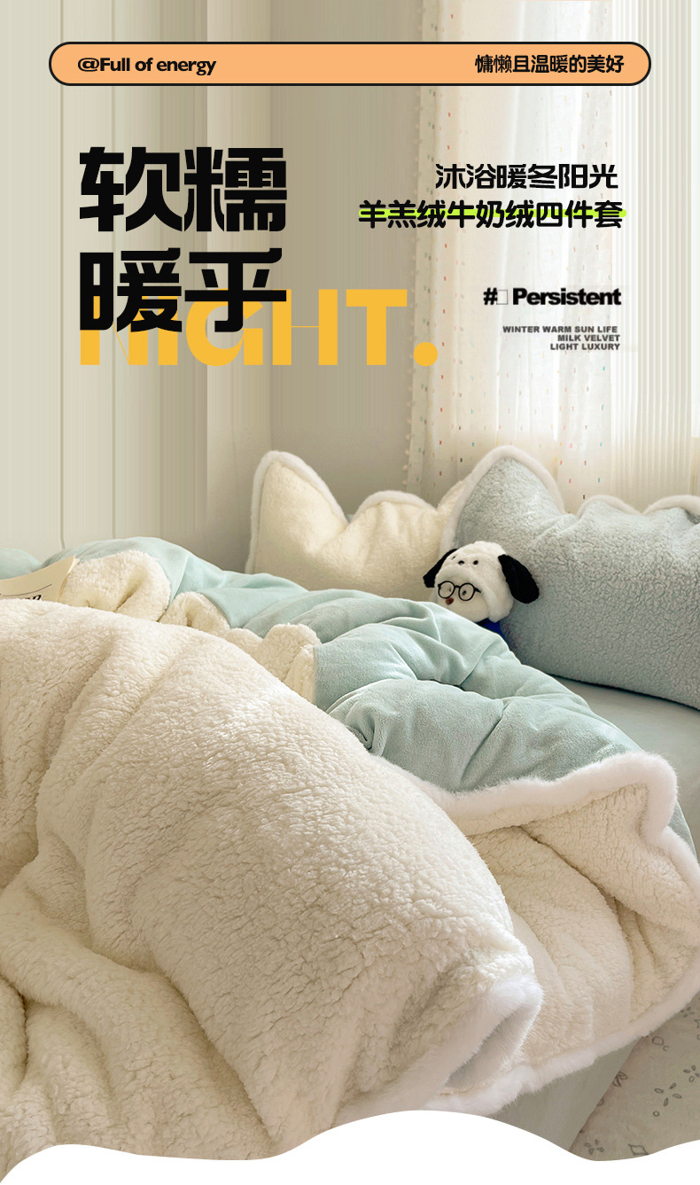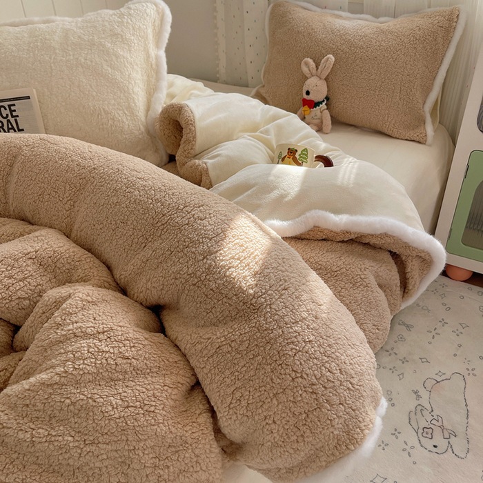 2024 새로운 양고기 양털 토끼 모피 가장자리 대비 우유 양털 4 종 세트스토어 가기