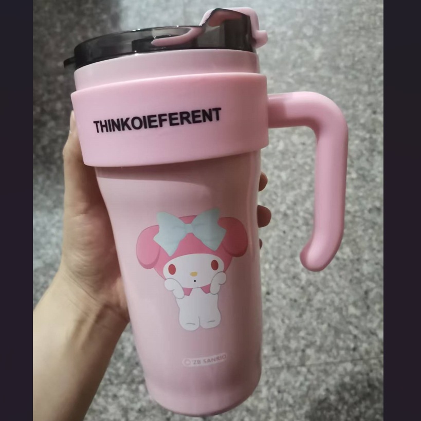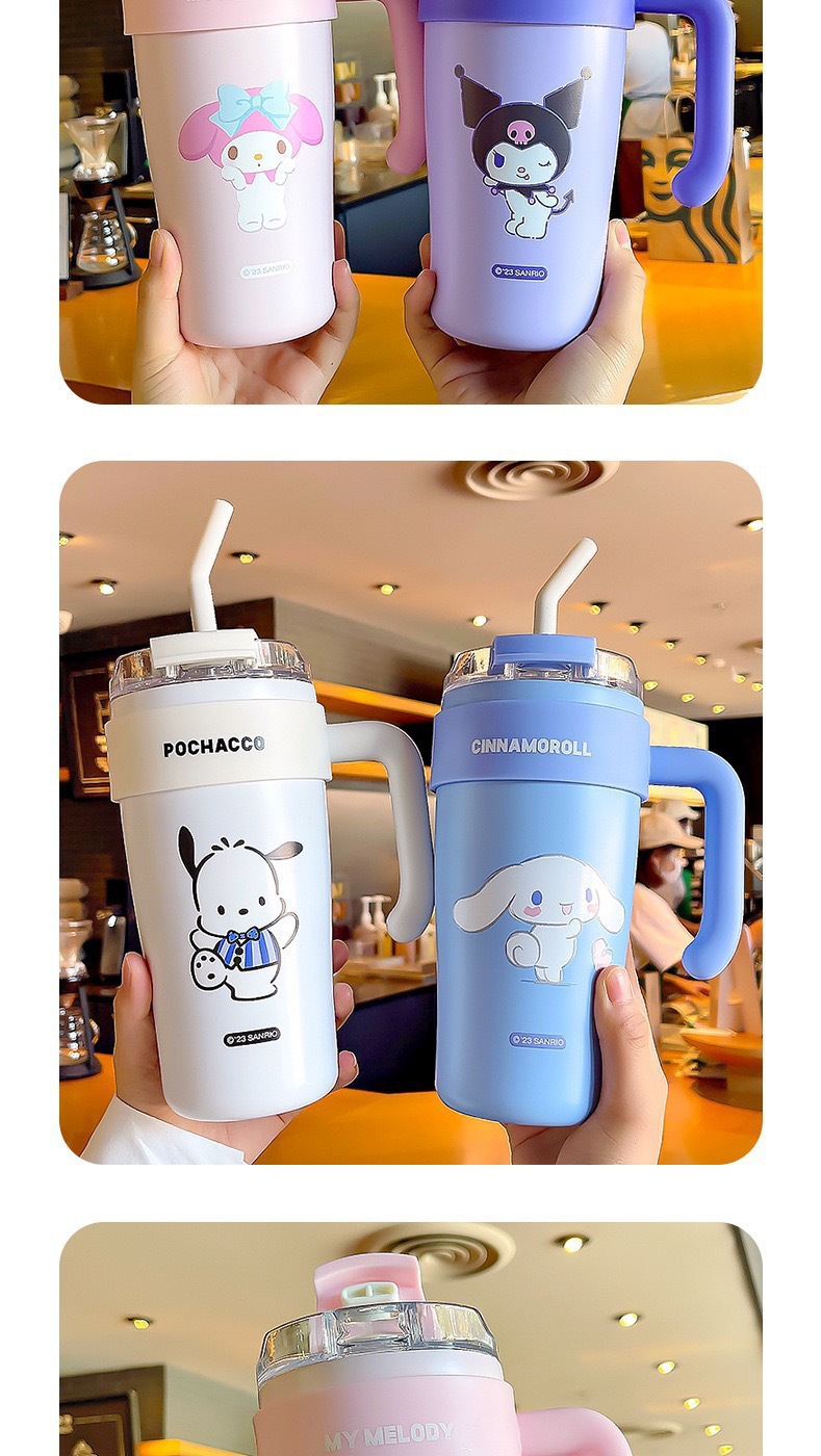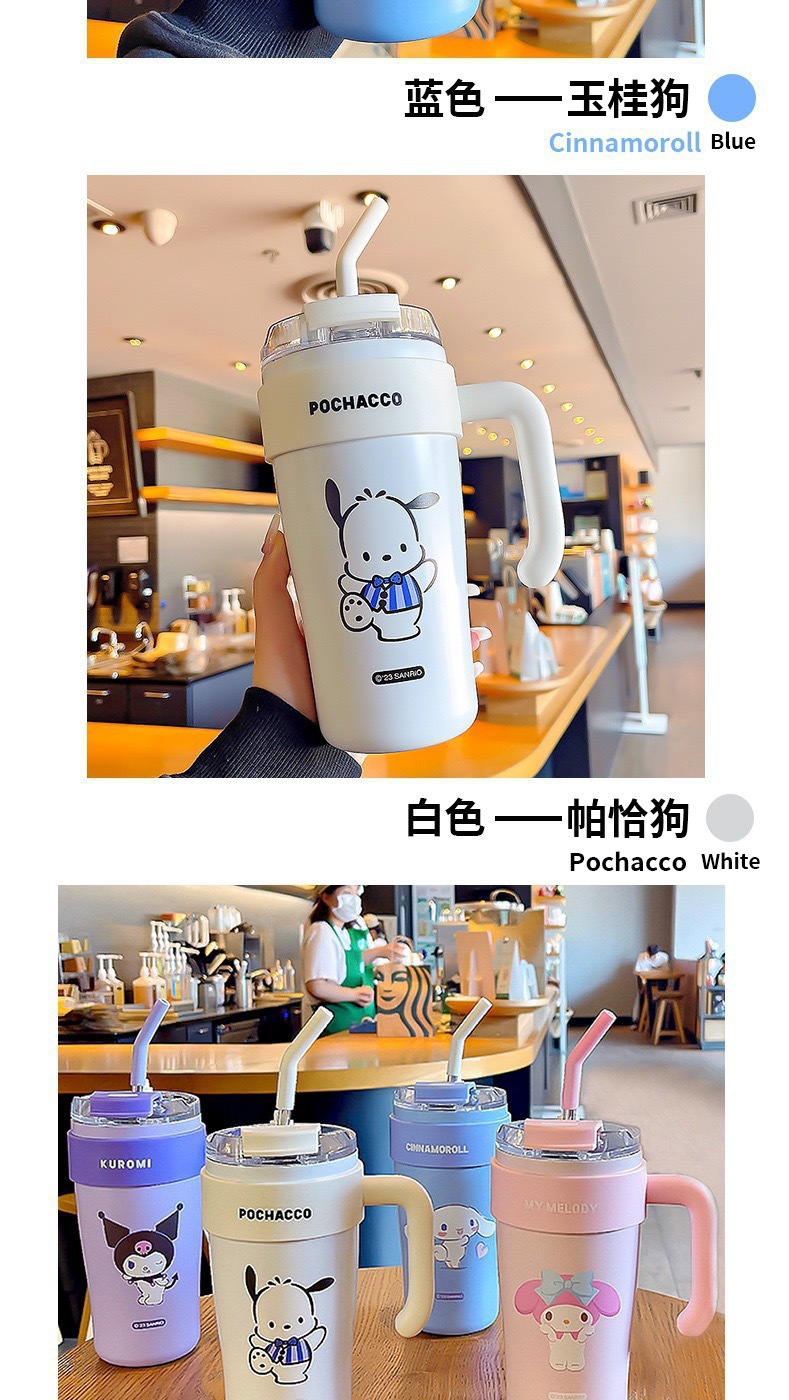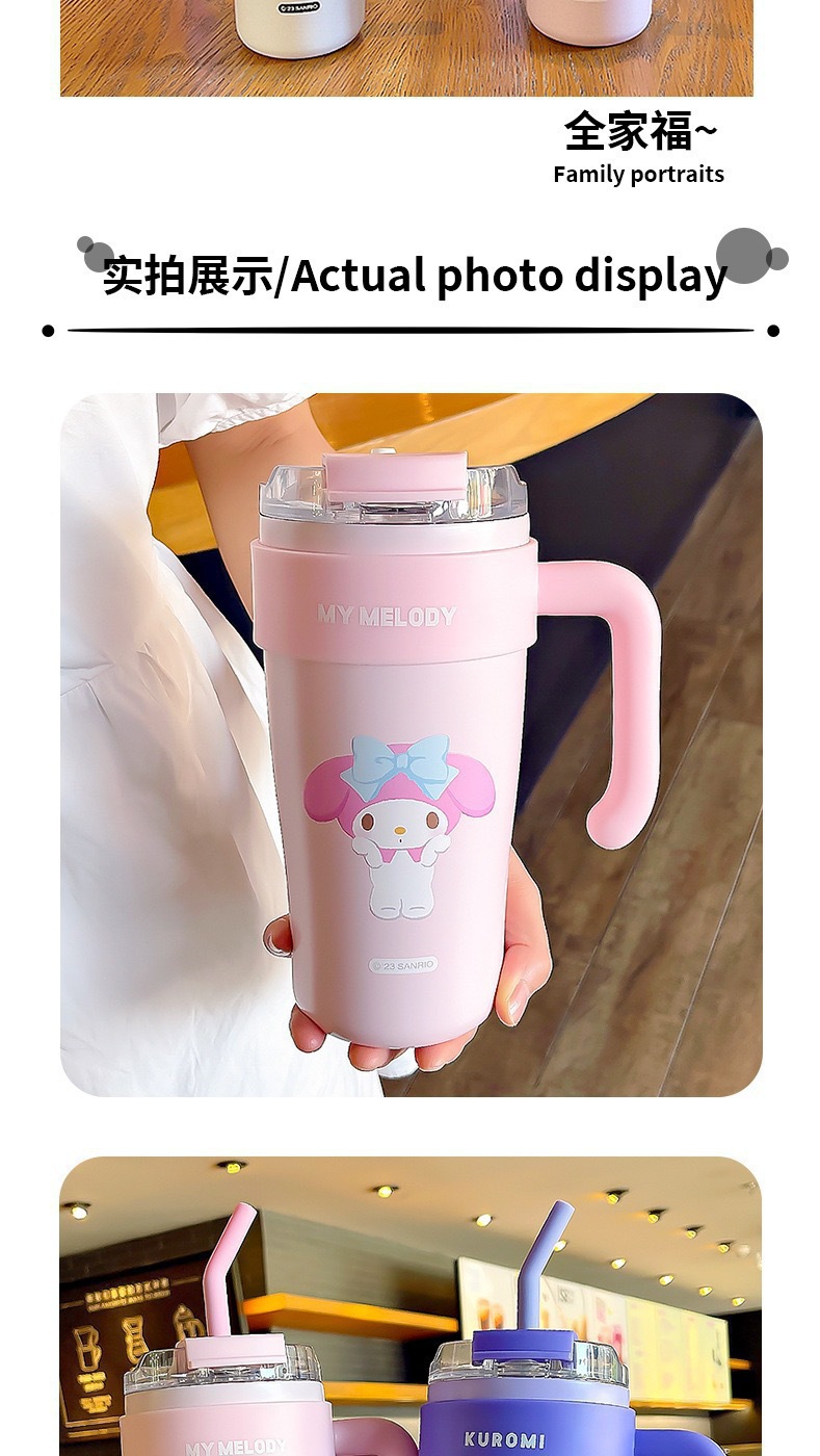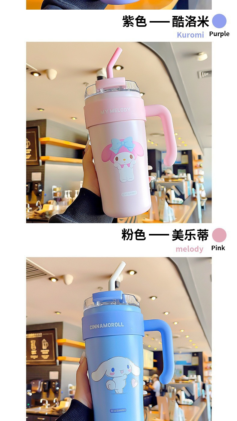 휴대용 스테인레스 스틸 아이스 깡패 컵 여자 높은 가치 산리오 보온병 컵 대용량 핸들 컵 만화 흡입 컵스토어 가기