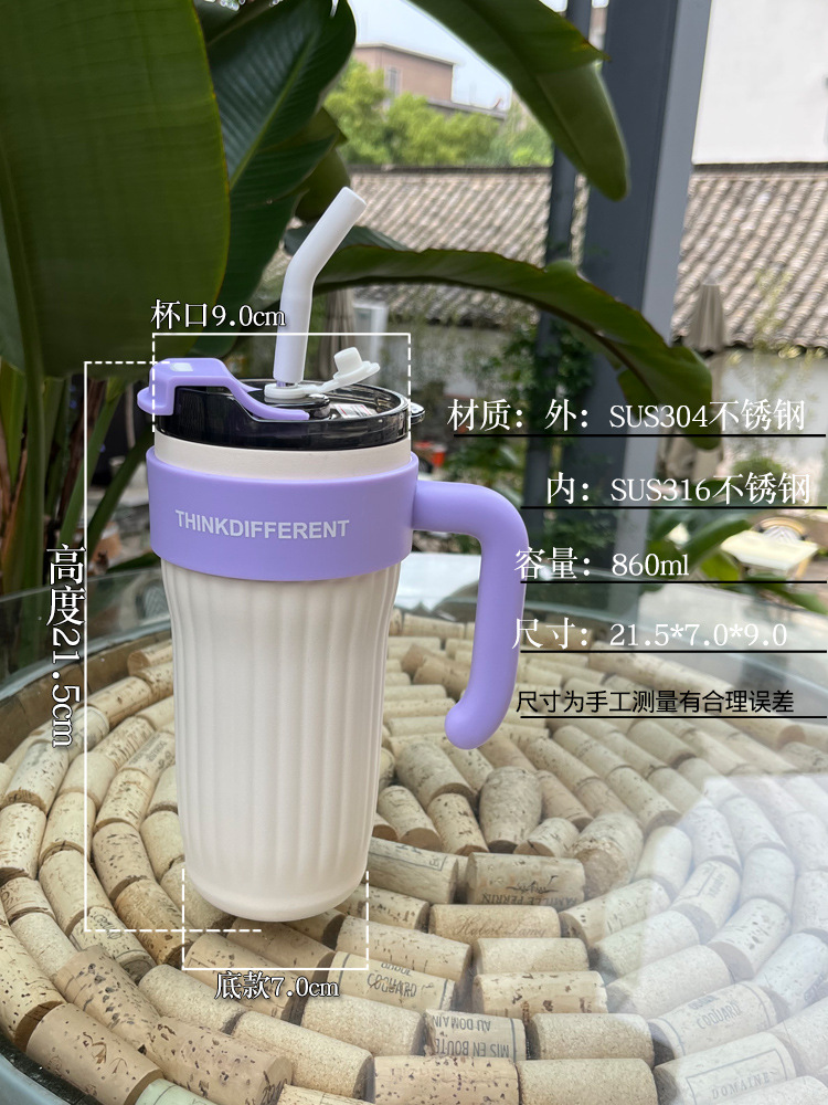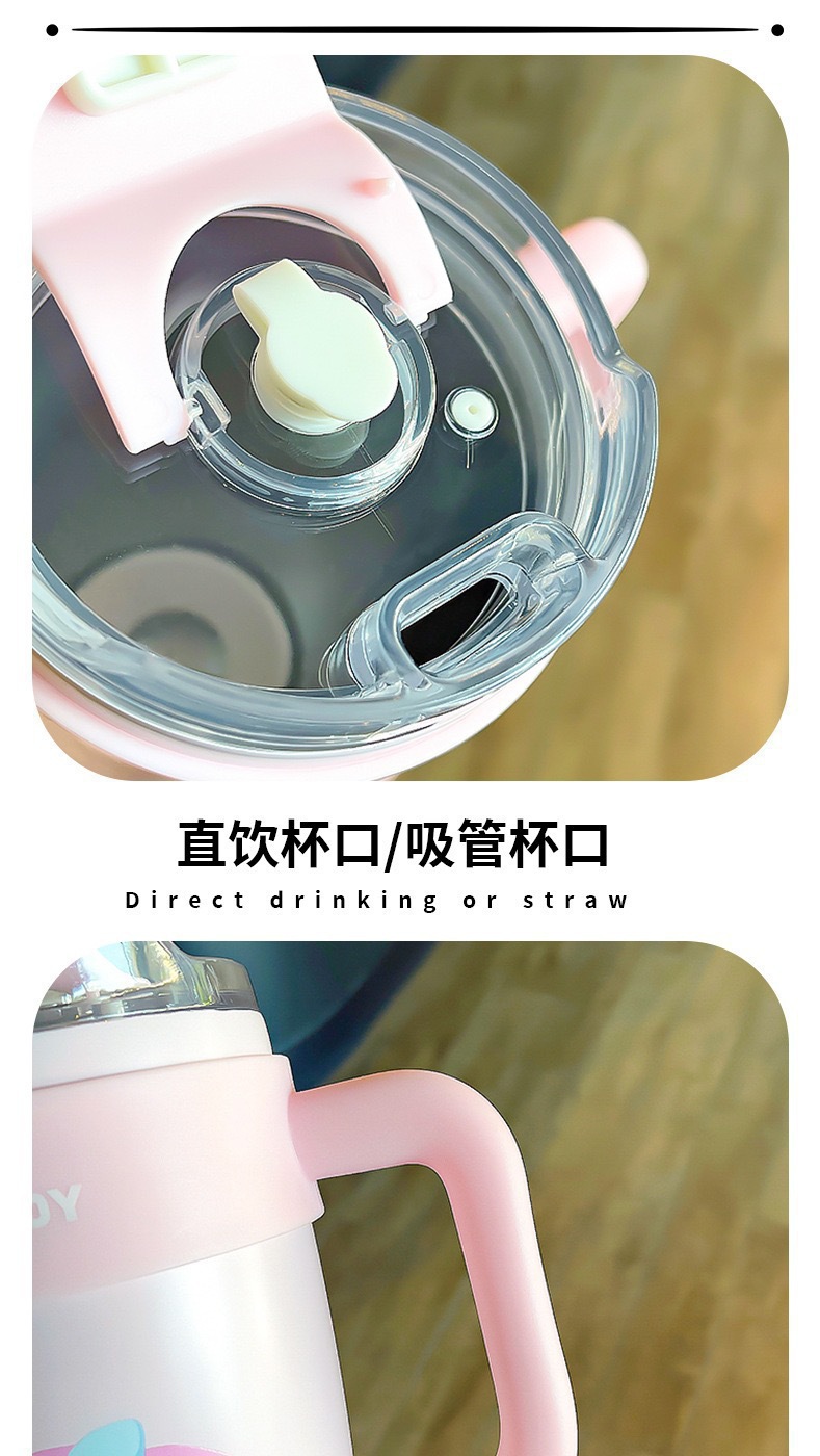 휴대용 스테인레스 스틸 아이스 깡패 컵 여자 높은 가치 산리오 보온병 컵 대용량 핸들 컵 만화 흡입 컵