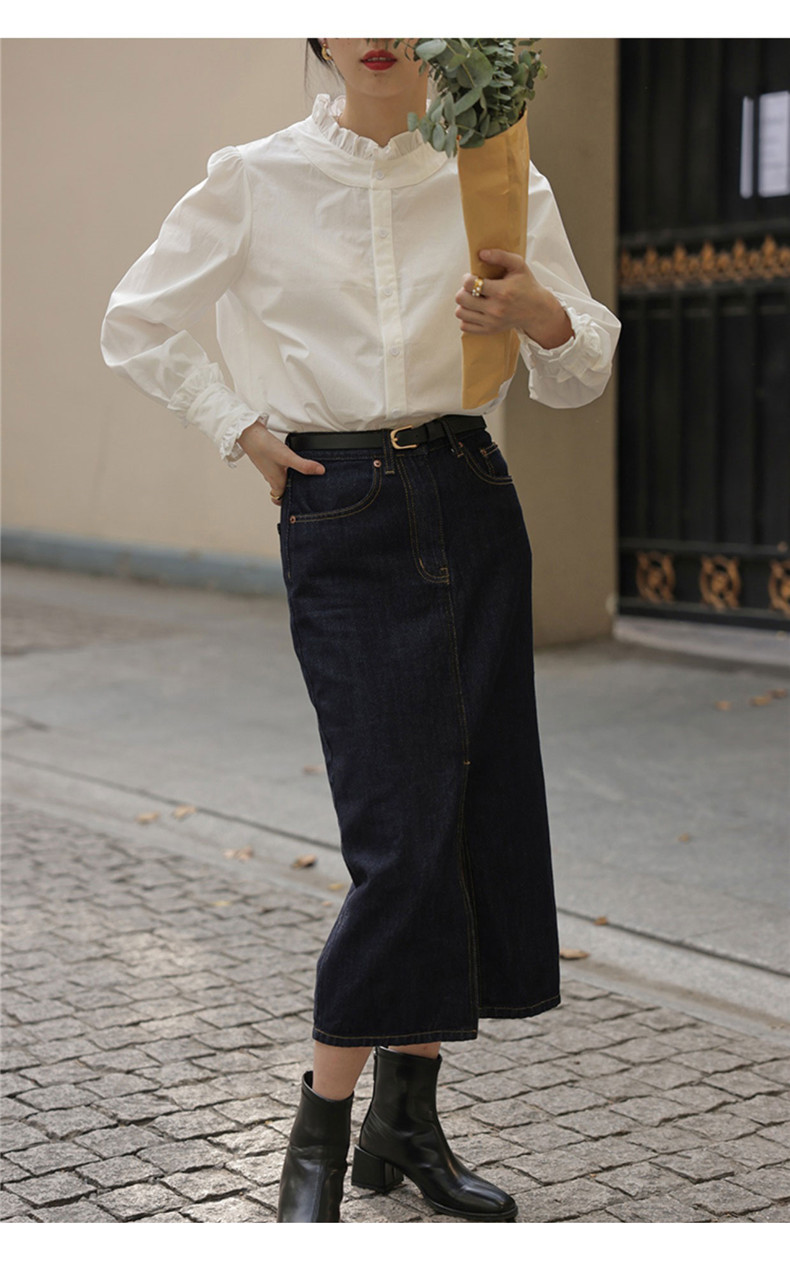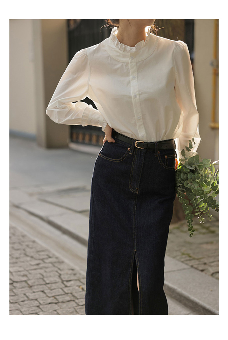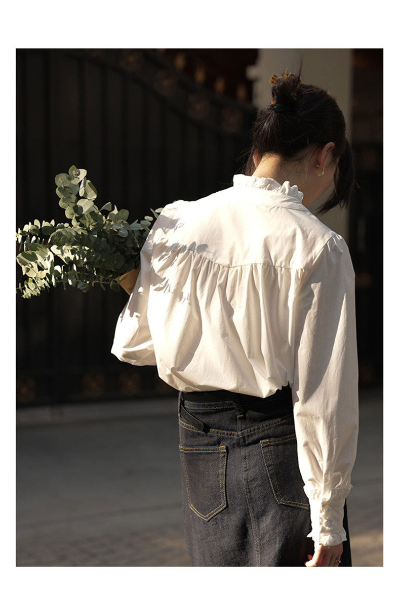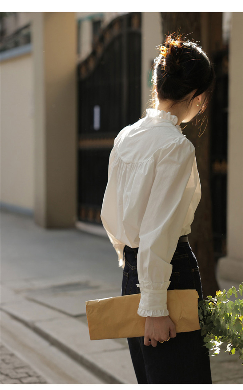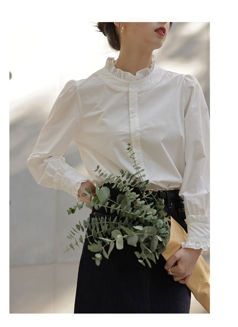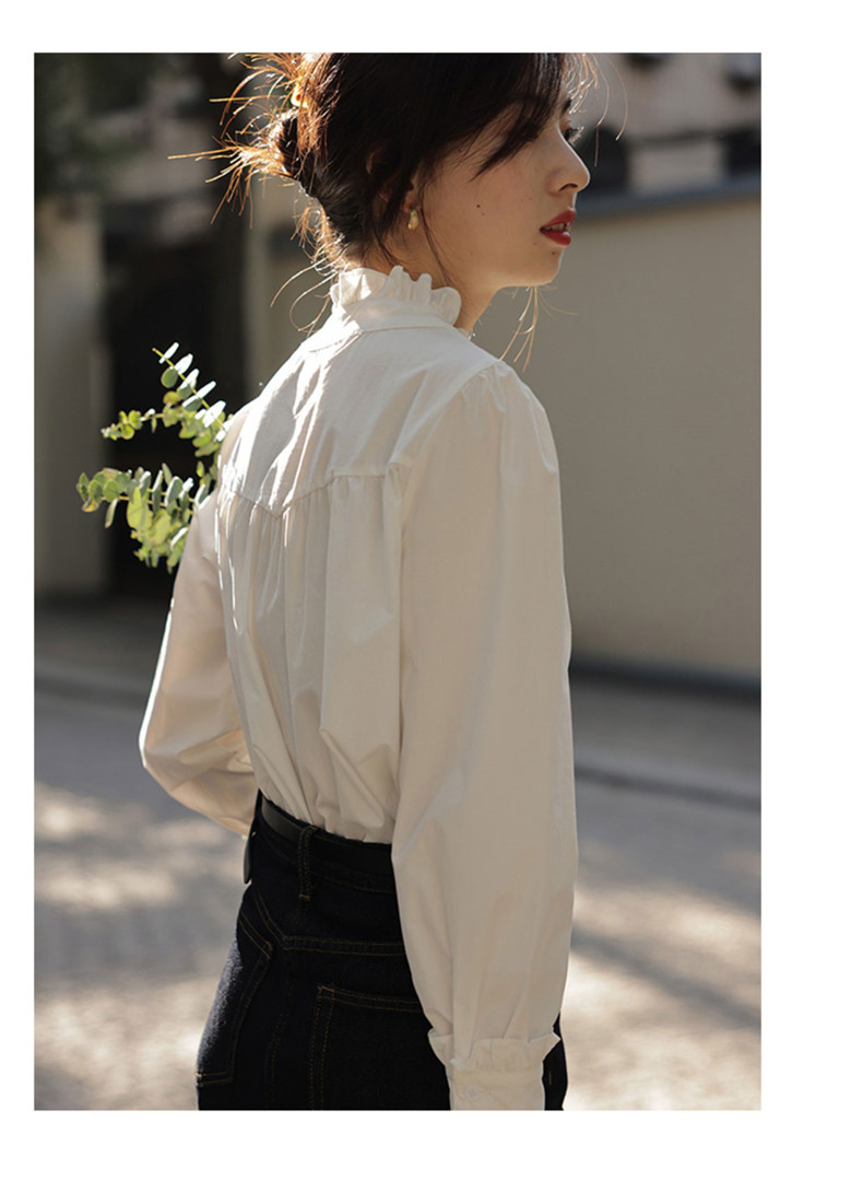 여성용 흰색 긴팔 셔츠, 이너 레이어드 셔츠, 2025 신상 인기 패션 스타일, 봄 가을용 라운드넥 탑스토어 가기