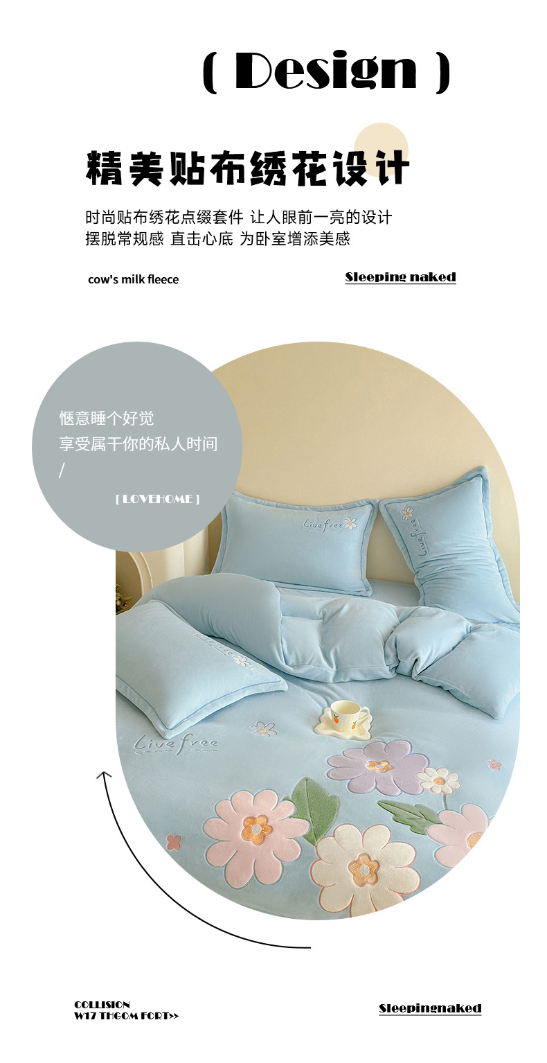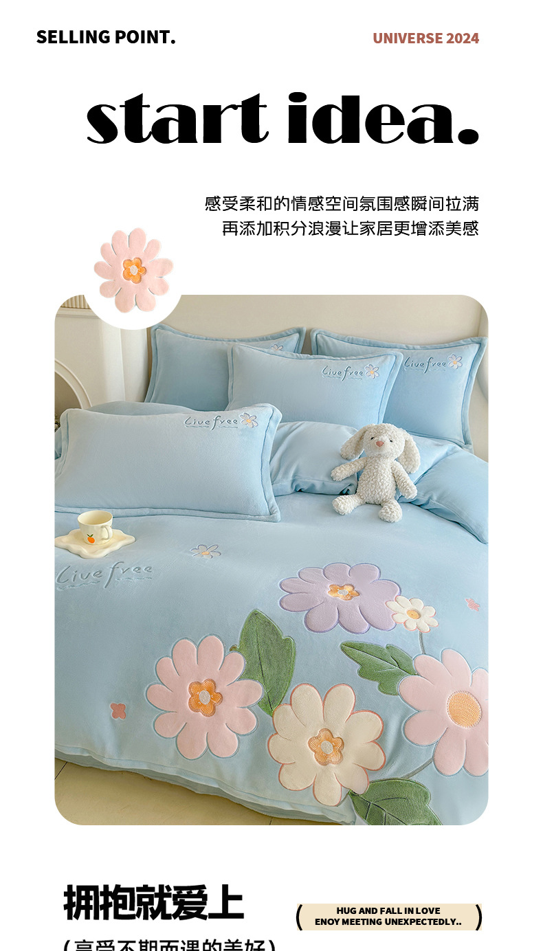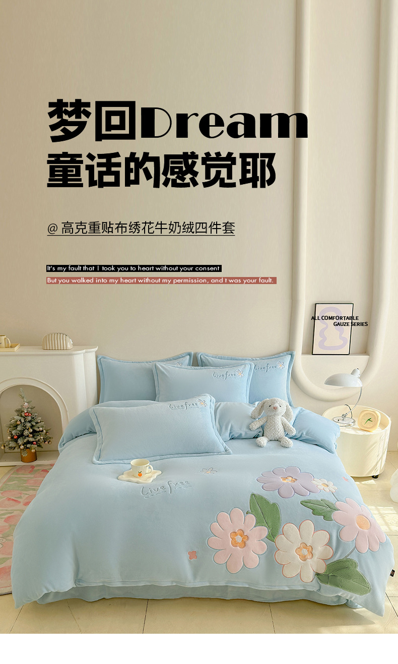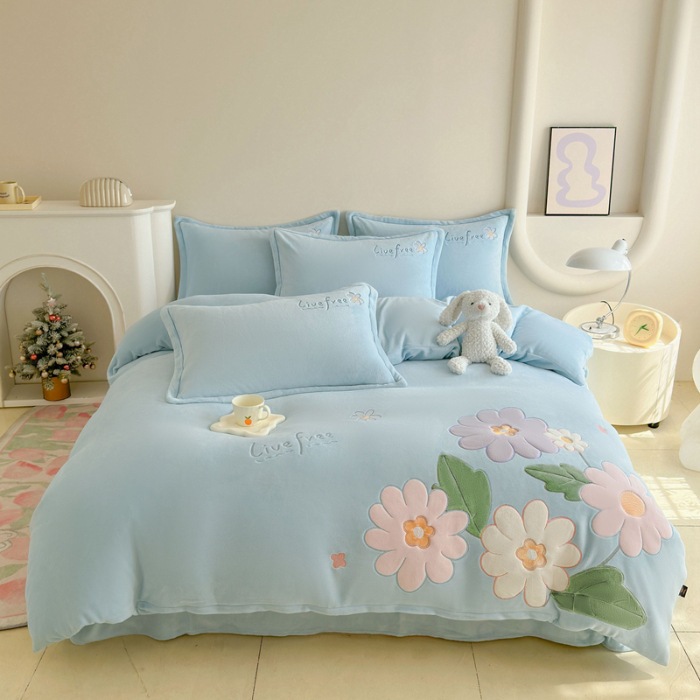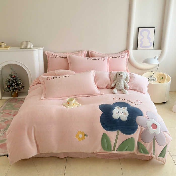2024 새로운 높은 무게 패치 수 놓은 우유 벨벳 4 피스 세트