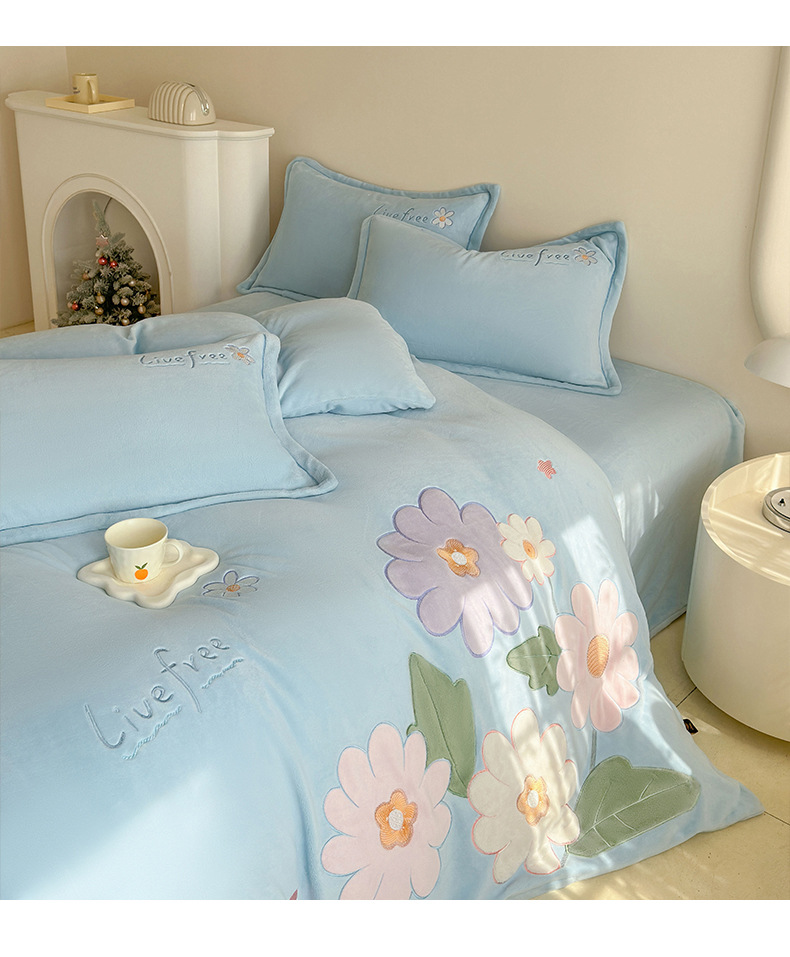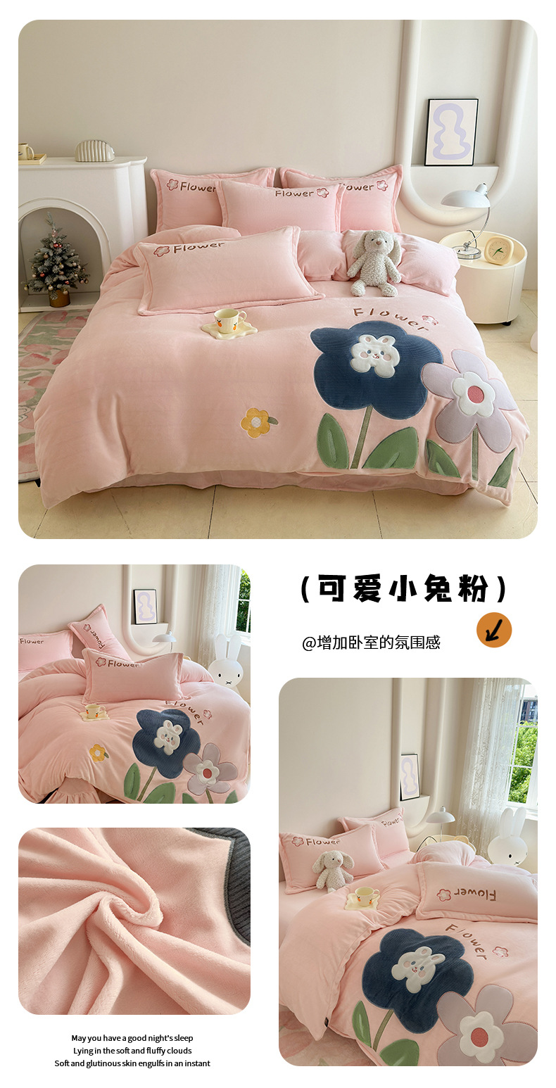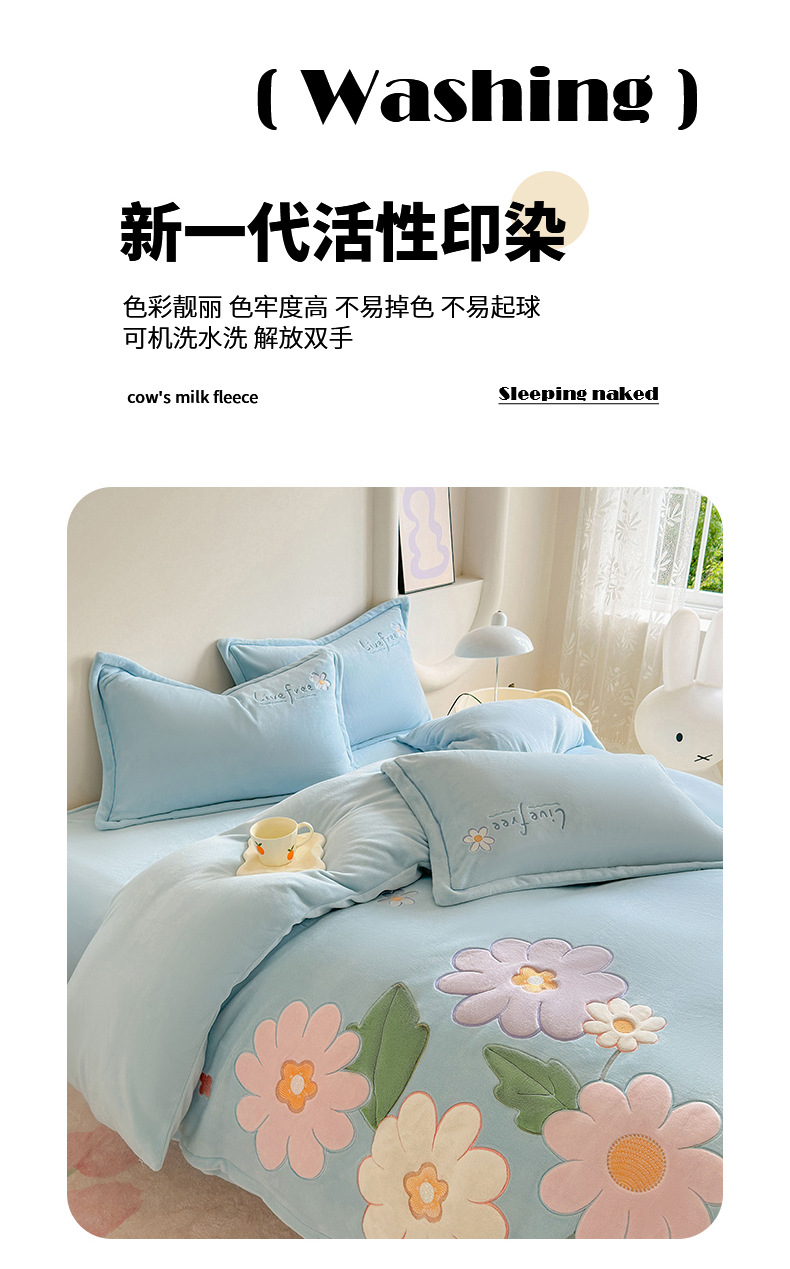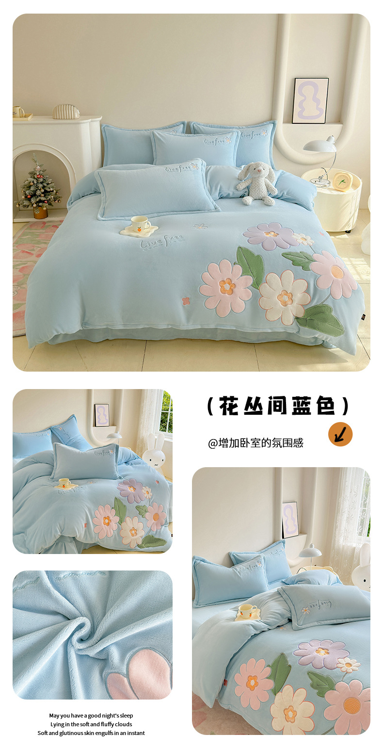 2024 새로운 높은 무게 패치 수 놓은 우유 벨벳 4 피스 세트