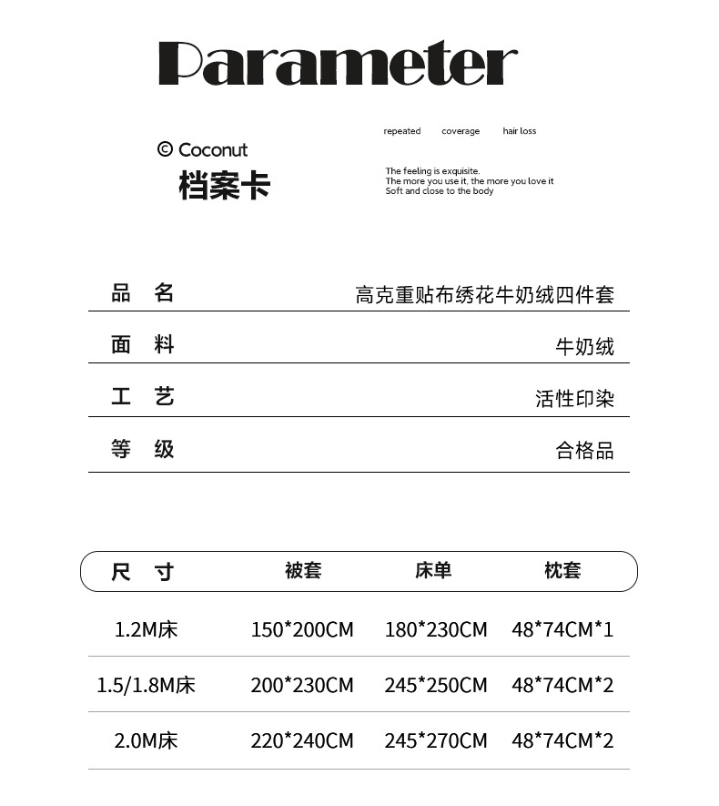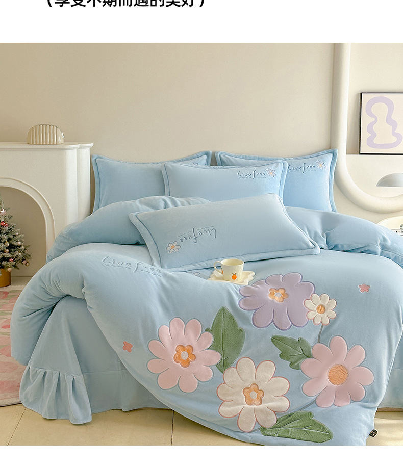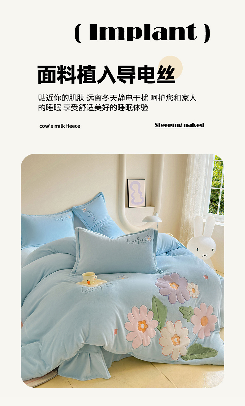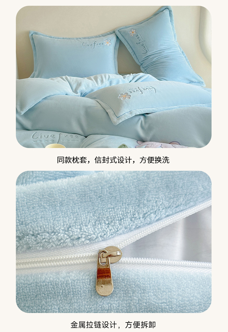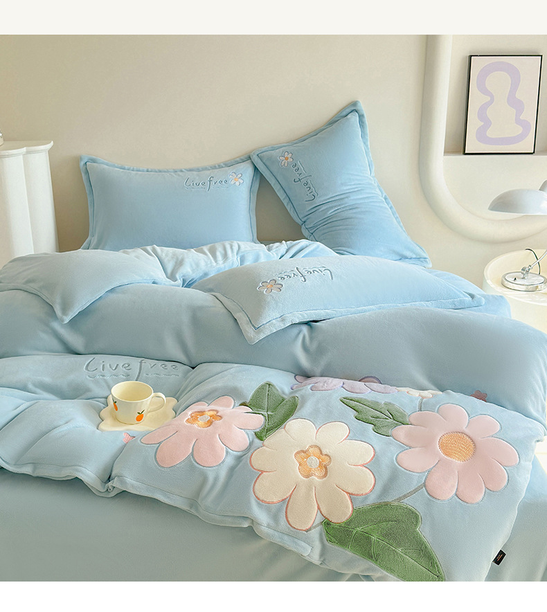 2024 새로운 높은 무게 패치 수 놓은 우유 벨벳 4 피스 세트