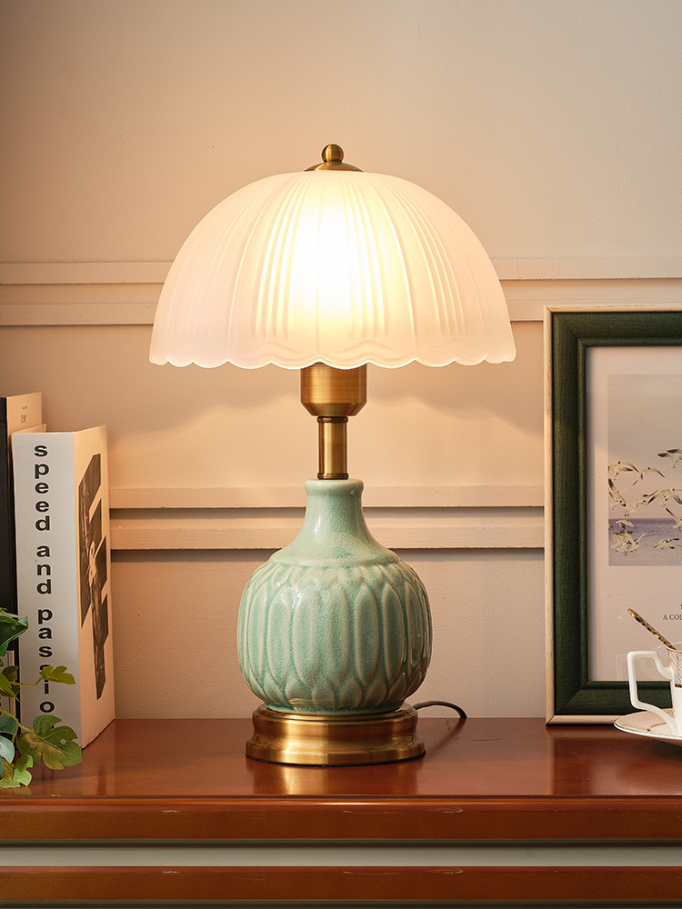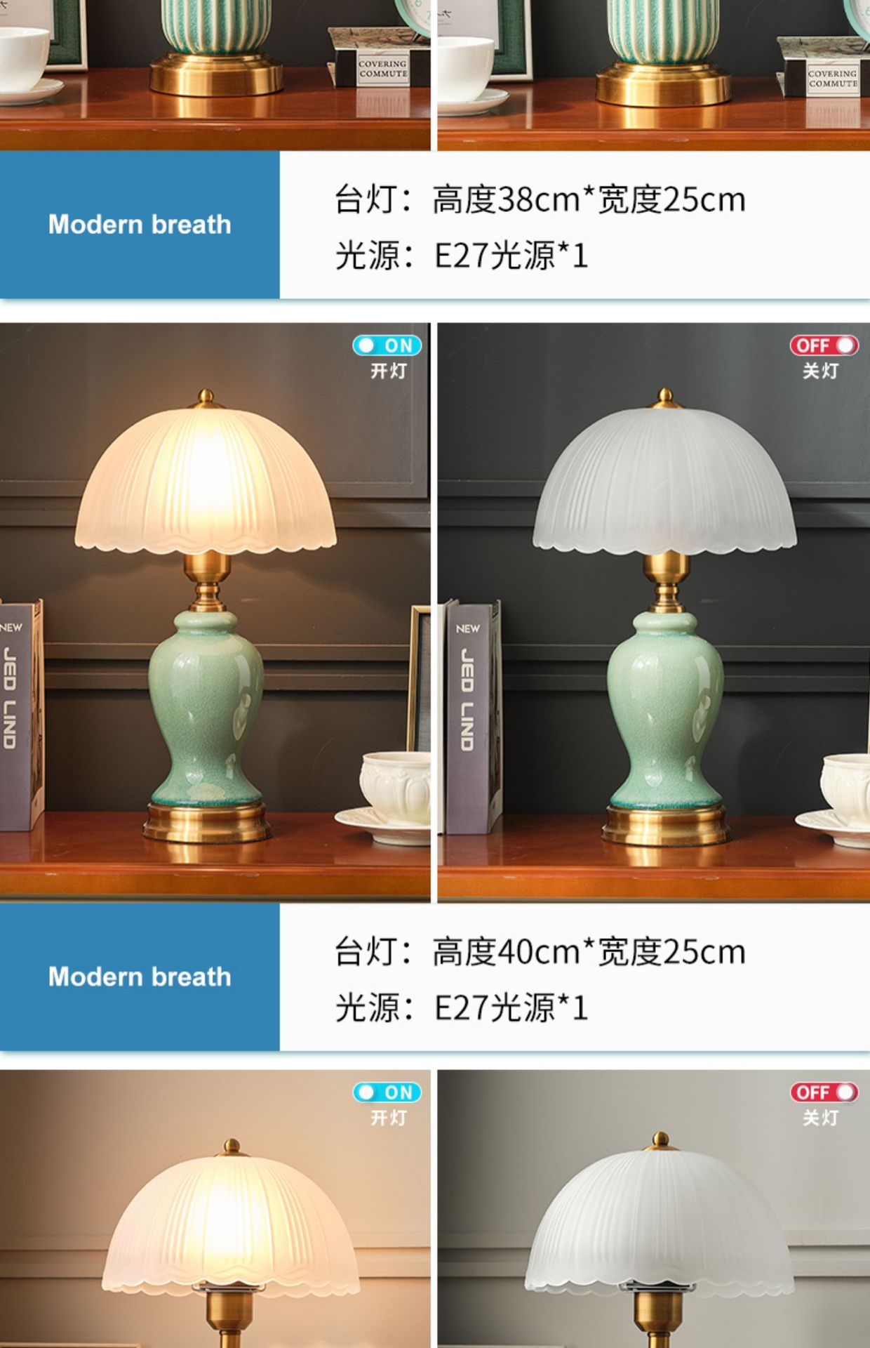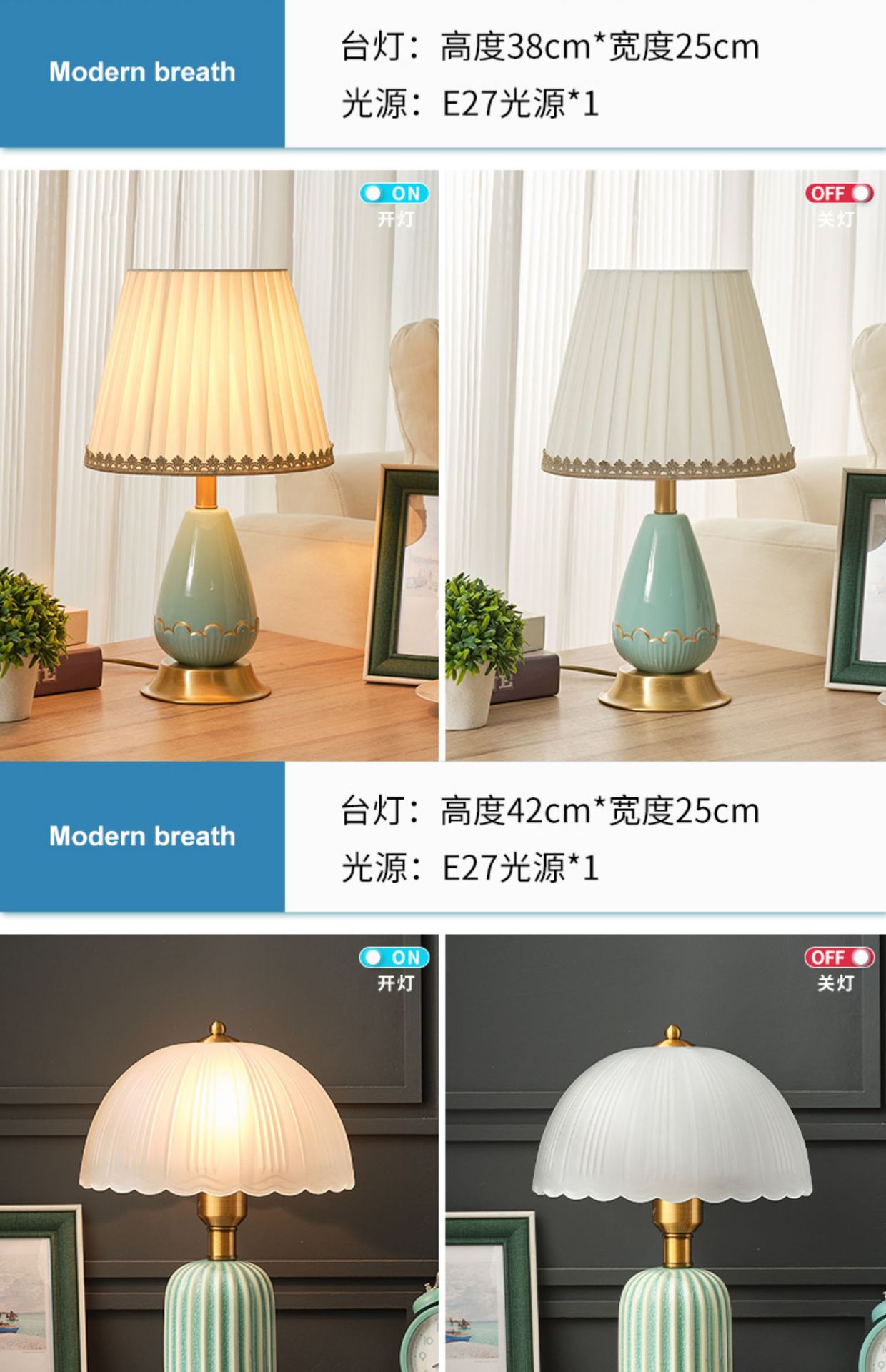 간단한 현대 세라믹 테이블 램프 침실 침실 램프 유리 램프드 TV 캐비닛 눈 보호 작은 테이블 램프 가구 장식 램프