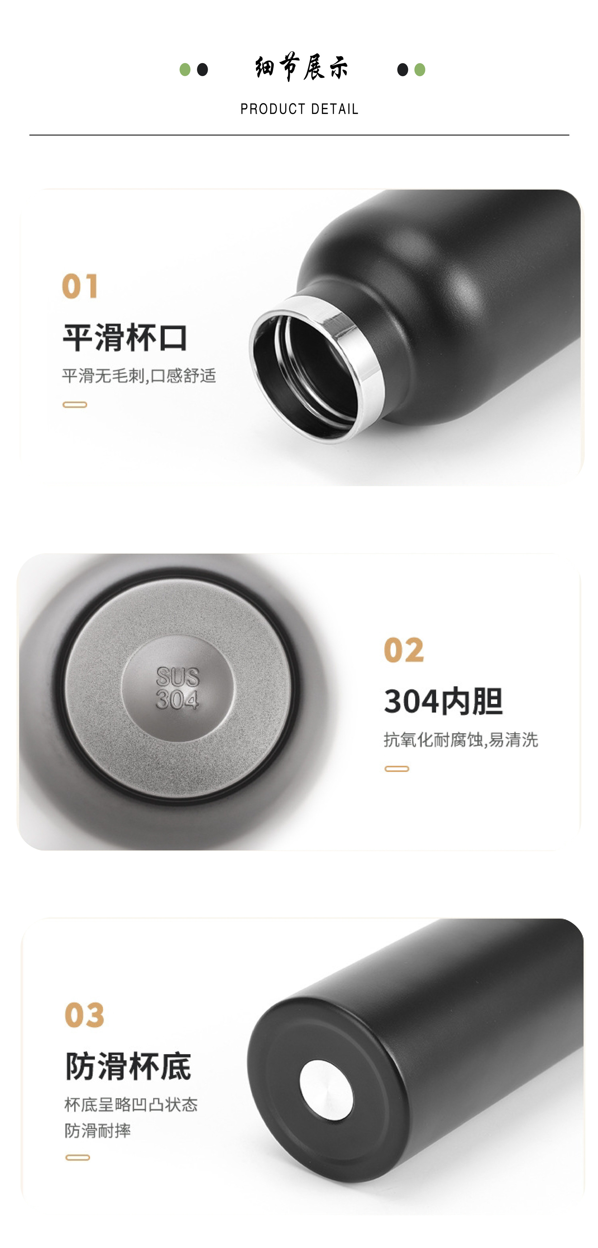 유럽과 미국의 뜨거운 공급 304 스테인레스 스틸 진공 더블 레이어 보온병 컵 플라스틱 스프레이 대나무 뚜껑 휴대용 등산 주전자