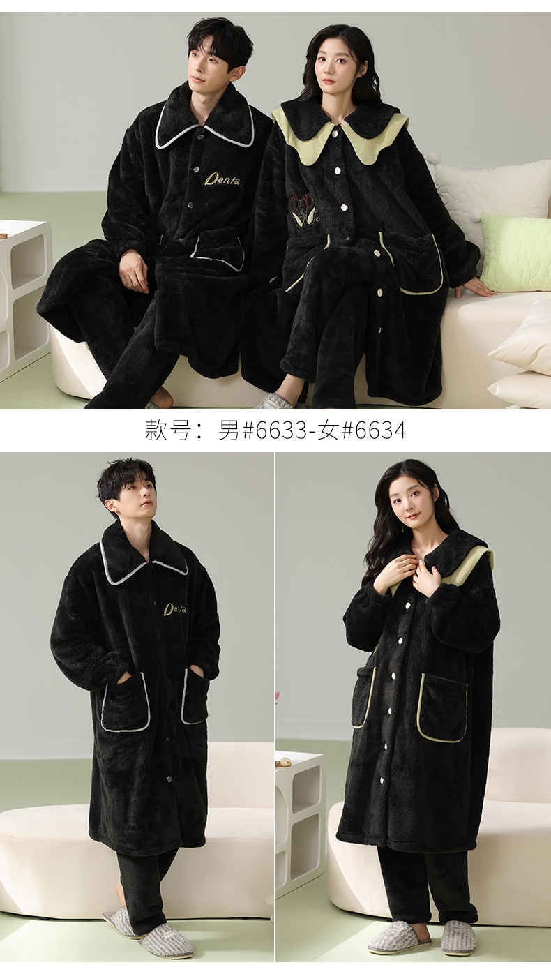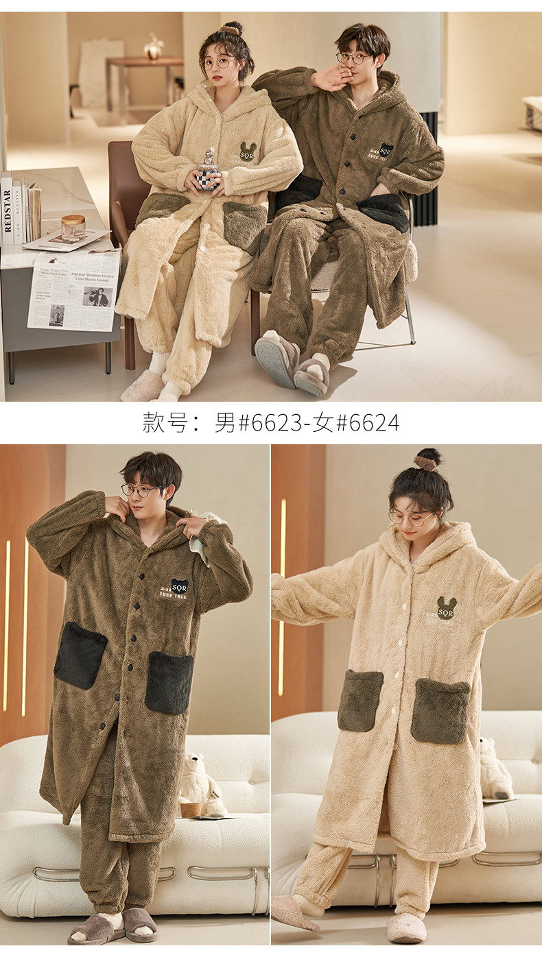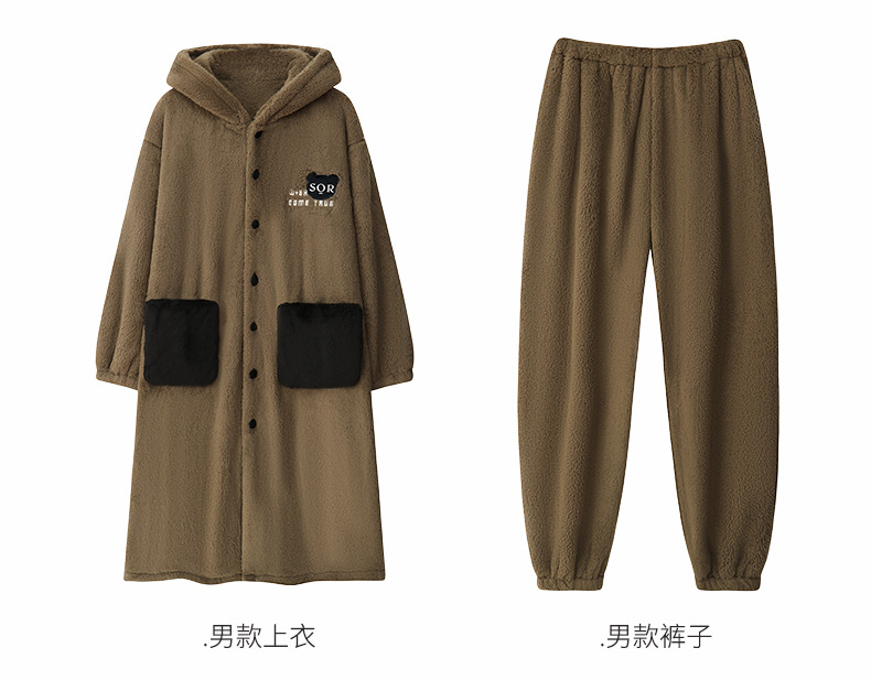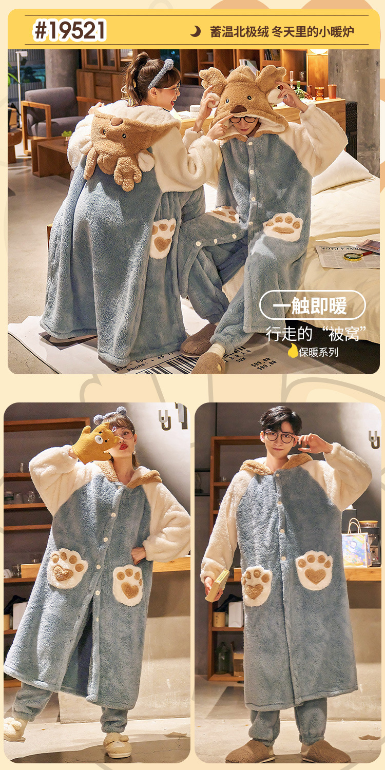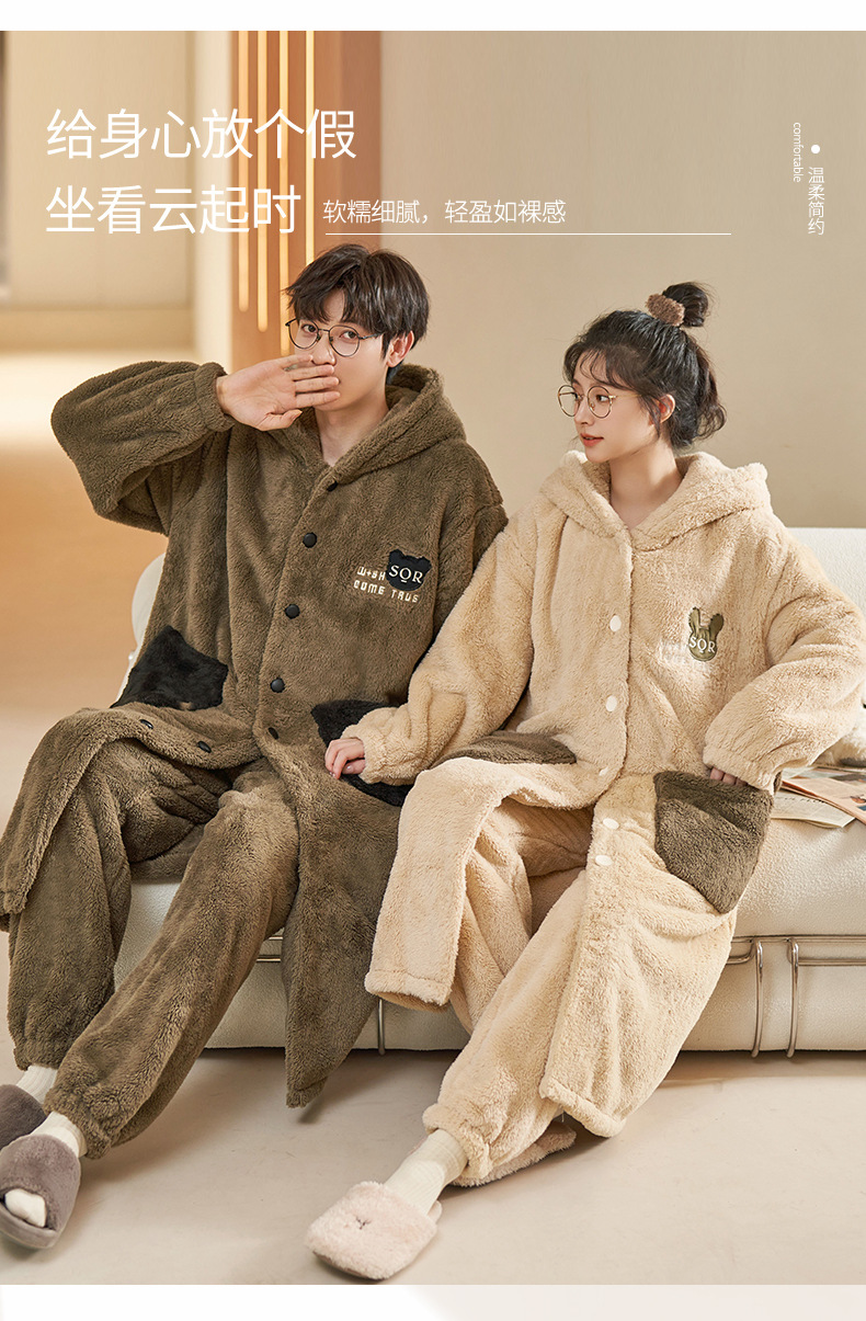 커플 잠옷 겨울용 코랄 벨벳 두꺼운 가을 겨울 남녀용 플러스 벨벳 세트 대학 스타일 겨울 잠옷스토어 가기