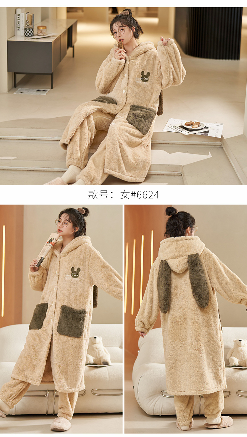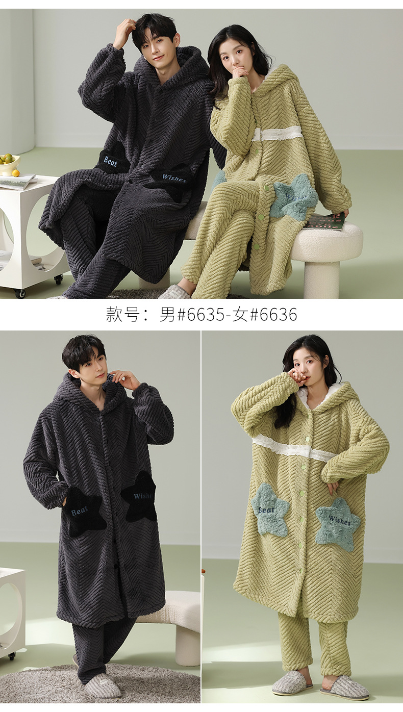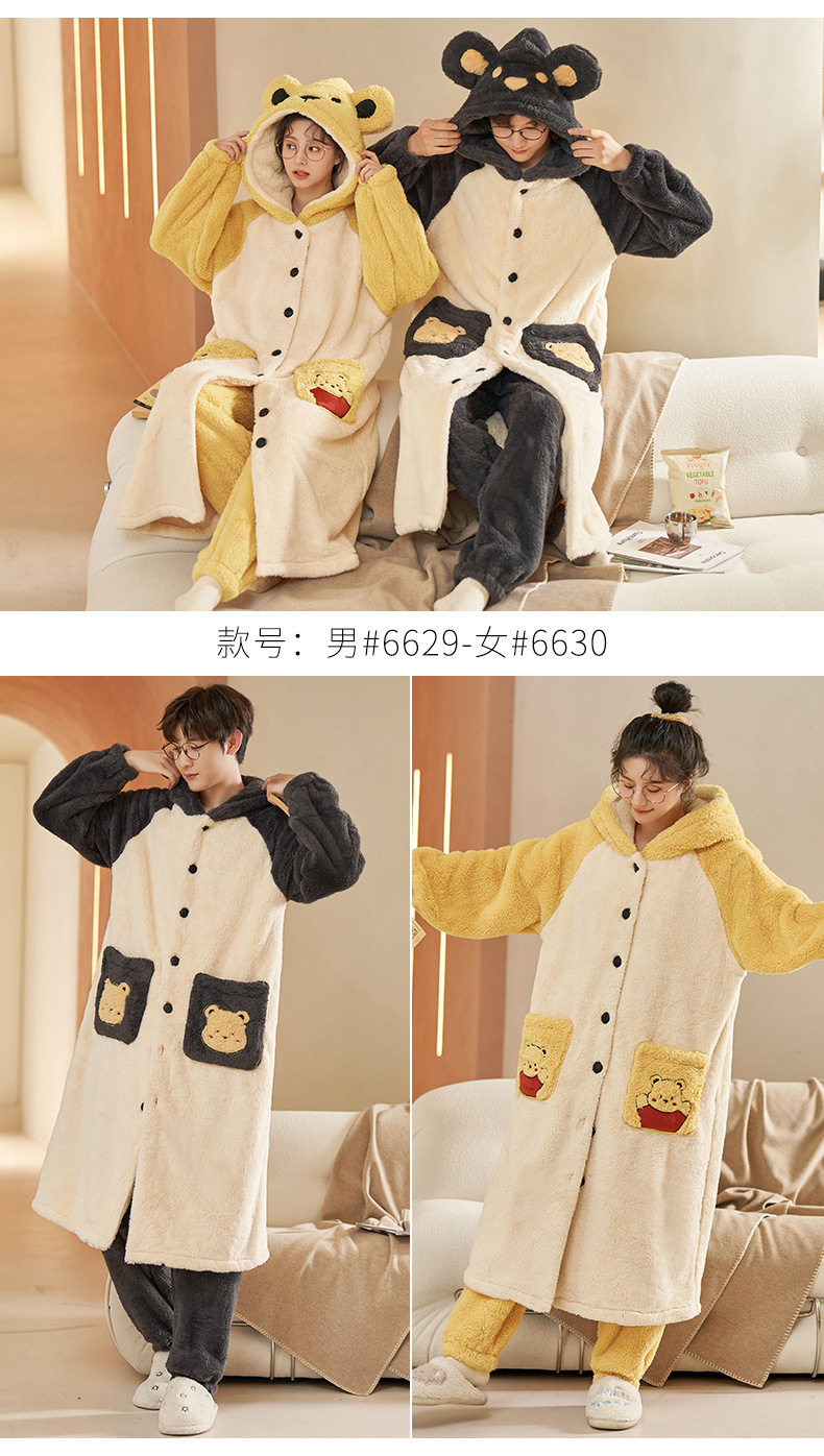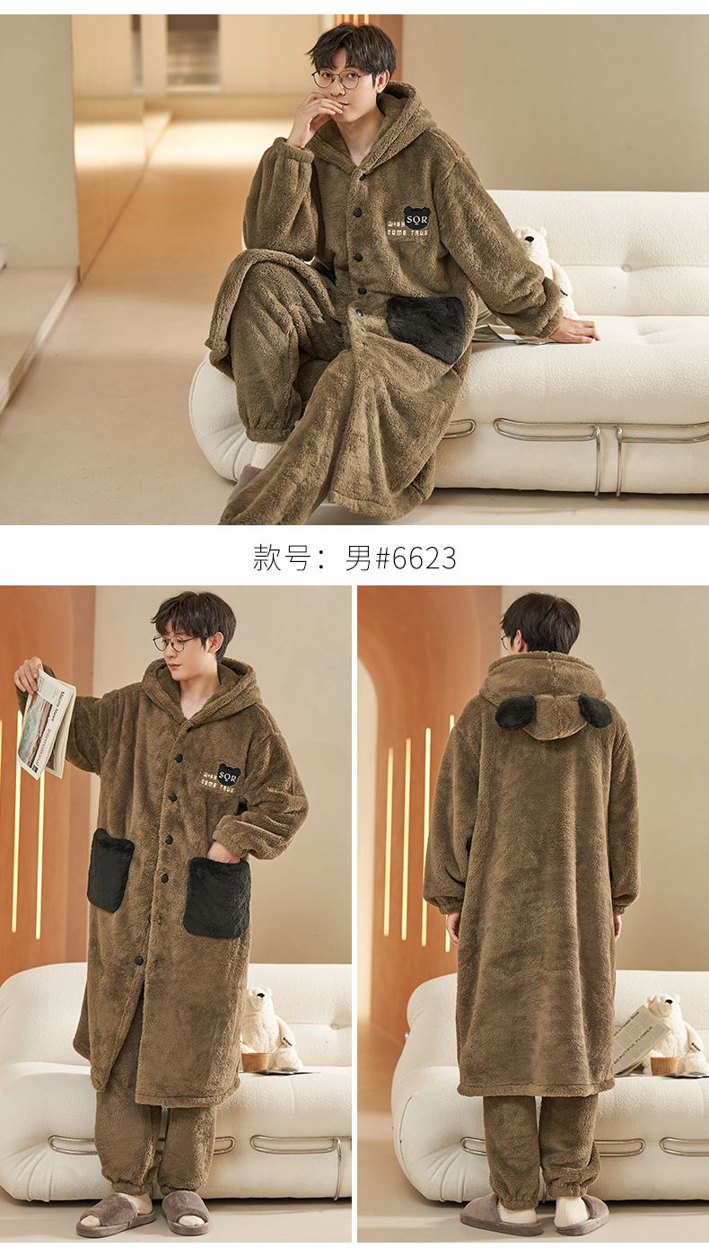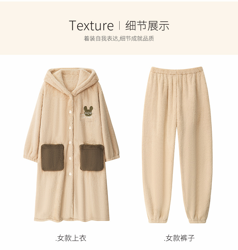 커플 잠옷 겨울용 코랄 벨벳 두꺼운 가을 겨울 남녀용 플러스 벨벳 세트 대학 스타일 겨울 잠옷스토어 가기