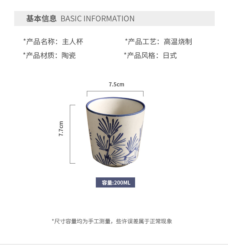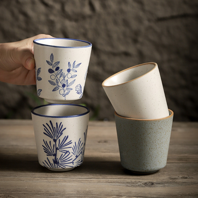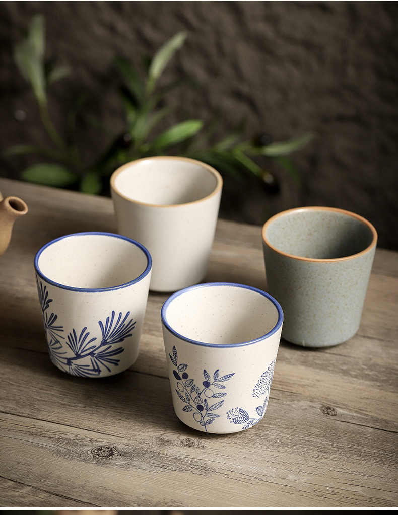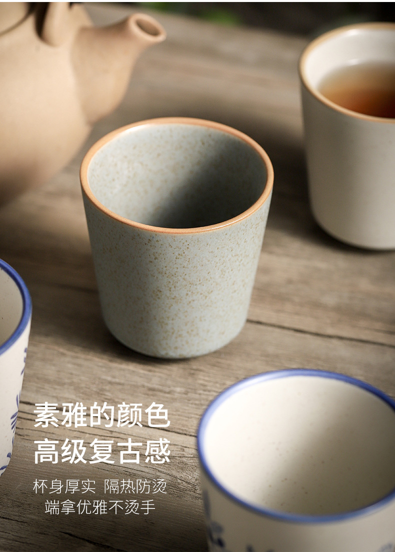 마스터 컵 일본 스타일 빈티지 퍼니스 끓는 티 컵 조잡한 도자기 언더 유약 컬러 마시는 물 컵 쿵푸 개별 싱글 컵 차 시음 컵