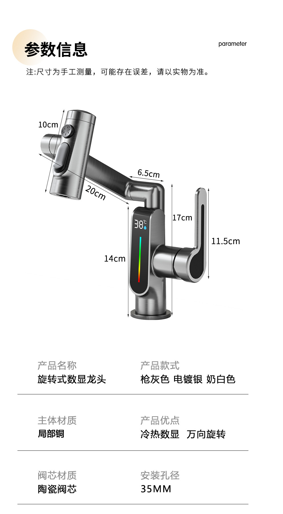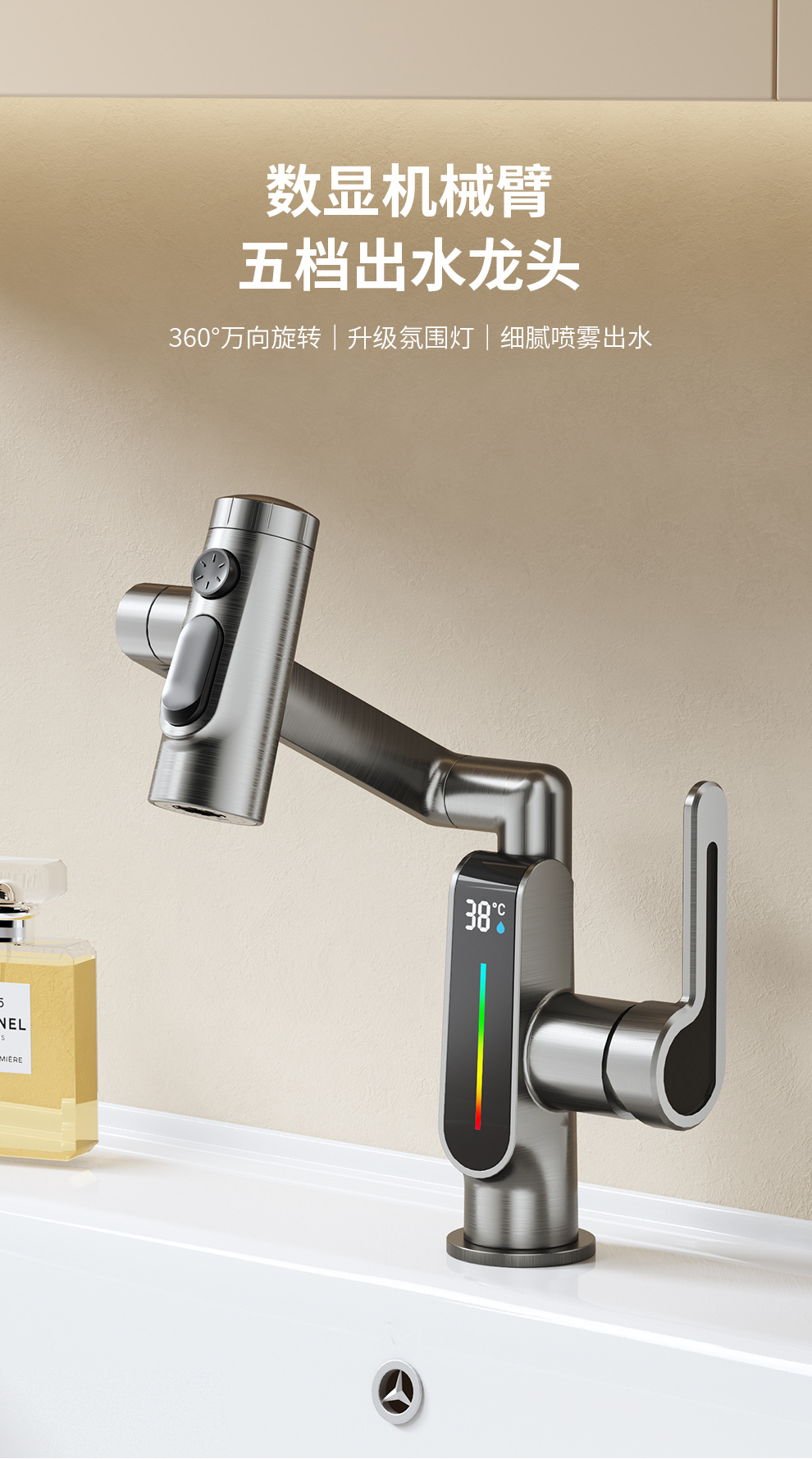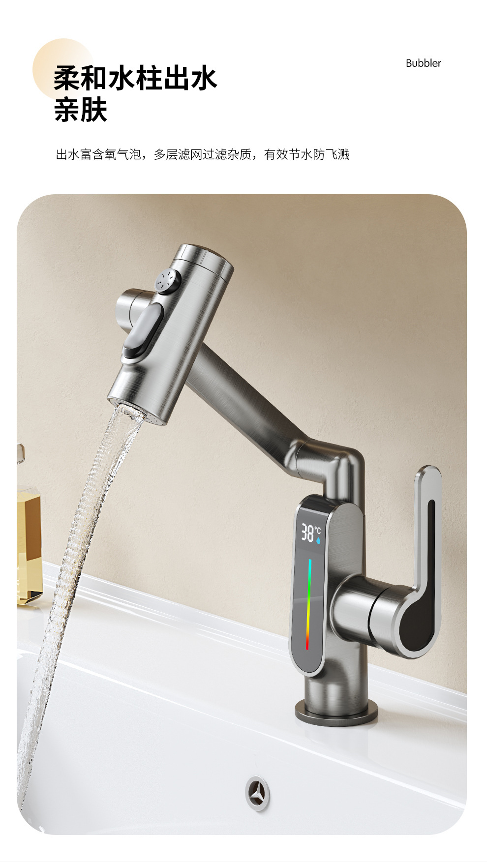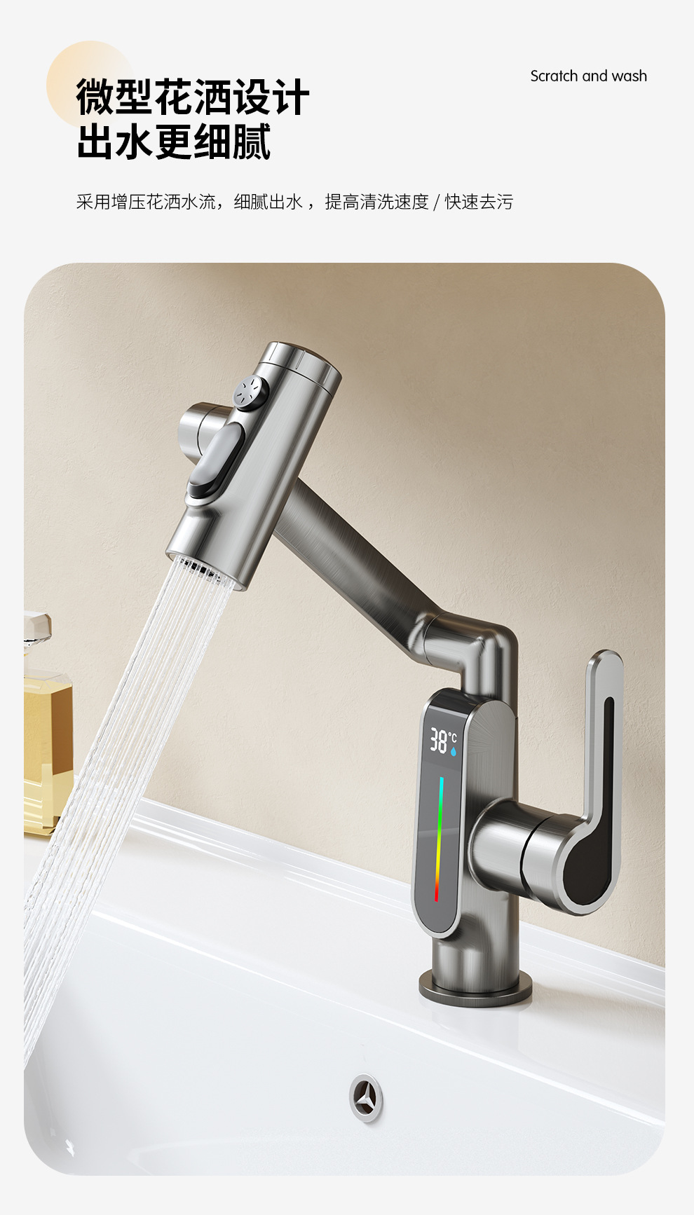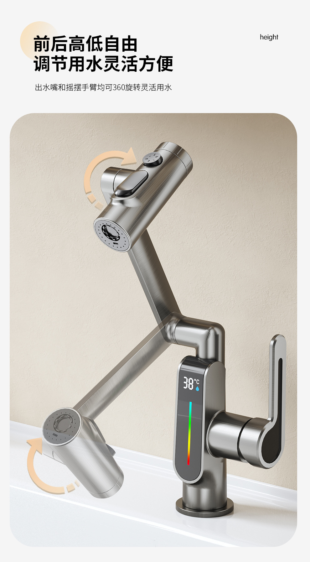 가정용 대기 램프 범용 디지털 디스플레이 온도 차갑고 뜨거운 세척 분지 세척 분지 수도꼭지 디지털 디스플레이 접이식