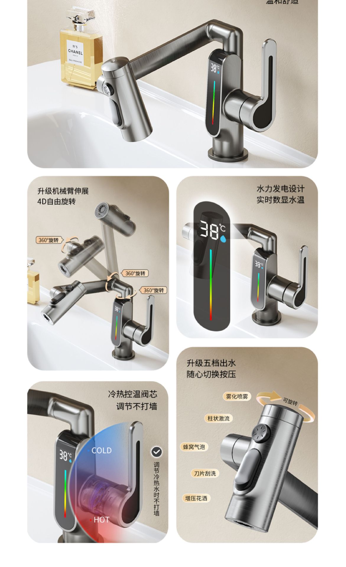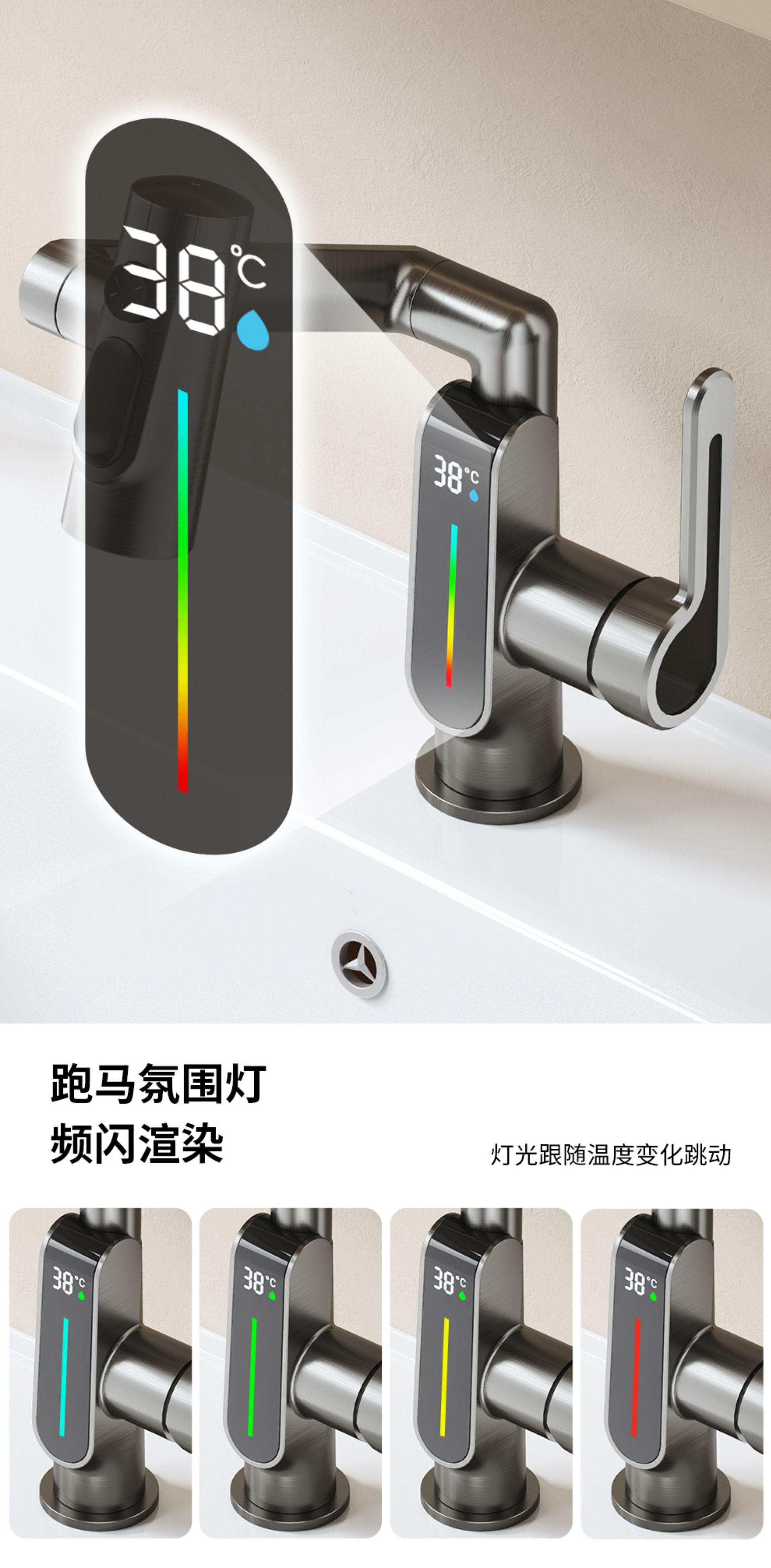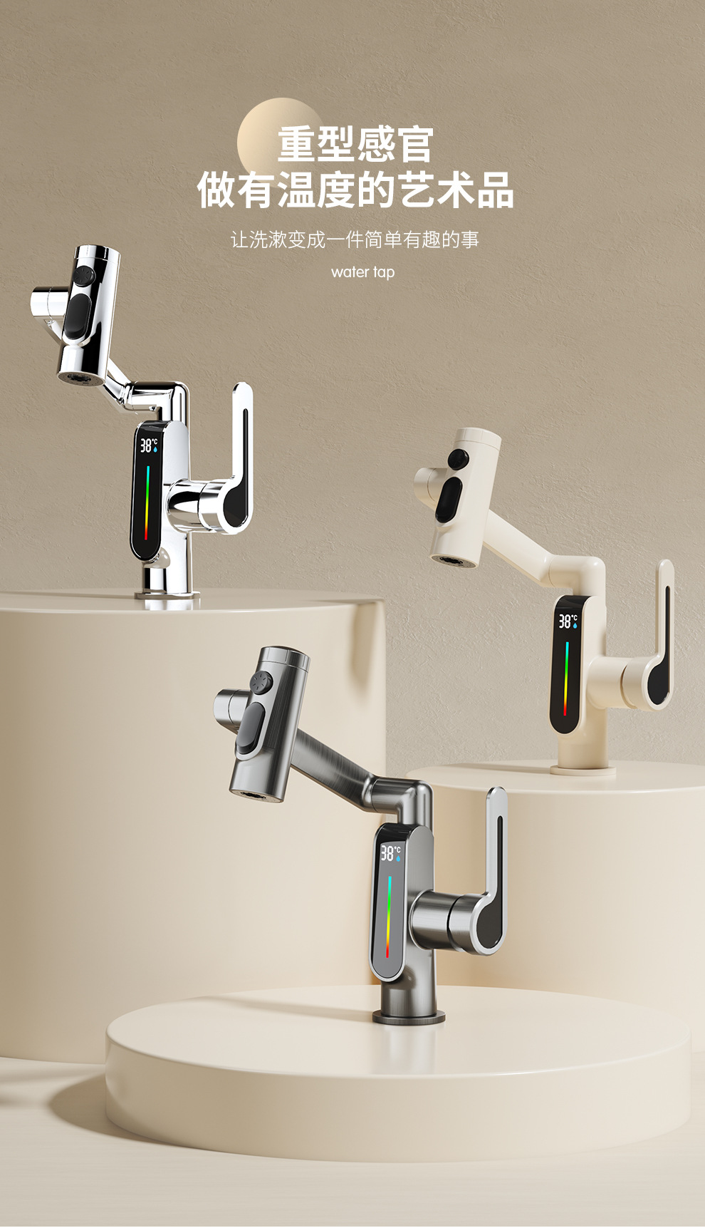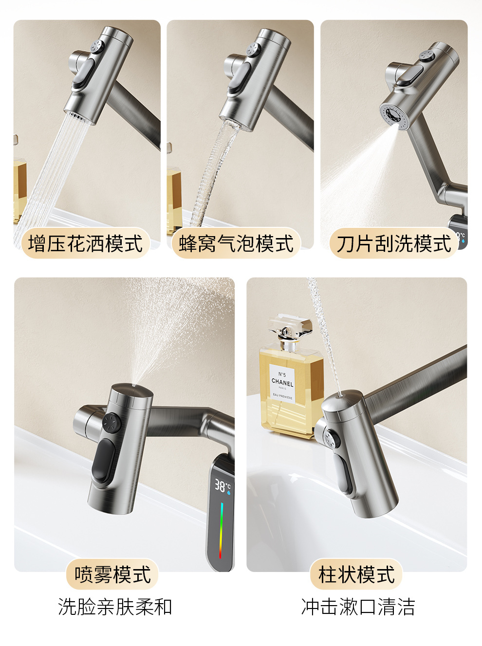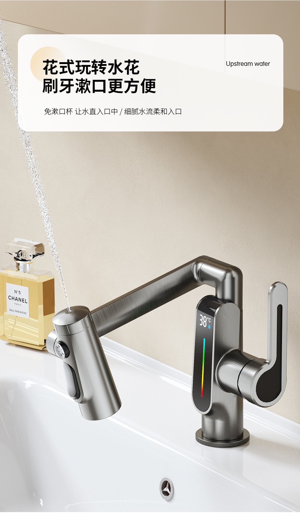가정용 대기 램프 범용 디지털 디스플레이 온도 차갑고 뜨거운 세척 분지 세척 분지 수도꼭지 디지털 디스플레이 접이식