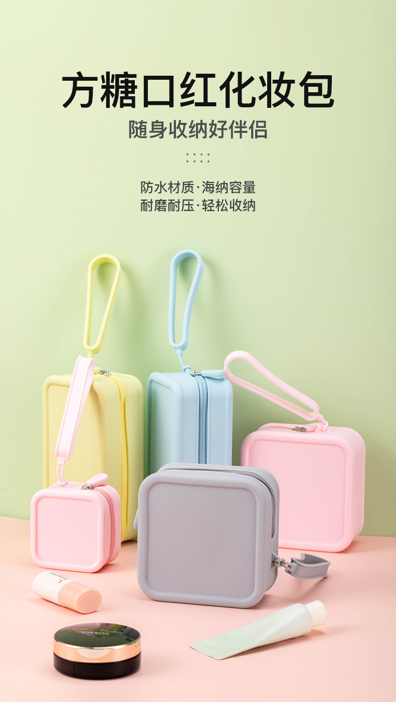공장 재고 실리콘 스퀘어 휴대용 동전 지갑 휴대용 미니 저장 가방 다기능 실리콘 휴대용 화장품 가방스토어 가기